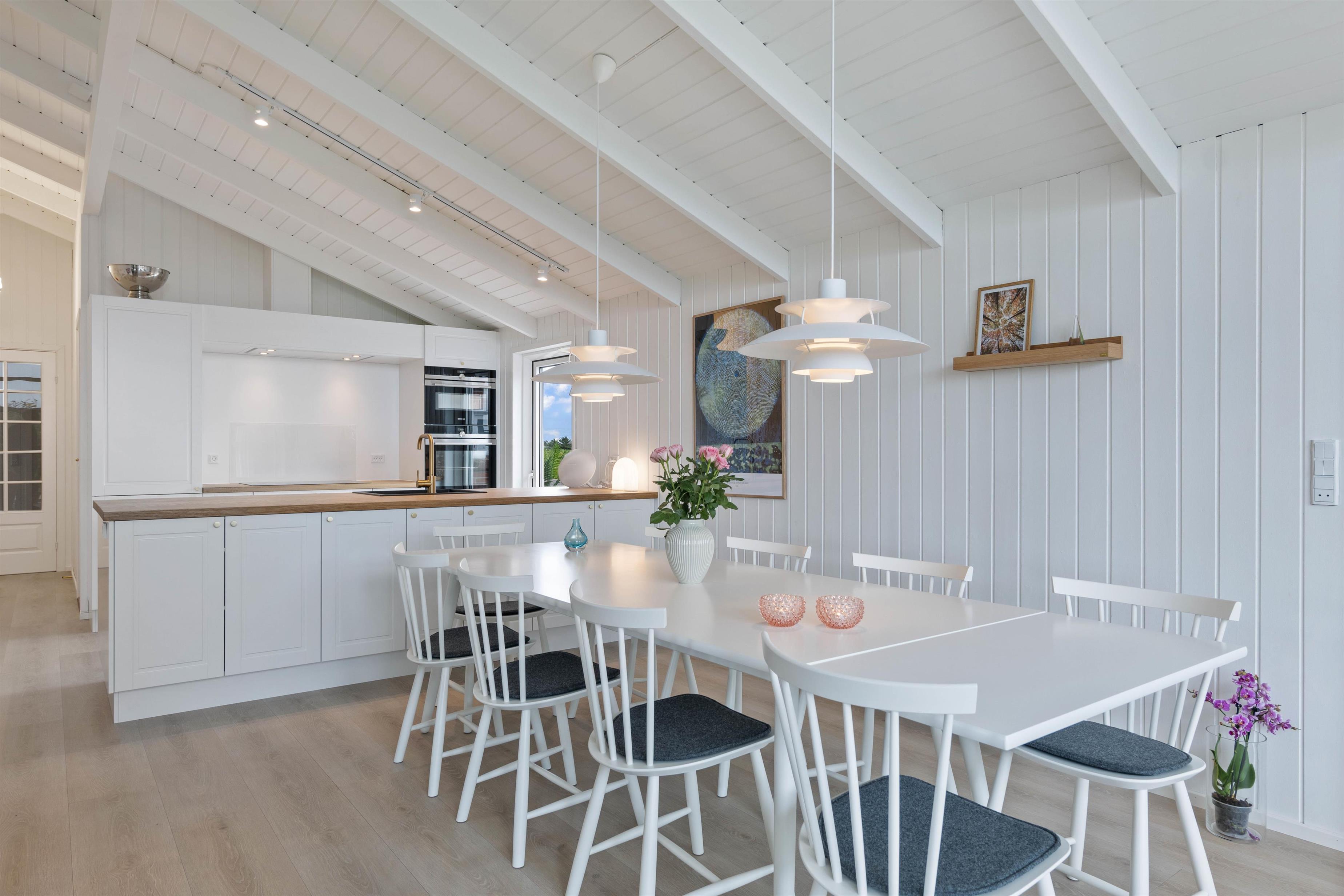 På Fladsbjergvej 184 vil I blive mødt af en skøn indretning, hvor der er tænkt over hvilke faciliteter der er vigtige på en ferie. Køkkenalrummet vil naturligt blive midtpunktet i dette sommerhus, eftersom der er mulighed for at bruge massere tid sammen. Hvad end det er med madlavning, spille Playstation 5 eller se film med brændeovnens knitren i baggrunden.