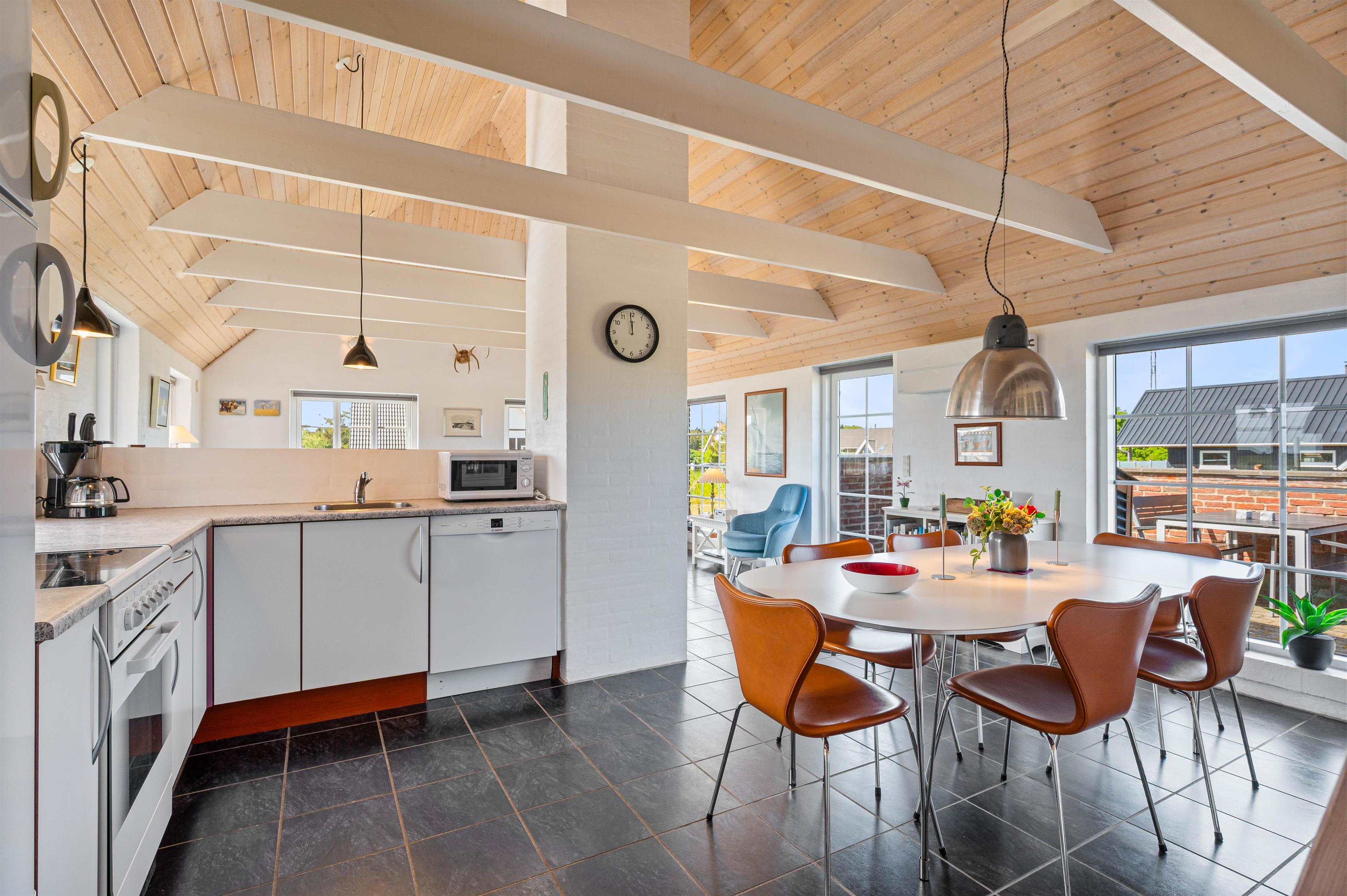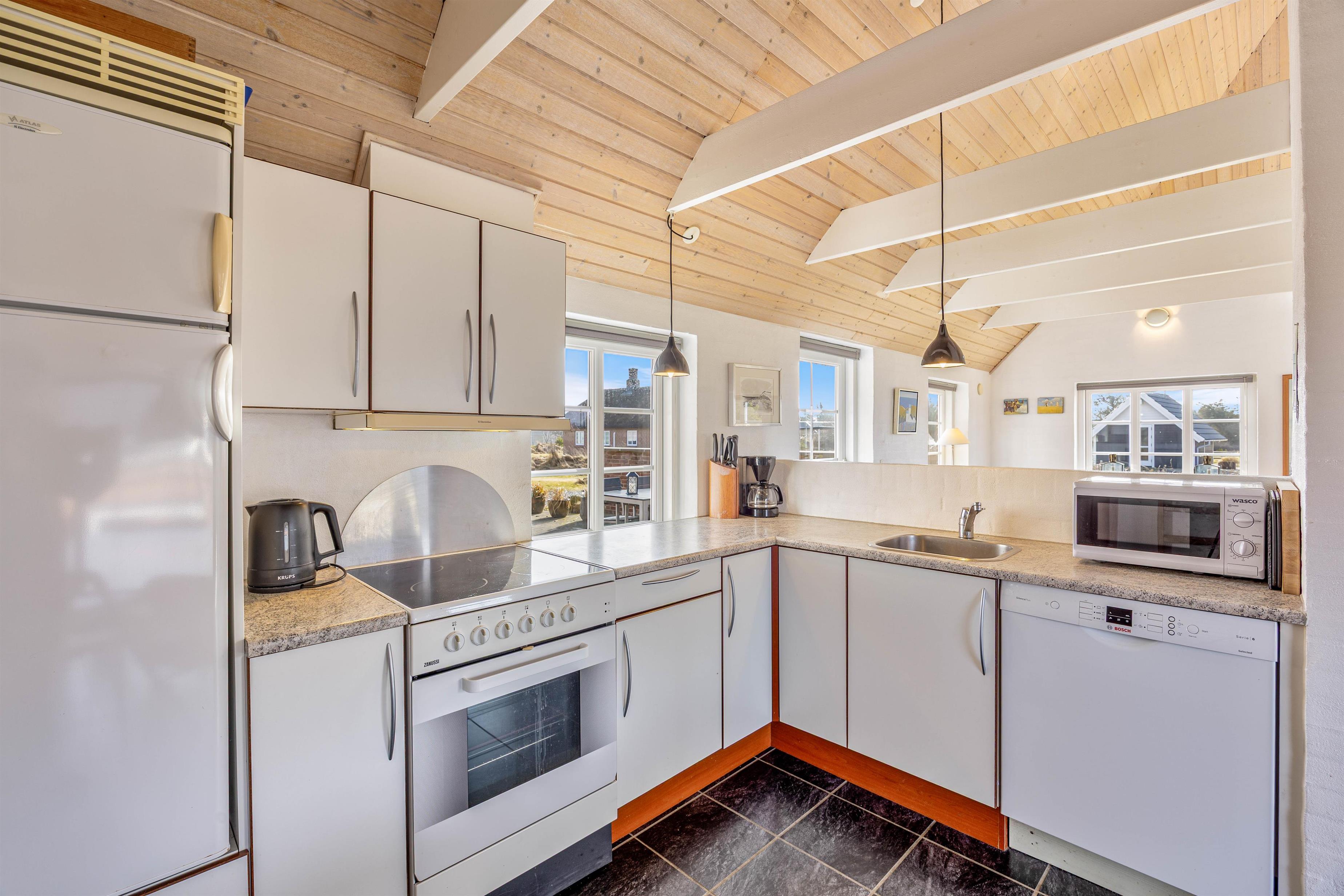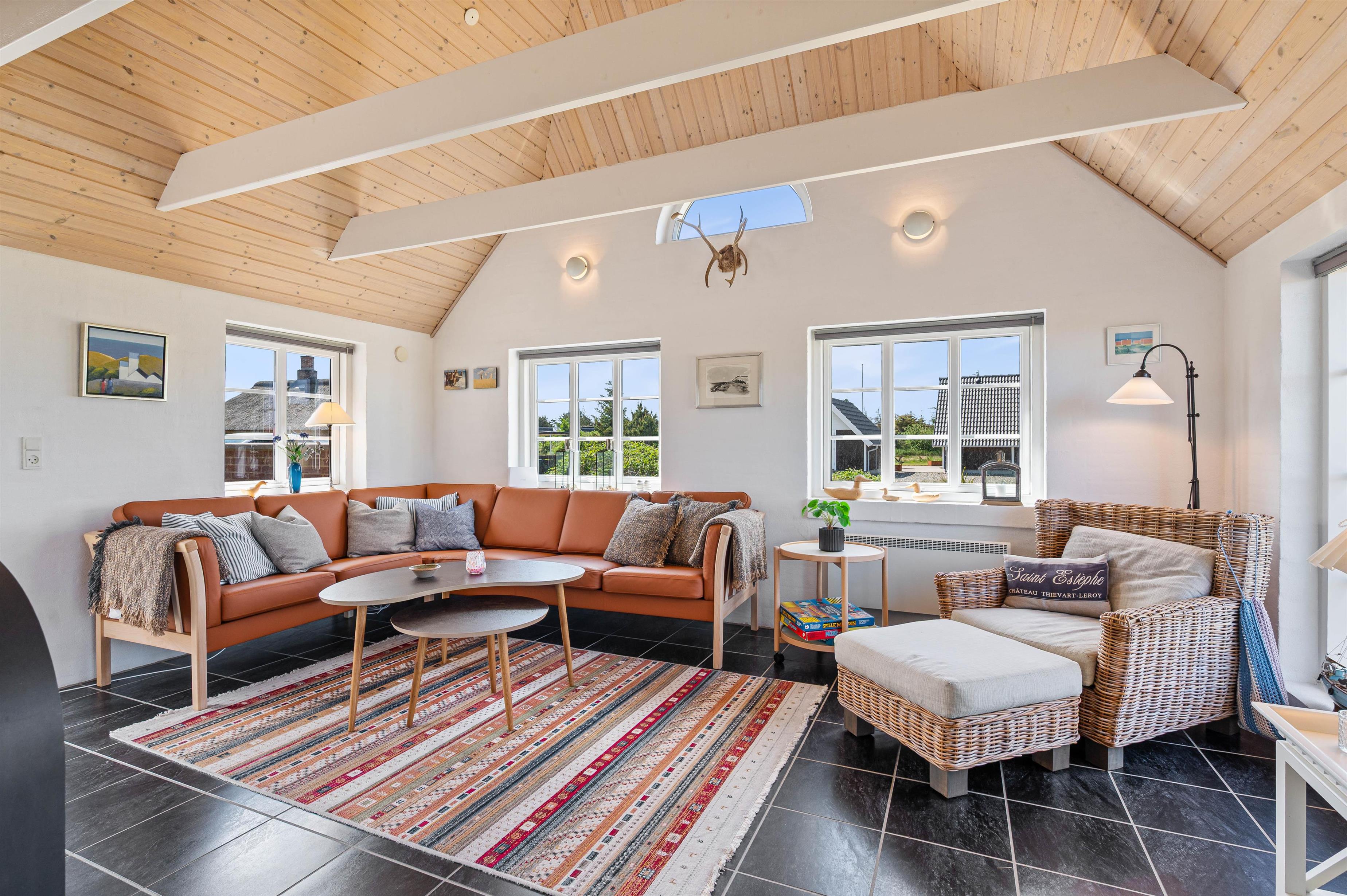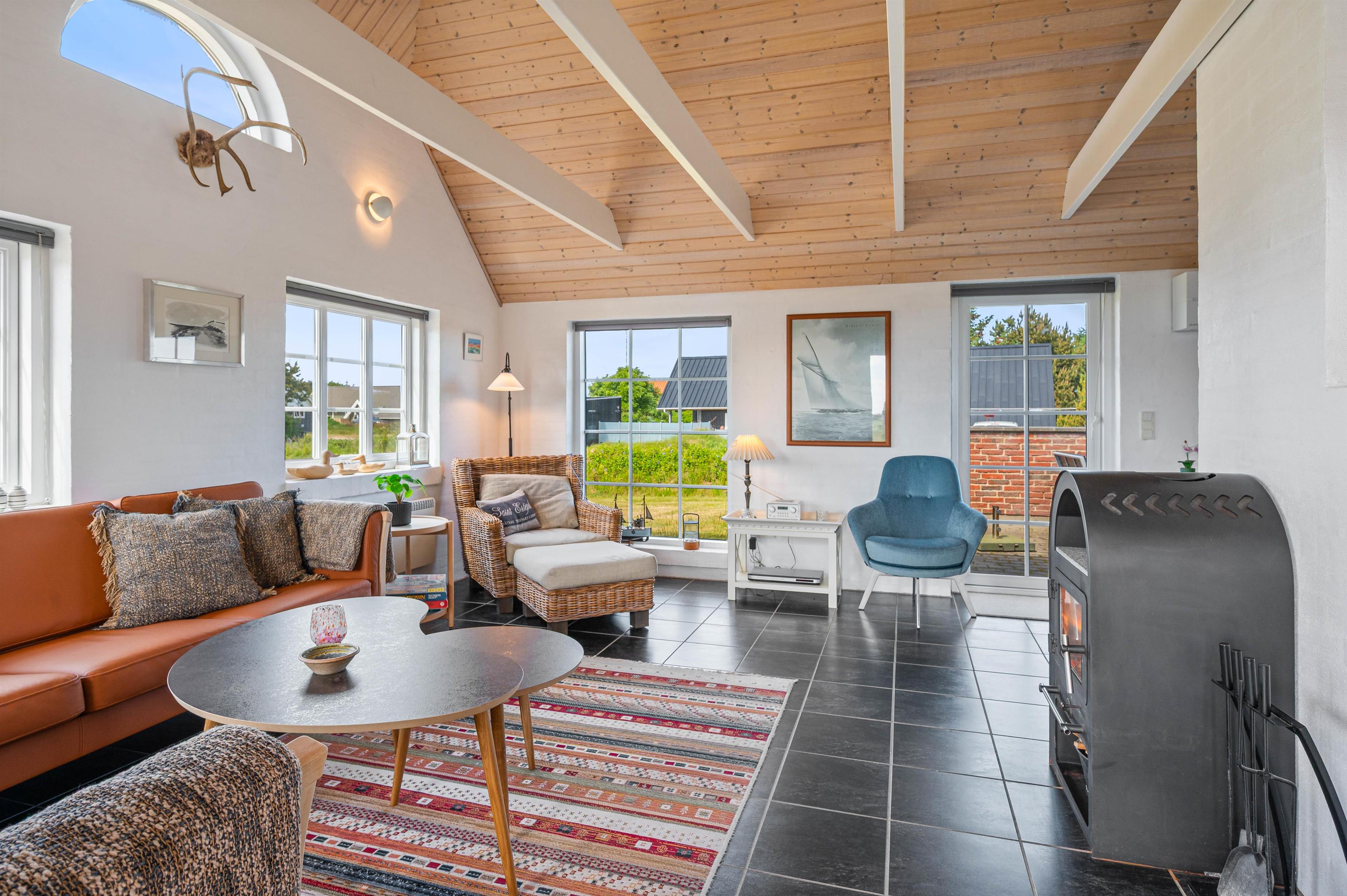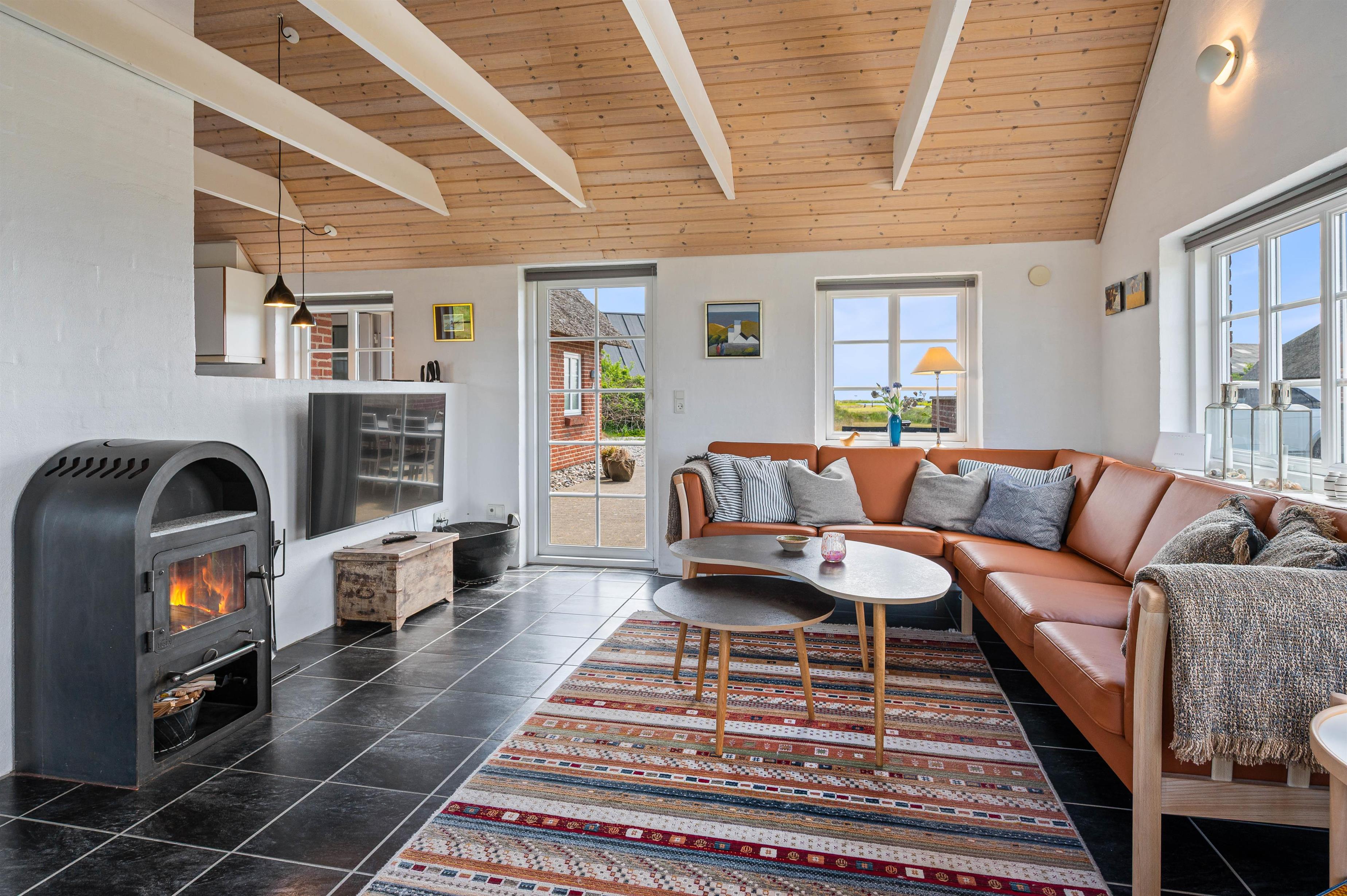 Sommerhusets hjerte er det åbne opholdsrum, der med garanti kommer til at danne rammen om masser af skønne ferieminder. Her kan I samle hele ferieflokken til fælles madlavning, underholdende spilaftener og stille stunder foran den knitrende brændeovn, mens mørket falder på udenfor.