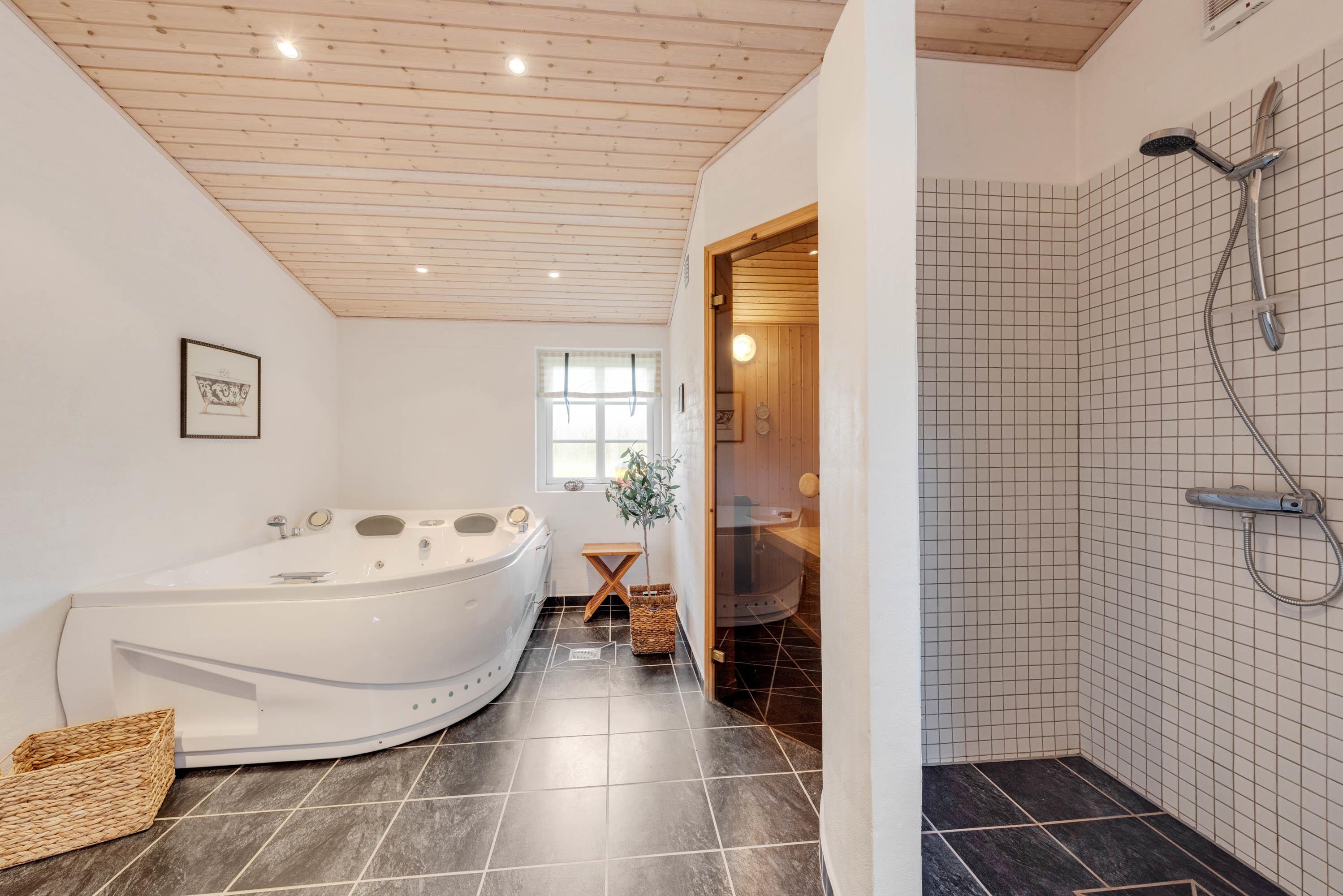 I kommer til at bo kun 15 minutters gang fra Vesterhavet. Den endeløse, brede sandstrand indbyder altid til forfriskende gåture i den salte havluft med bølgebrus i baggrunden – det er ren wellness. Efter en god spadseretur langs vandet, kan I tage hjem og få varmen i feriehusets sauna eller spa.