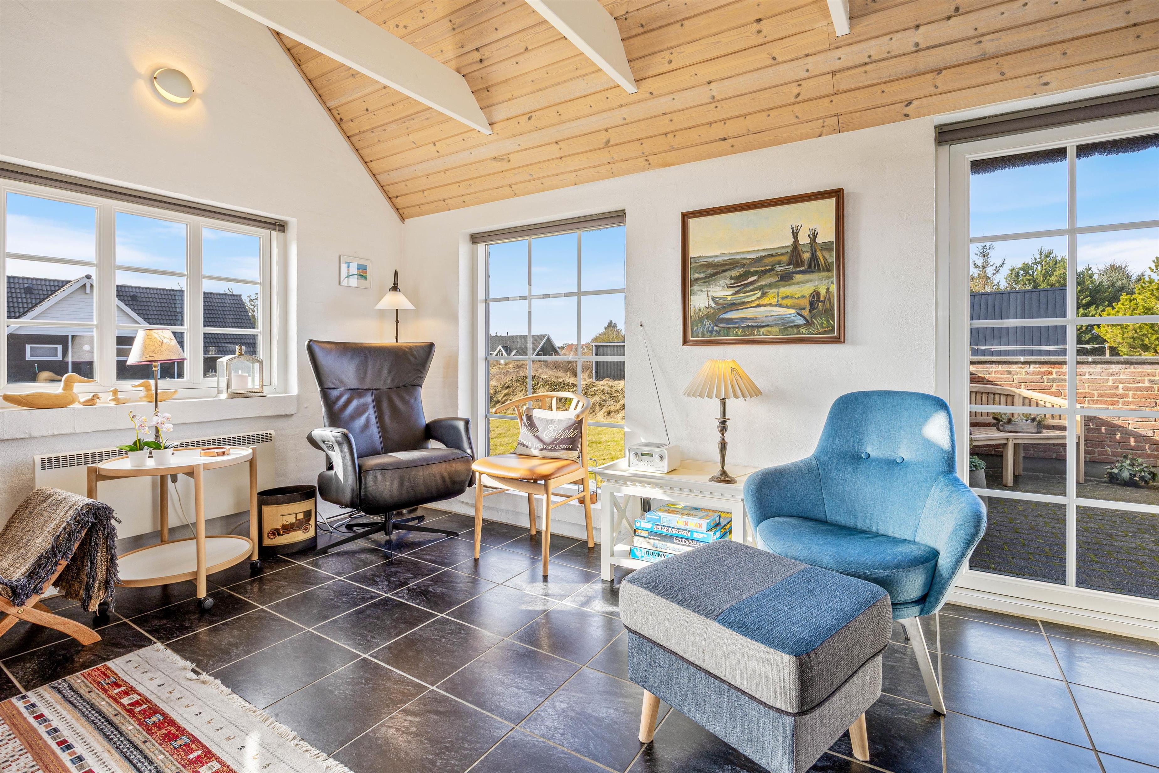 Fra stuen har I udsigt hele vejen til Ringkøbing Fjord, og om morgenen kan I overvære de smukke solopgange, når himlen forvandles til ét stort farvespil af lyserøde nuancer. Der er både en terrasse mod nordvest og sydøst, så I dagen lang kan følge solen rundt og slappe af i de komfortable havemøbler og liggestole. De lune aftener kalder bestemt på en grillmiddag under åben himmel!