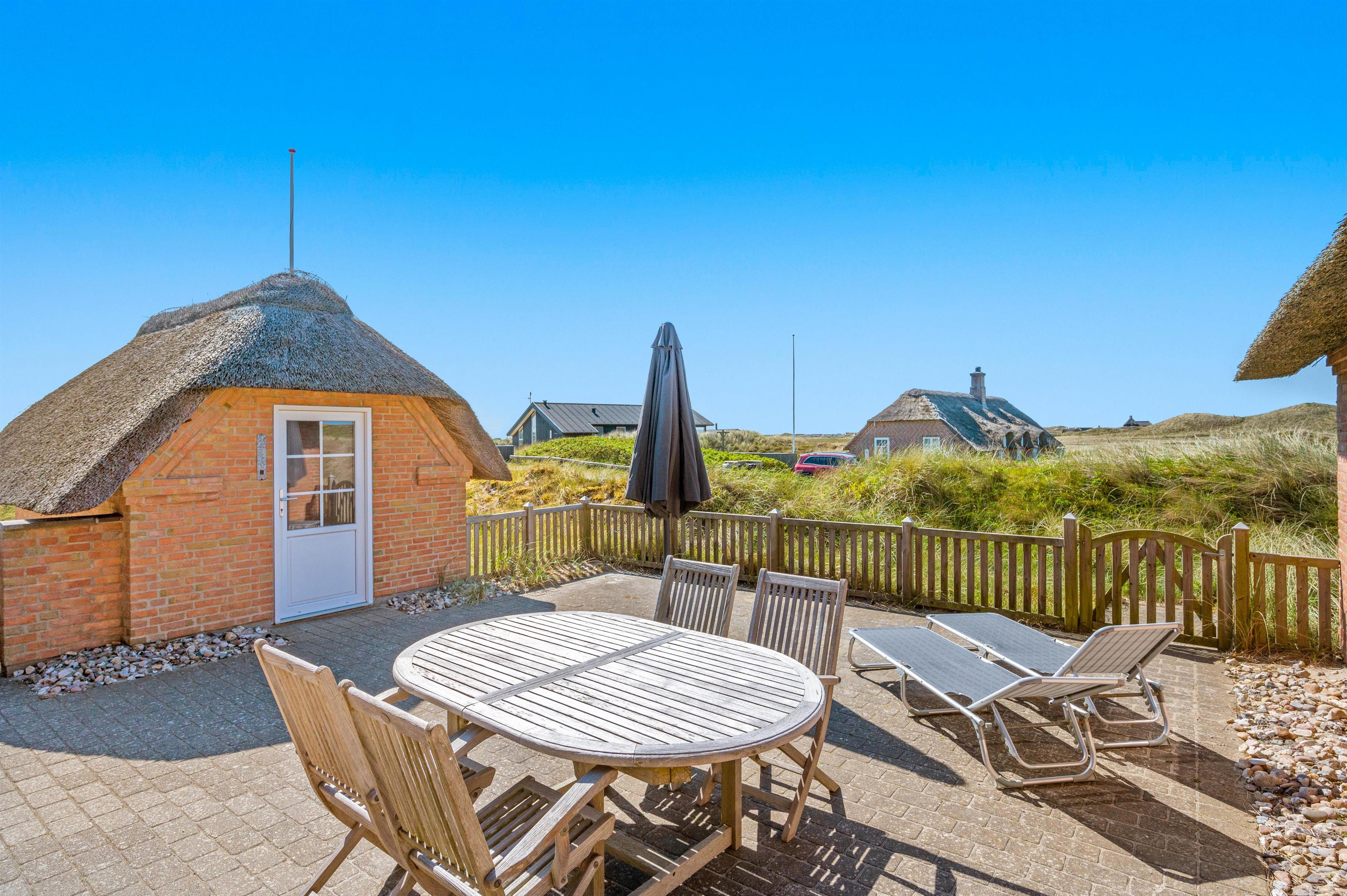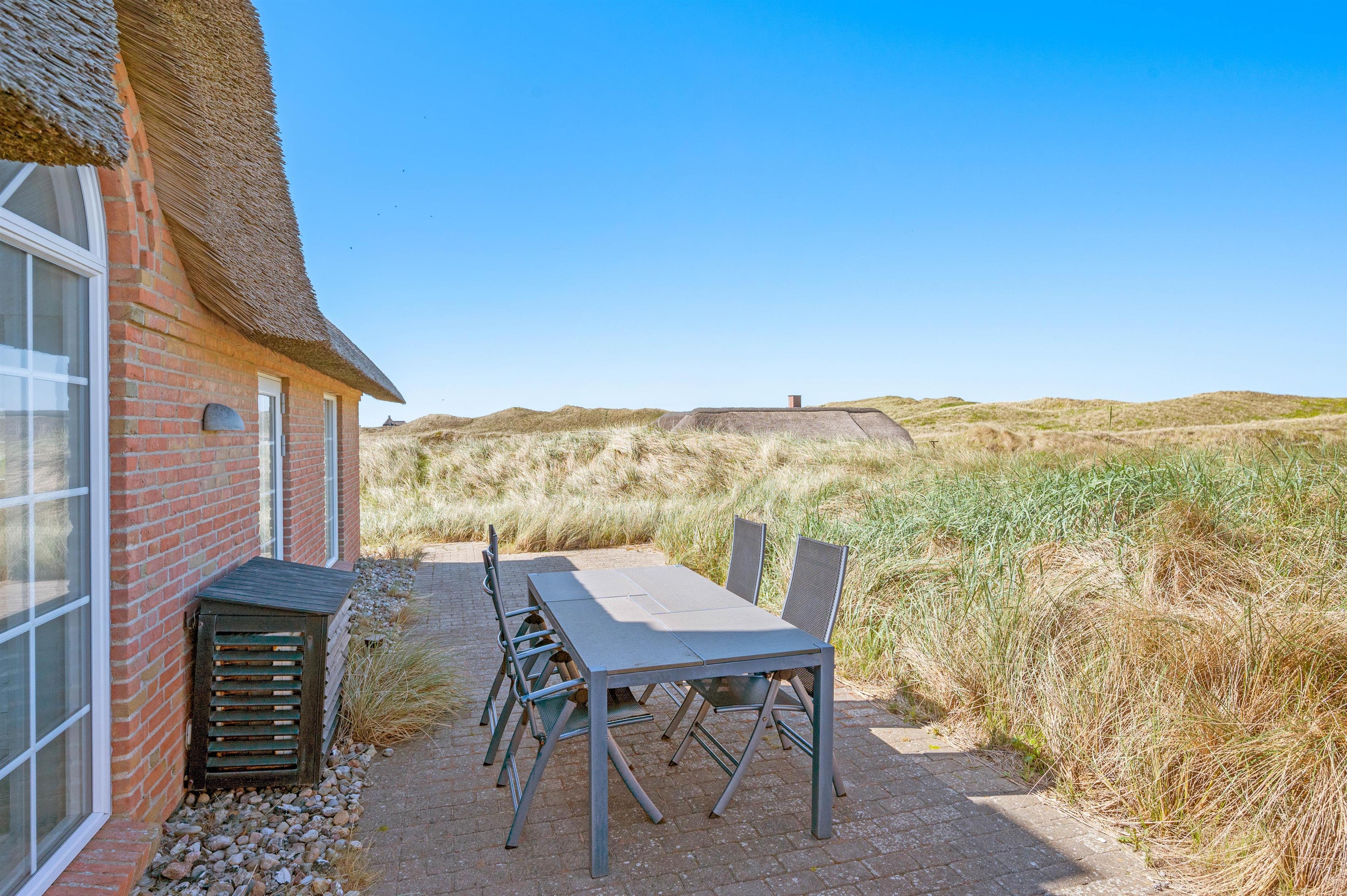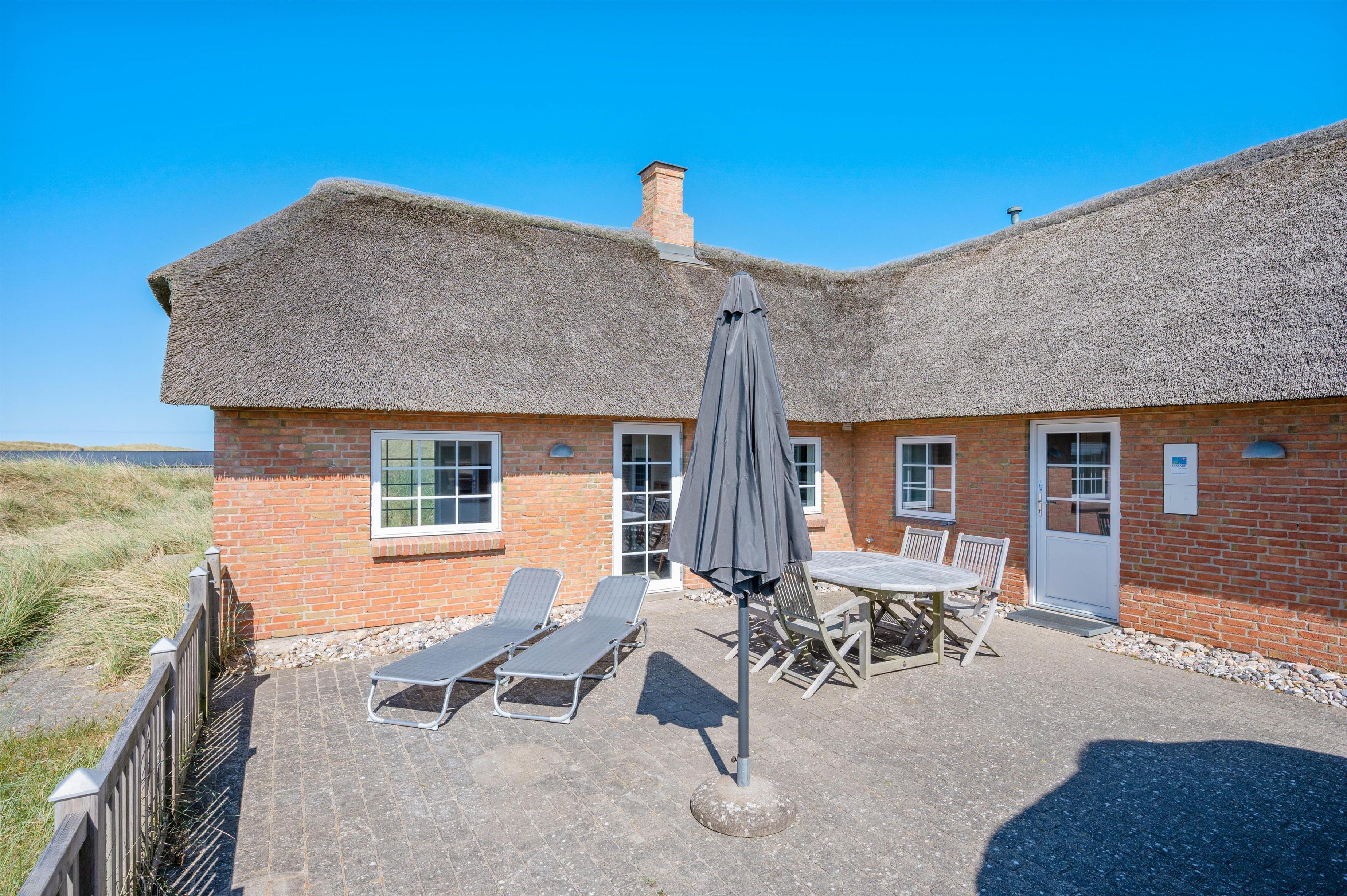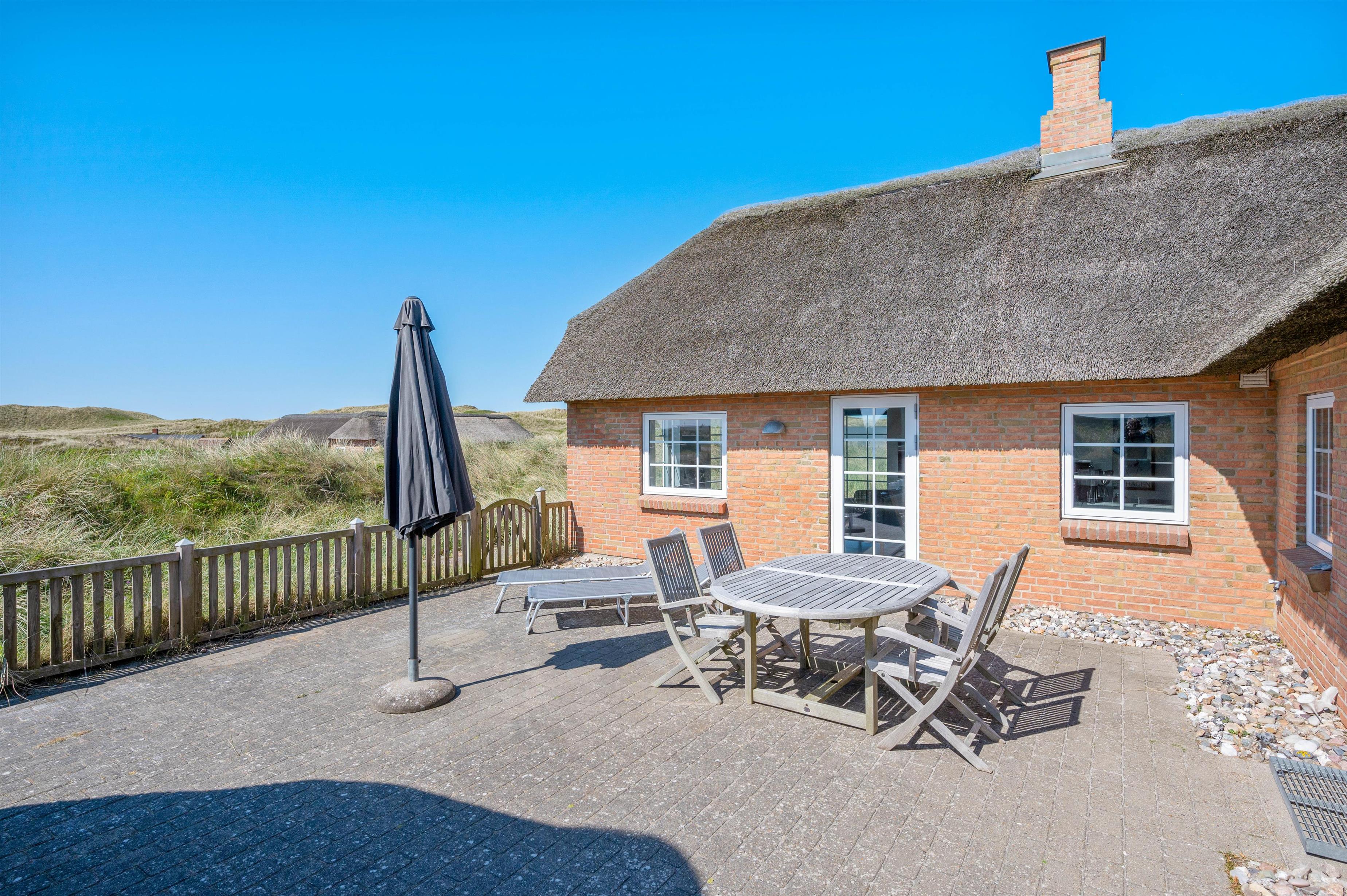 Nyd jeres feriedage i dette femstjernede stråtækte sommerhus med direkte udsigt til første klitrække. Faktisk er der kun 200 meter til stranden. Det er dog ikke kun udsigten, der er fantastisk. Feriehuset på Fladsbjergvej 71 i Klegod byder også på skønne faciliteter som spa og sauna samt en lækker syd-vestvendt terrasse, der kalder på solbadning og hyggelige sommerstunder.