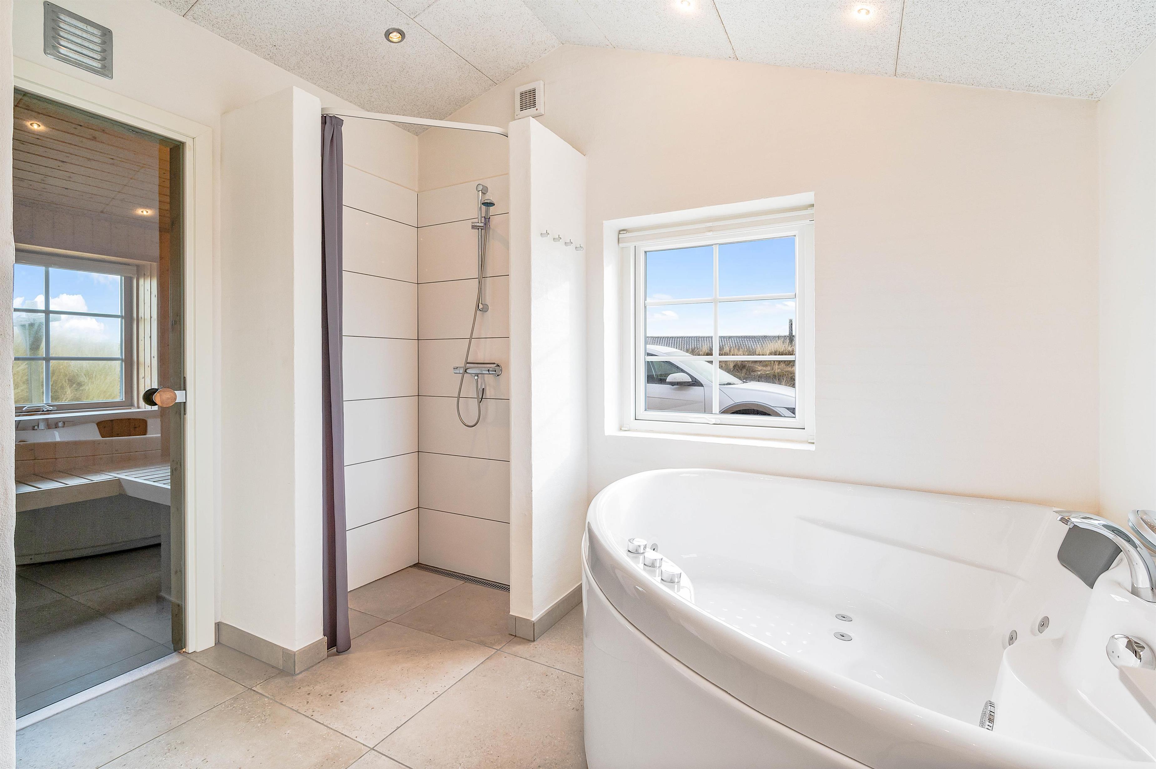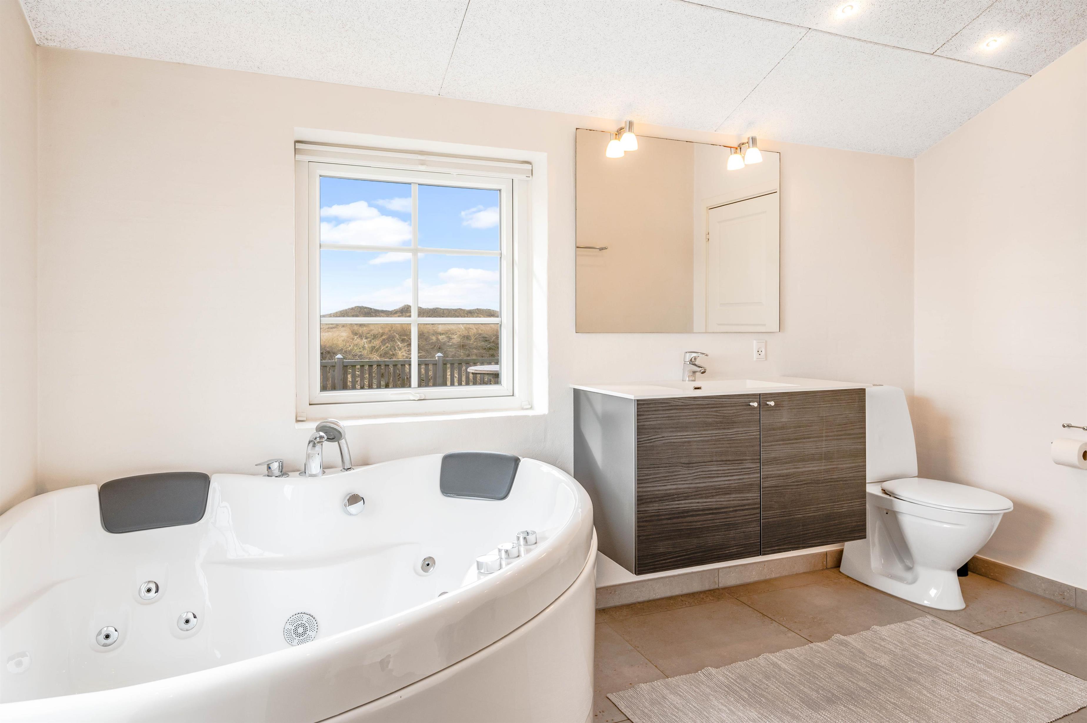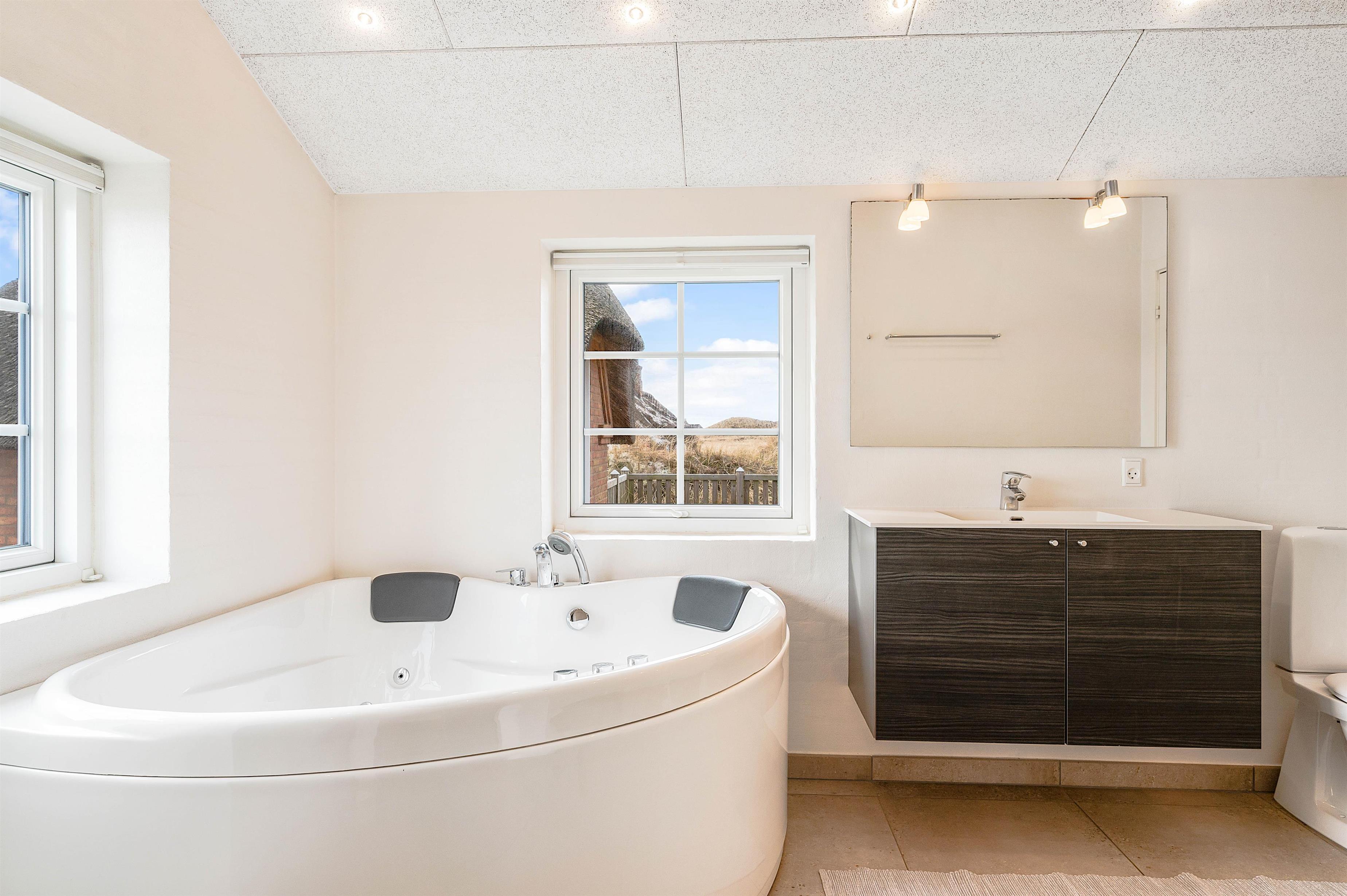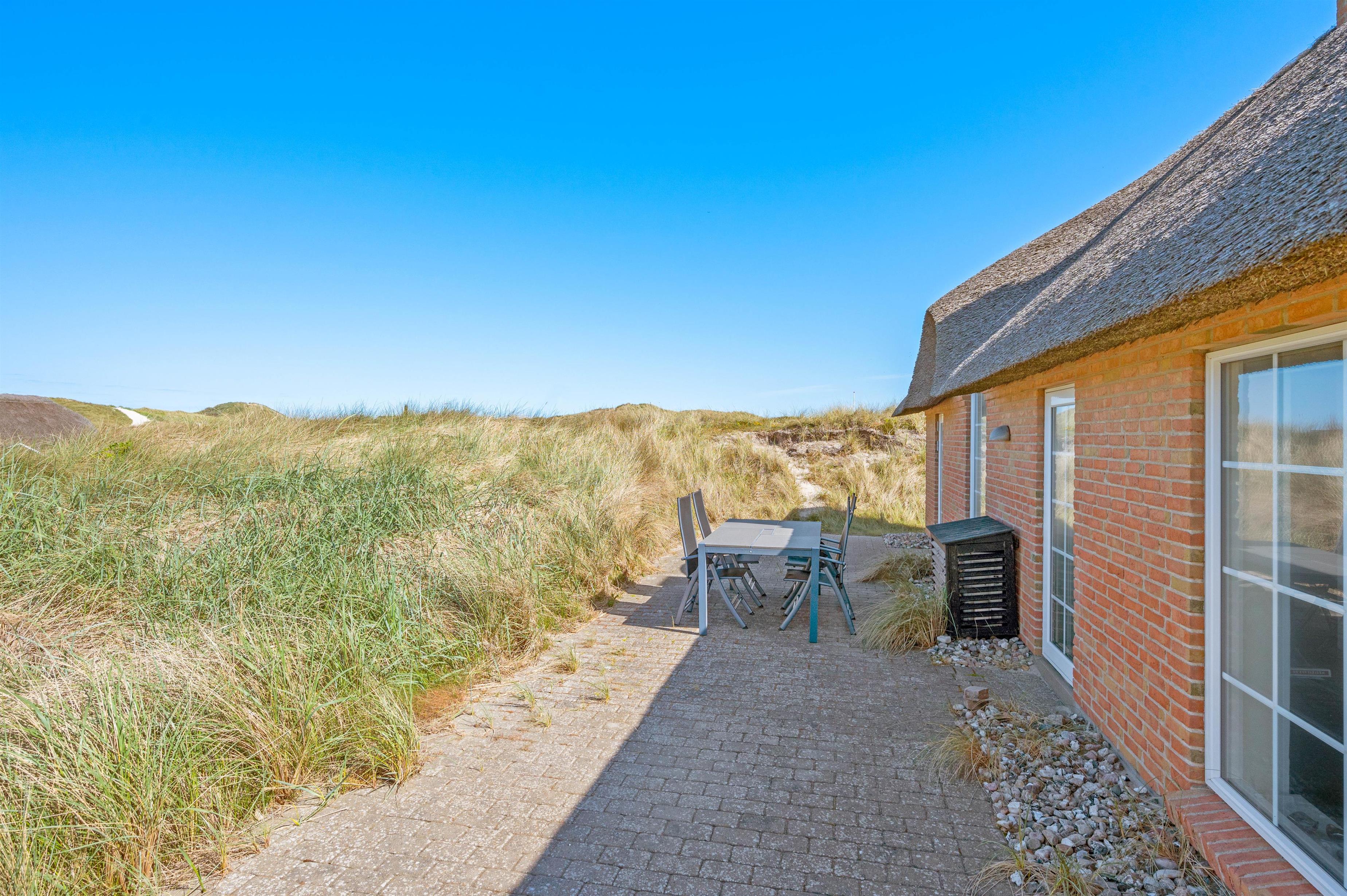 Nyd jeres feriedage i dette femstjernede stråtækte sommerhus med direkte udsigt til første klitrække. Faktisk er der kun 200 meter til stranden. Det er dog ikke kun udsigten, der er fantastisk. Feriehuset på Fladsbjergvej 71 i Klegod byder også på skønne faciliteter som spa og sauna samt en lækker syd-vestvendt terrasse, der kalder på solbadning og hyggelige sommerstunder.