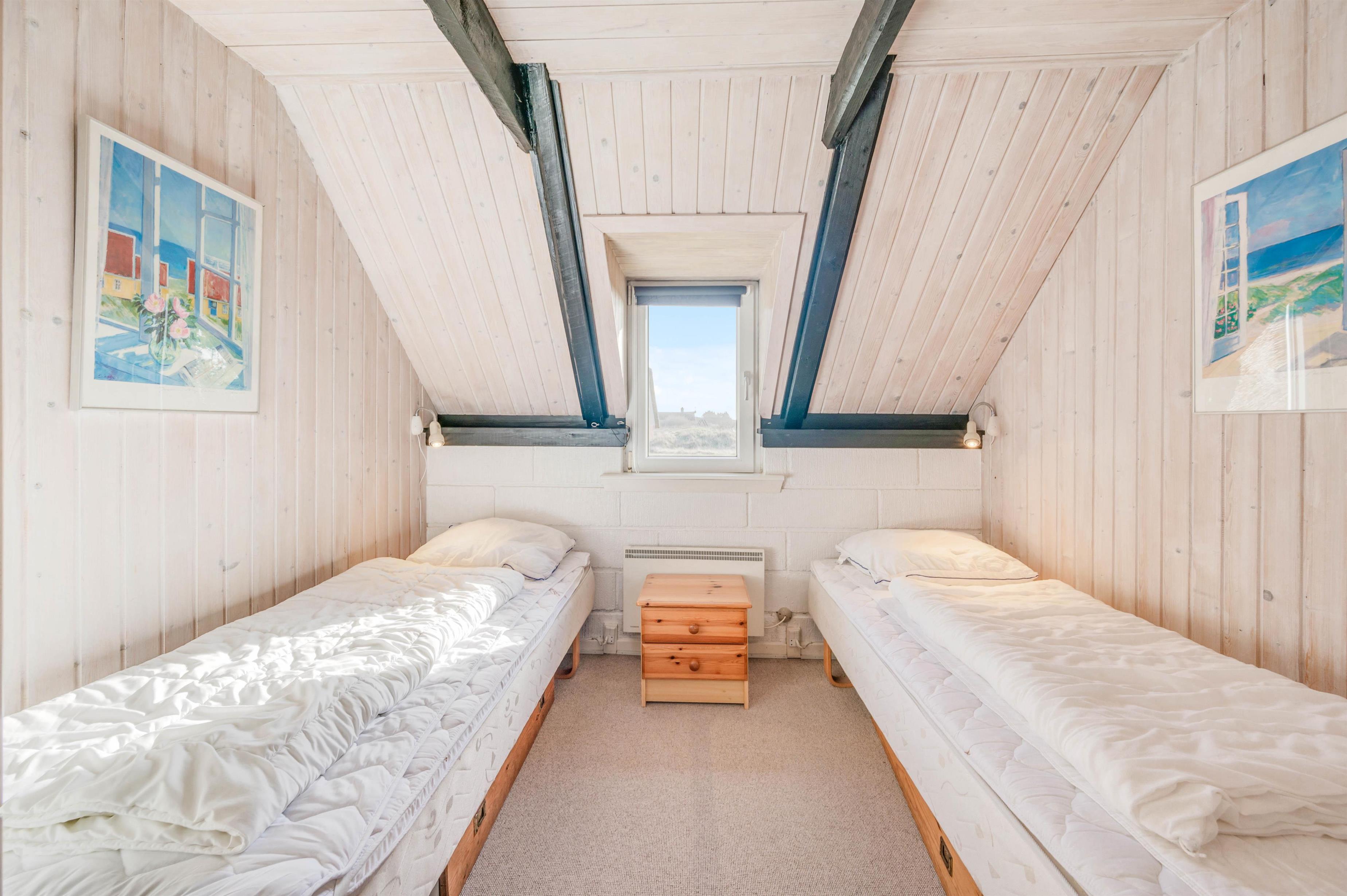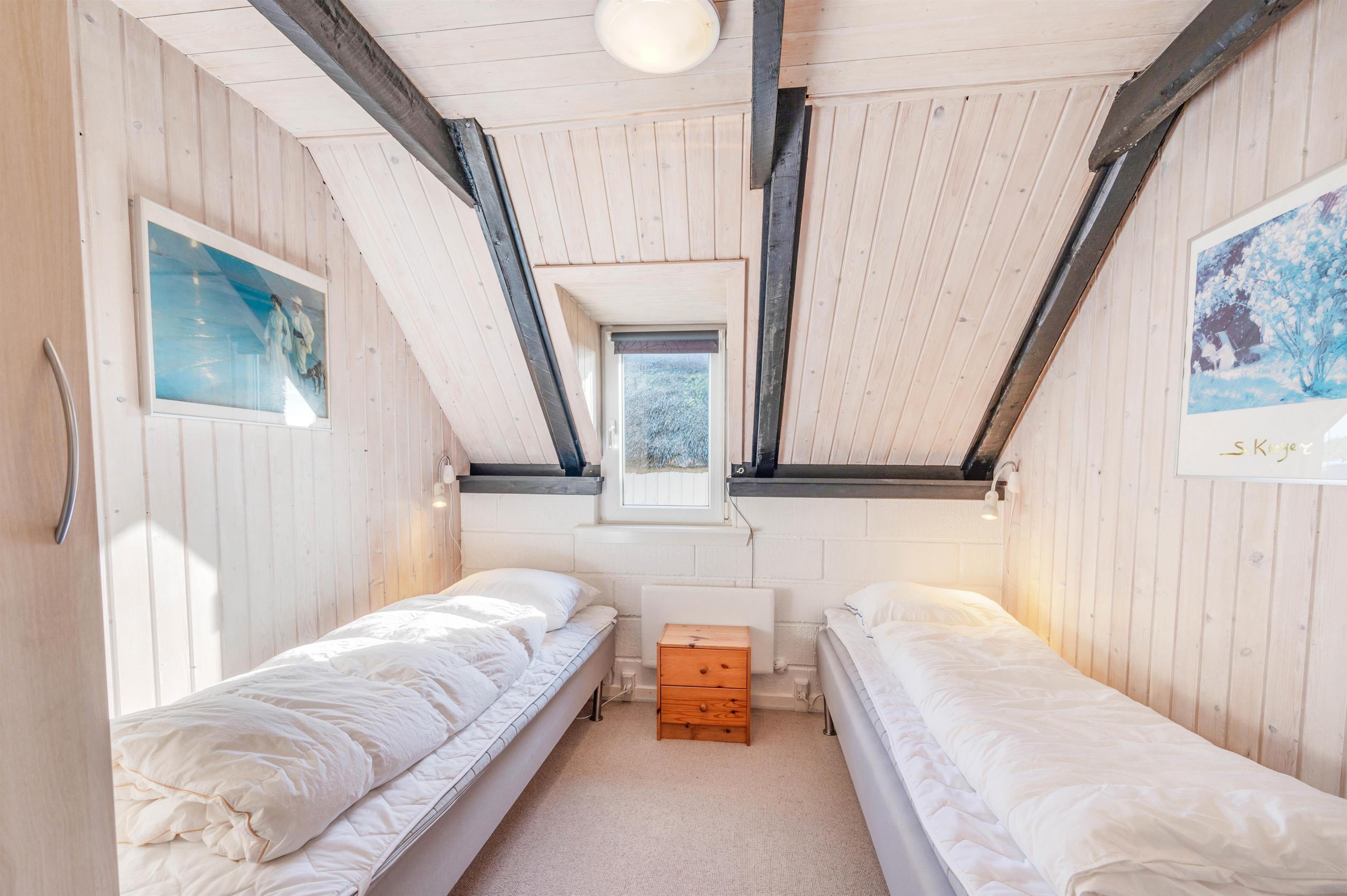 I sommerhuset er der 3 soveværelser og 1 badeværelse med en lækker sauna. Derudover er der også en hems i feriehuset. Har I børn med på ferien, vil de helt sikkert elske at have førsteret til hemsen.