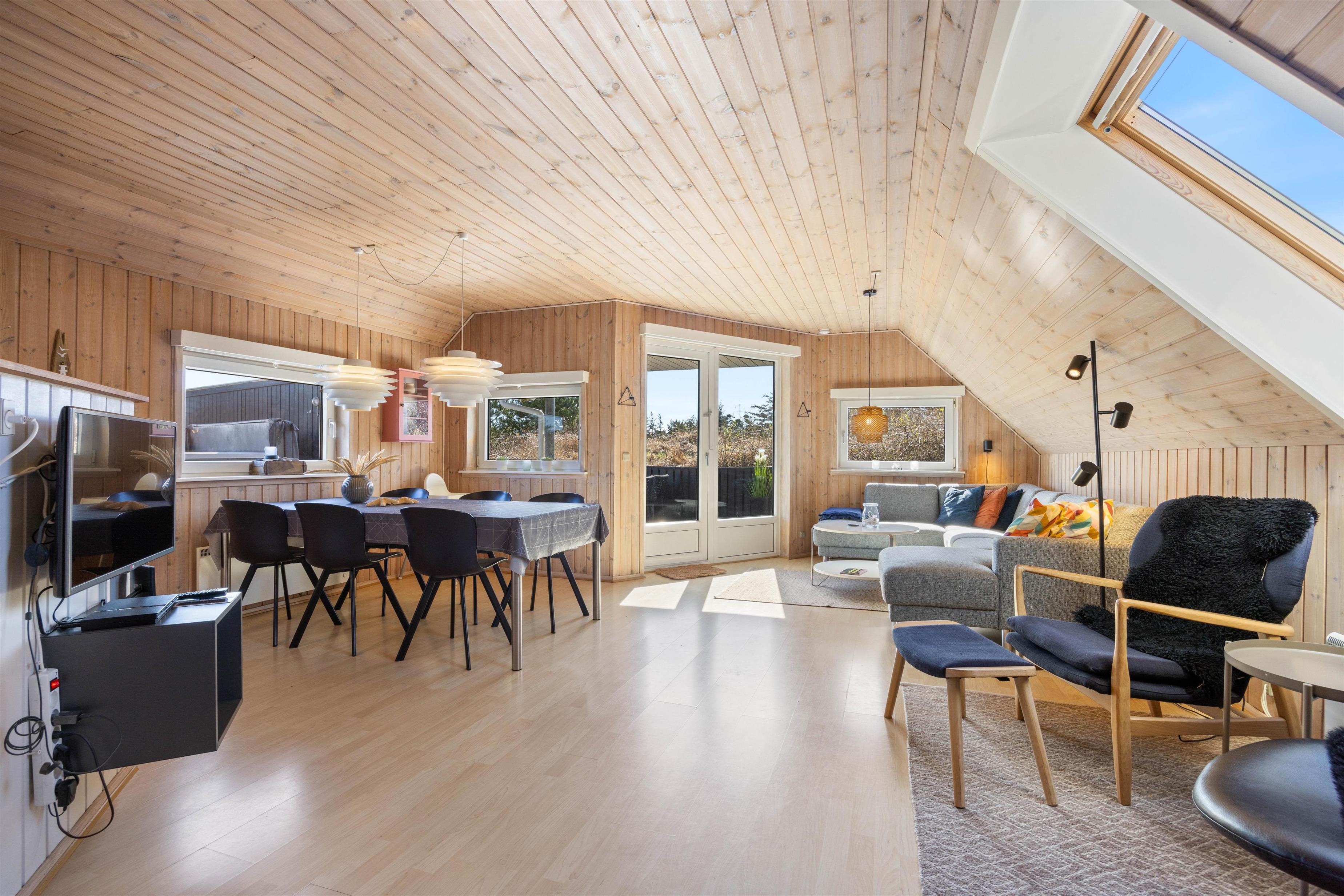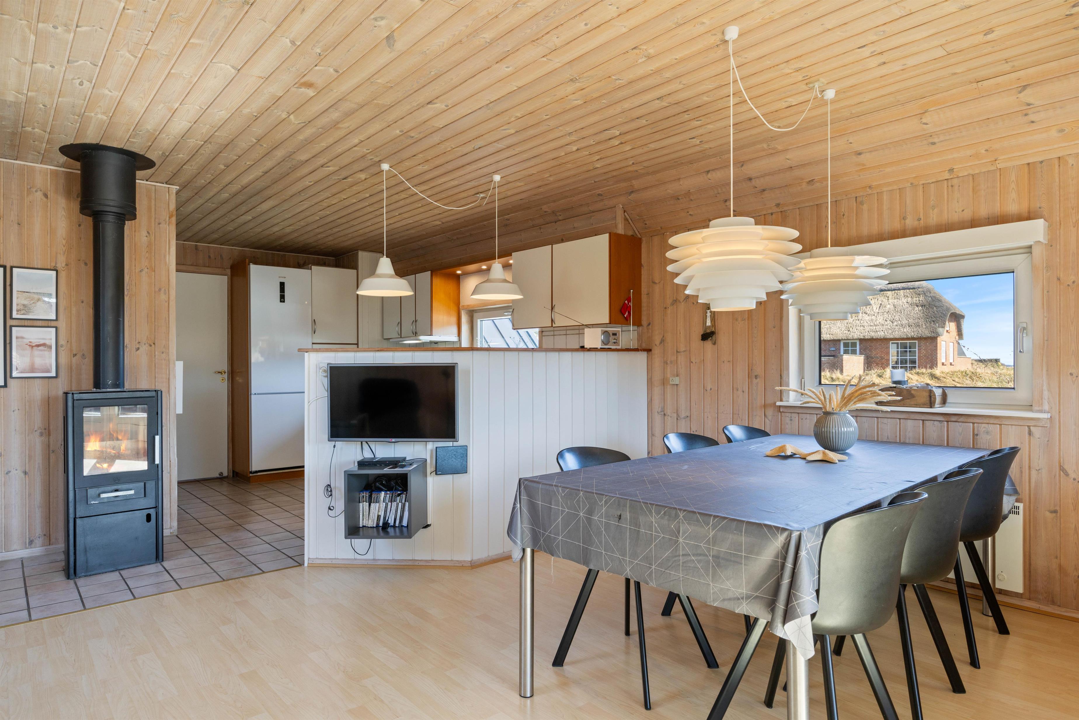 Når I træder ind i sommerhuset, vil I straks mærke den hyggelige atmosfære fra brændeovnen, der er det ideelle samlingspunkt på en kølig aften. Udover brændeovnen er varmepumpen også med til at sikre en dejlig inde temperatur året rundt.