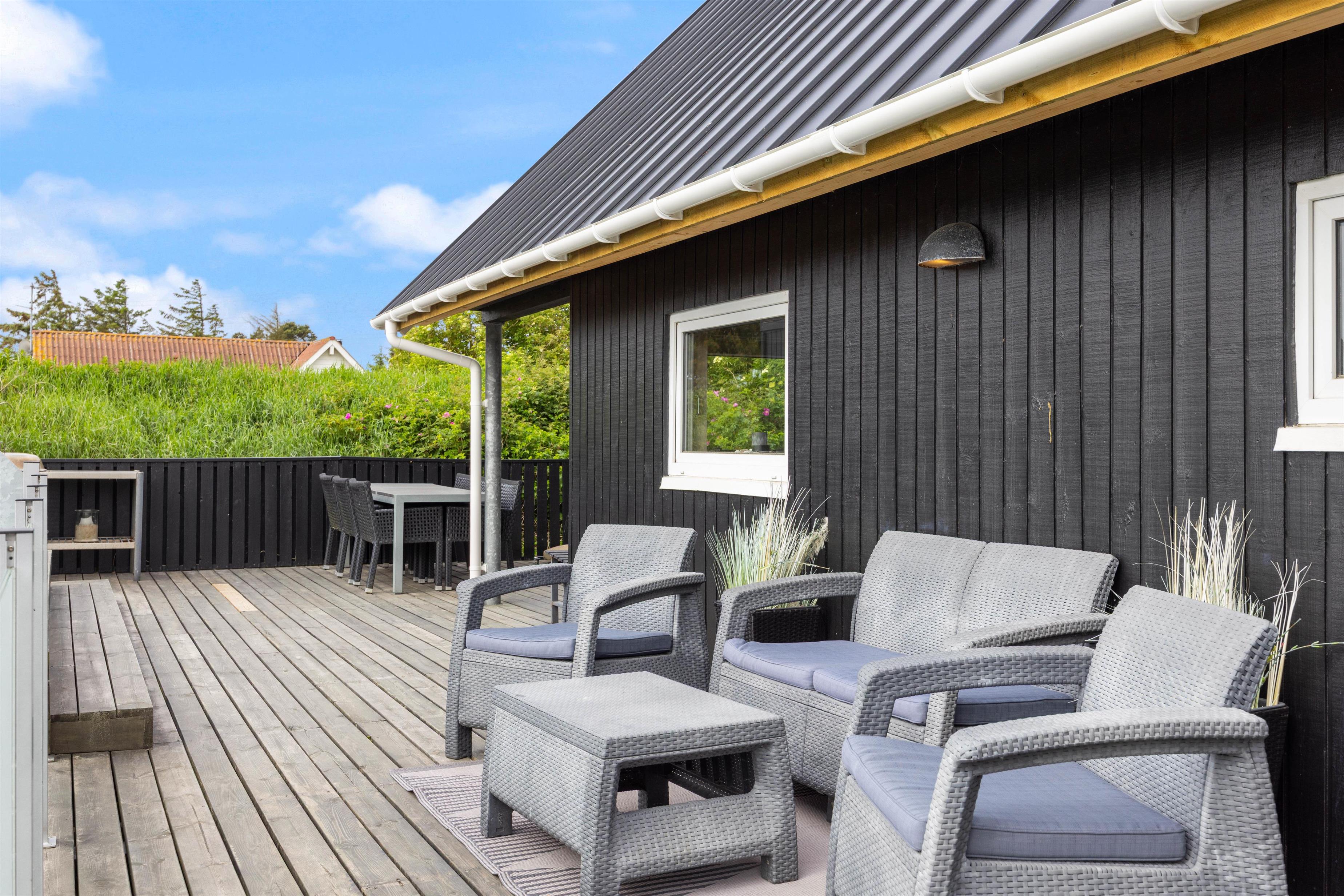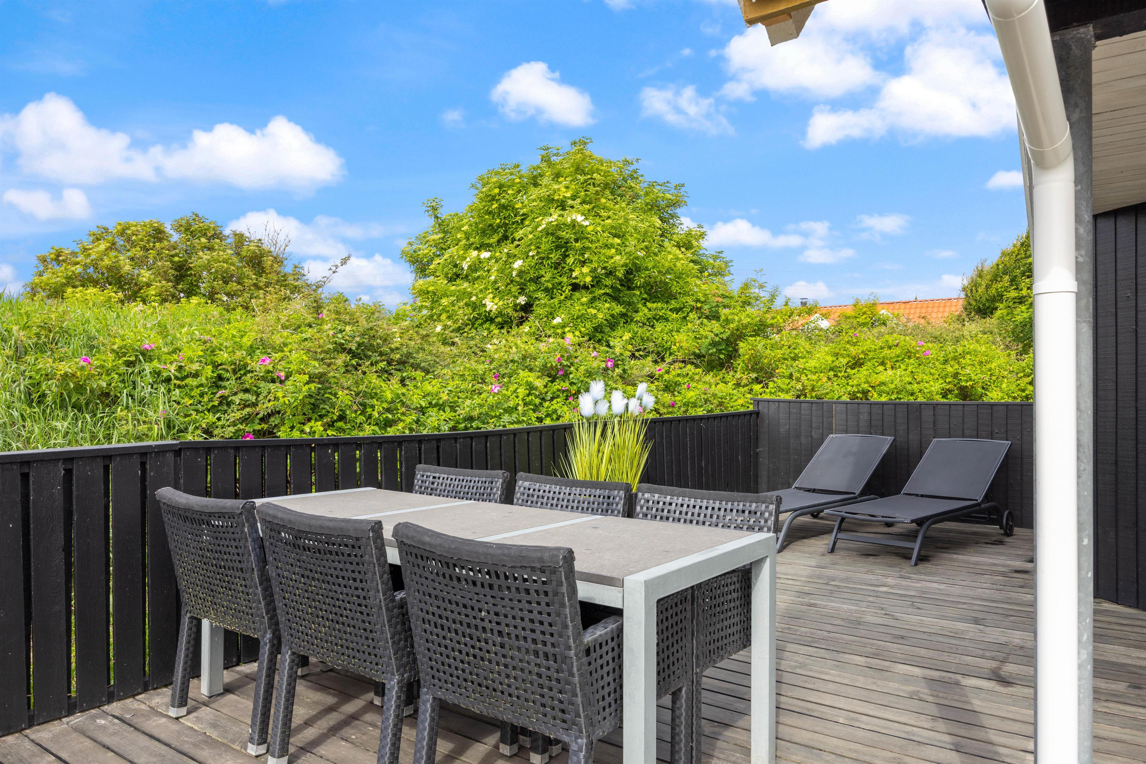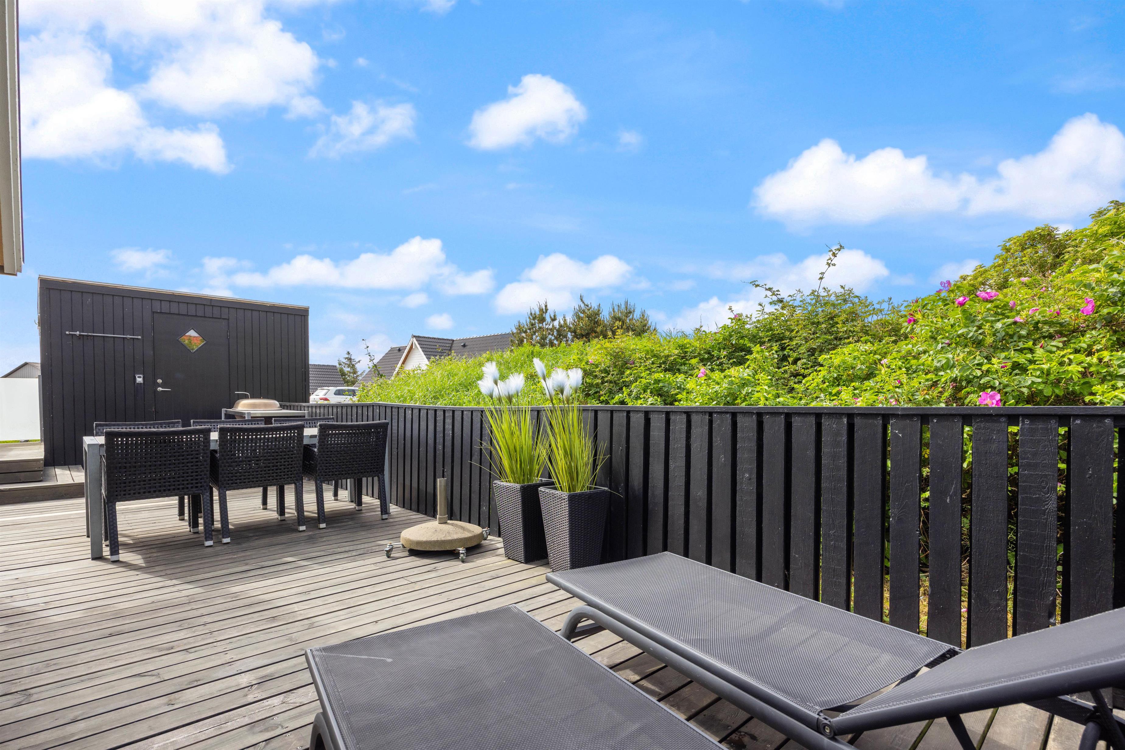 Når vejret byder op til det, kan I sætte jer ud på den afskærmede terrasse, som er perfekt til stille stunder med en kop kaffe eller en god bog, mens grillen står klar til hyggelige sommeraftener med familien.
