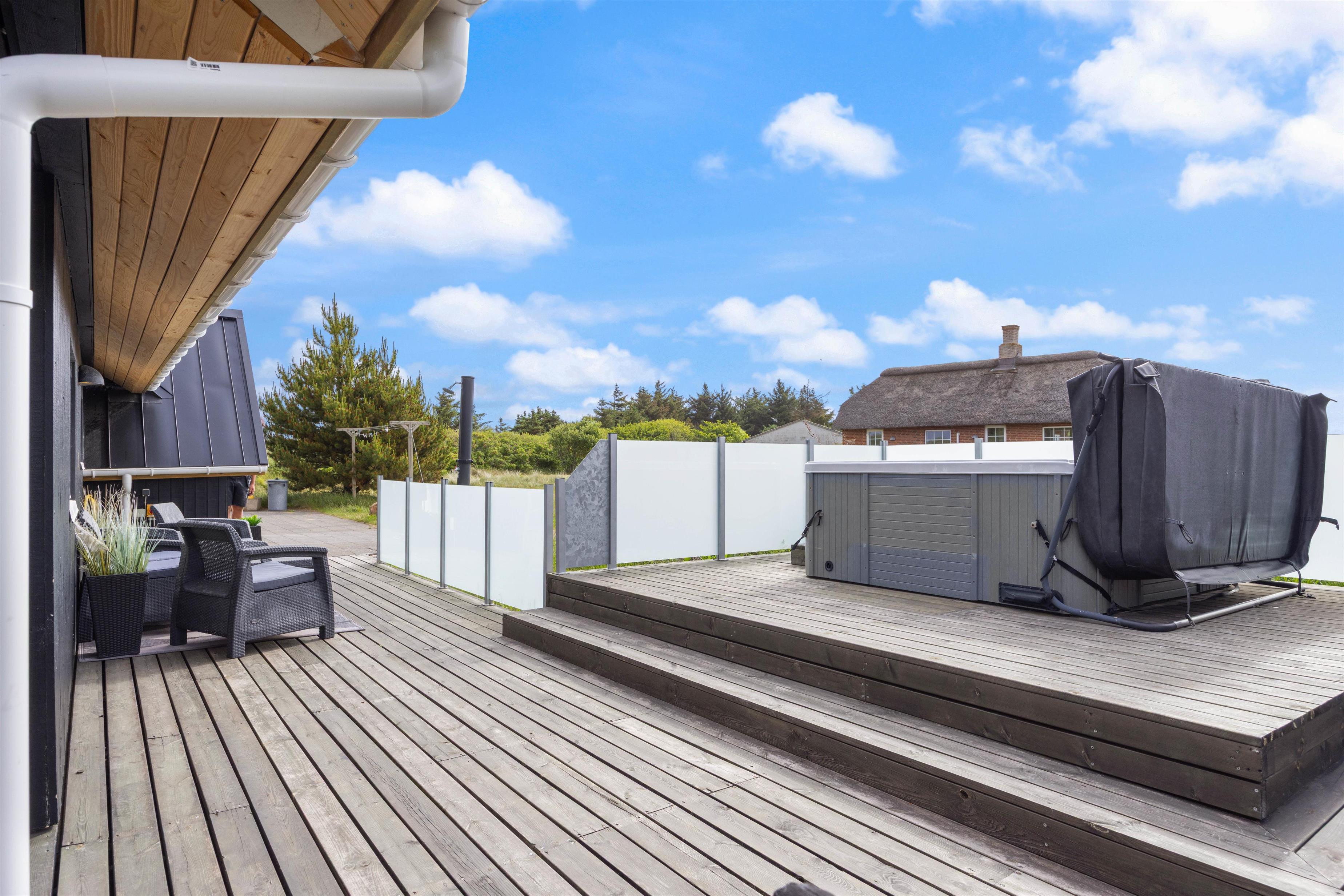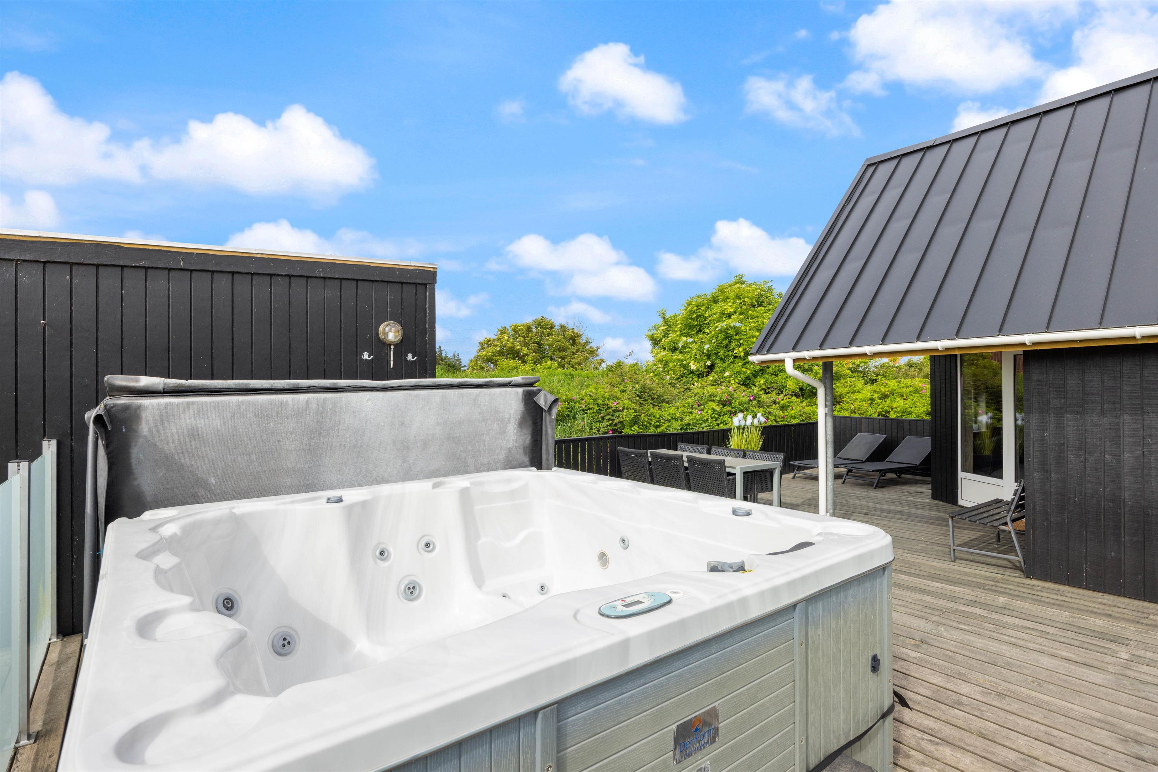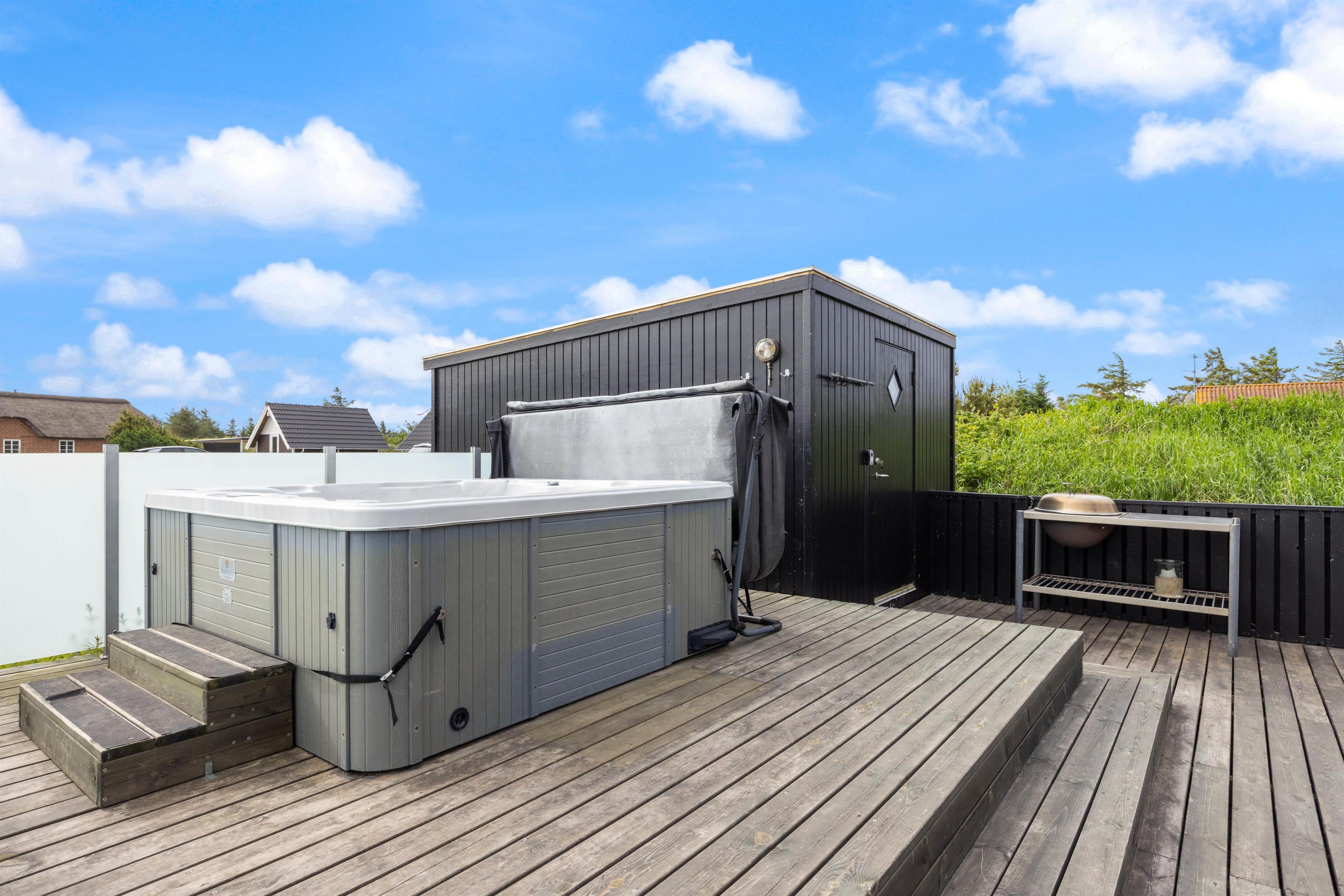 Afskærmet terrasse med spa og udebruser