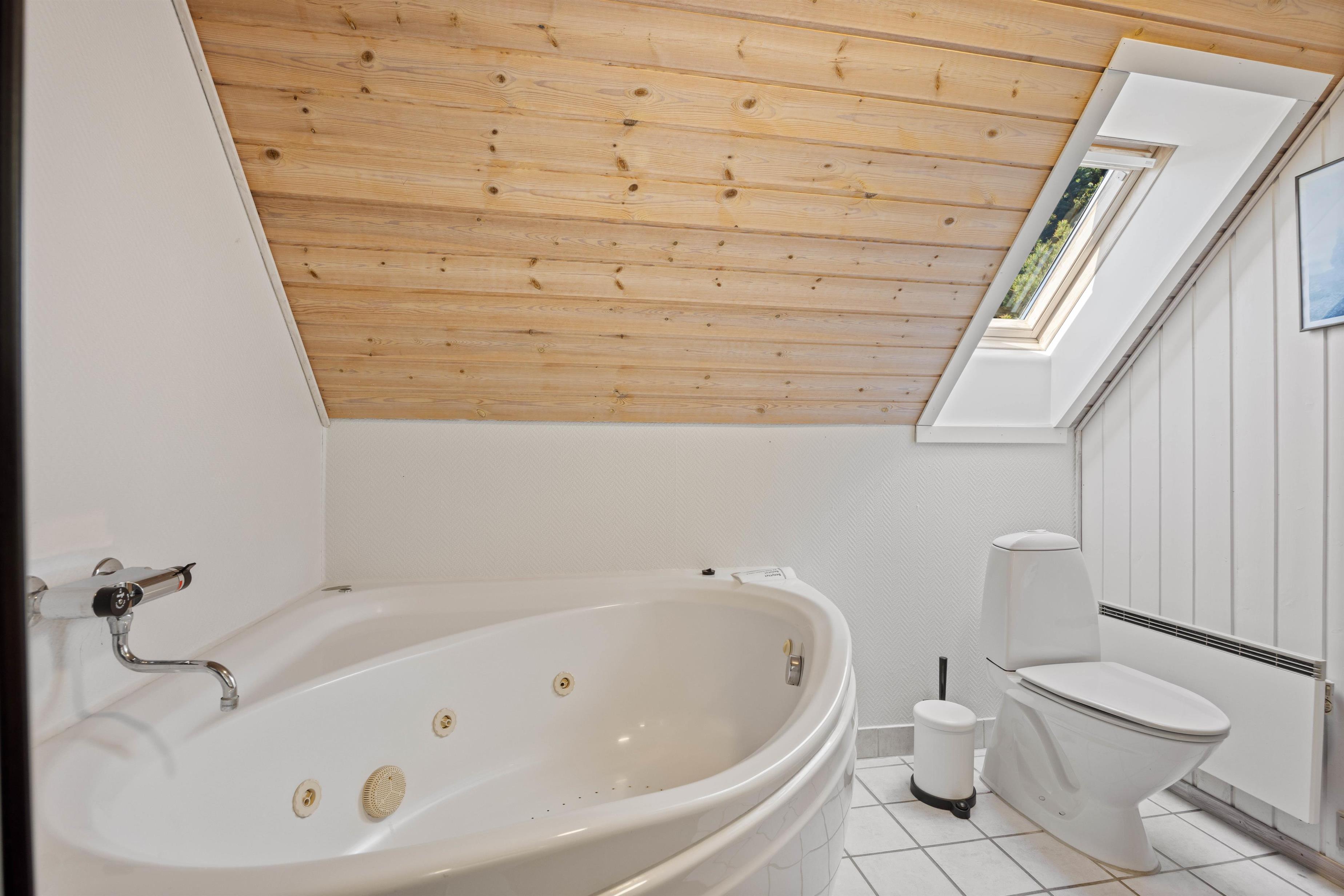 De 6 sovepladser fordeler sig på 3 soverum, hvor der er plads til, at I kan få en god nats søvn. Badeværelset har gulvvarme og byder desuden på både en spa og sauna, hvor I kan slappe af efter en dejlig dag. Derudover finder I også et gæstetoilet med gulvvarme i sommerhuset.