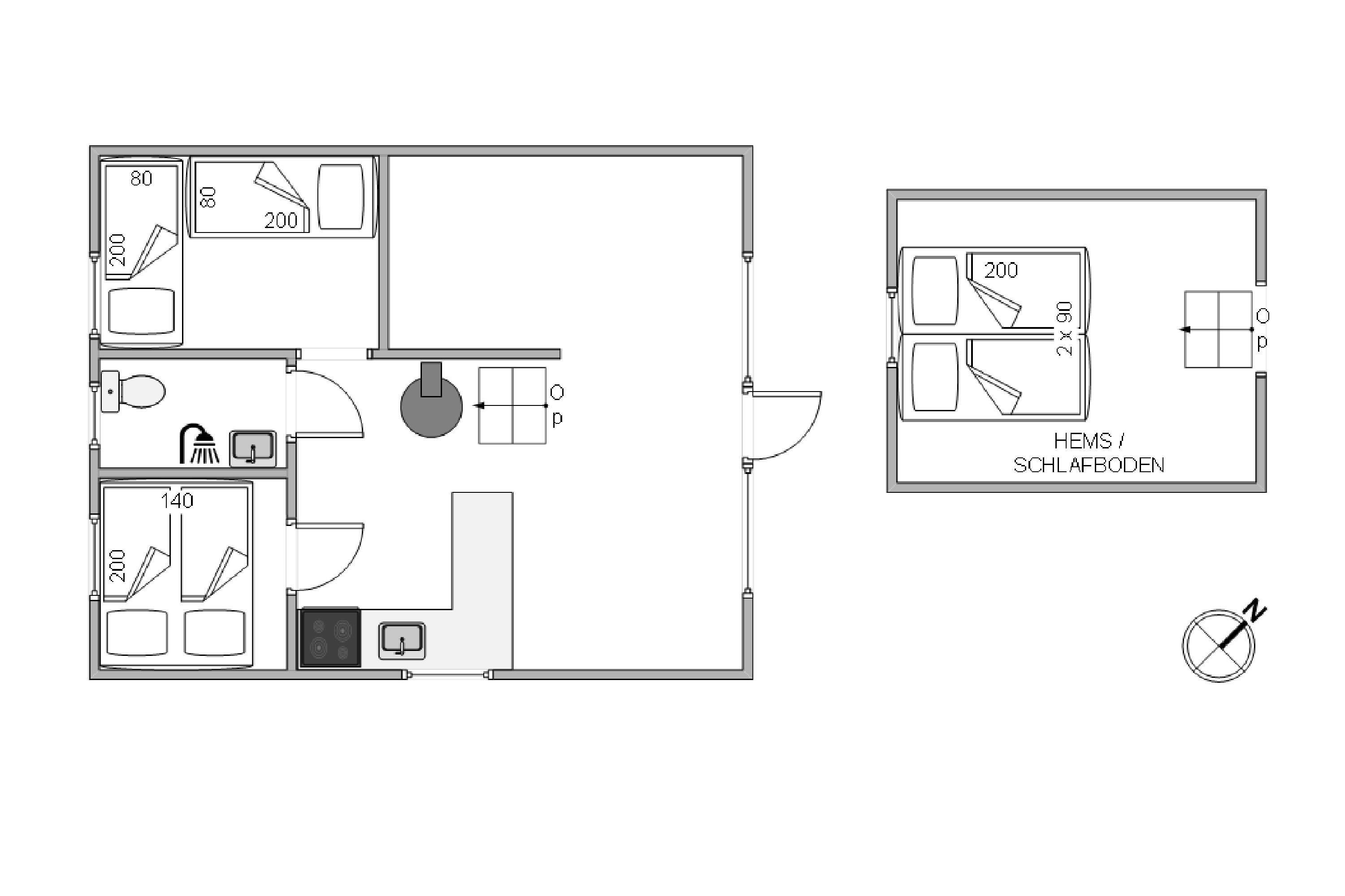 Husets hjerte er det åbne opholdsrum, hvor stue og køkken er lagt sammen, og hele familien kan samles til en masse hyggelige stunder. Her står også brændeovnen, som sørger for varme og god feriestemning i alle årets måneder.