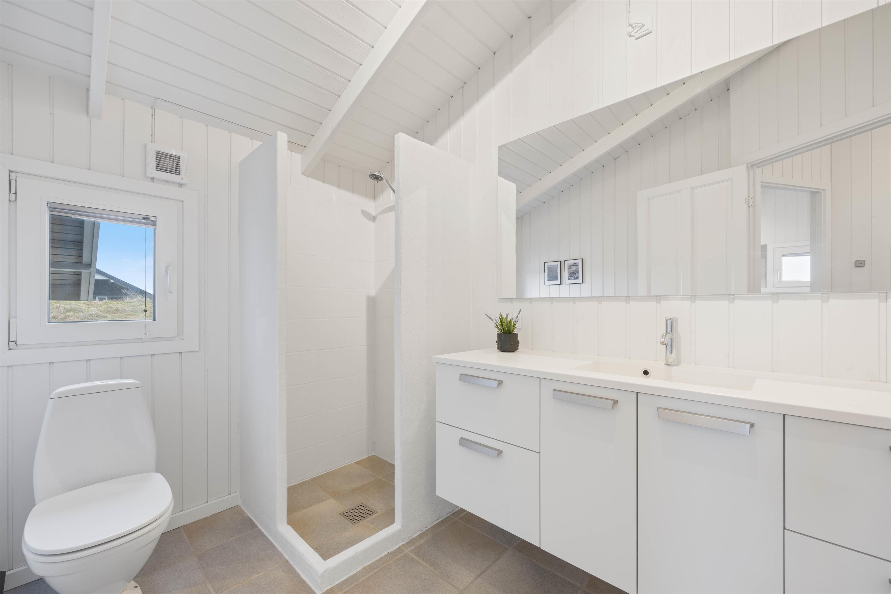 Hvis I planlægger en ferie med venner eller rejser med 2 familier, vil I blive glad for de 2 badeværelser i sommerhuset samt gulvvarmen i begge badeværelser.