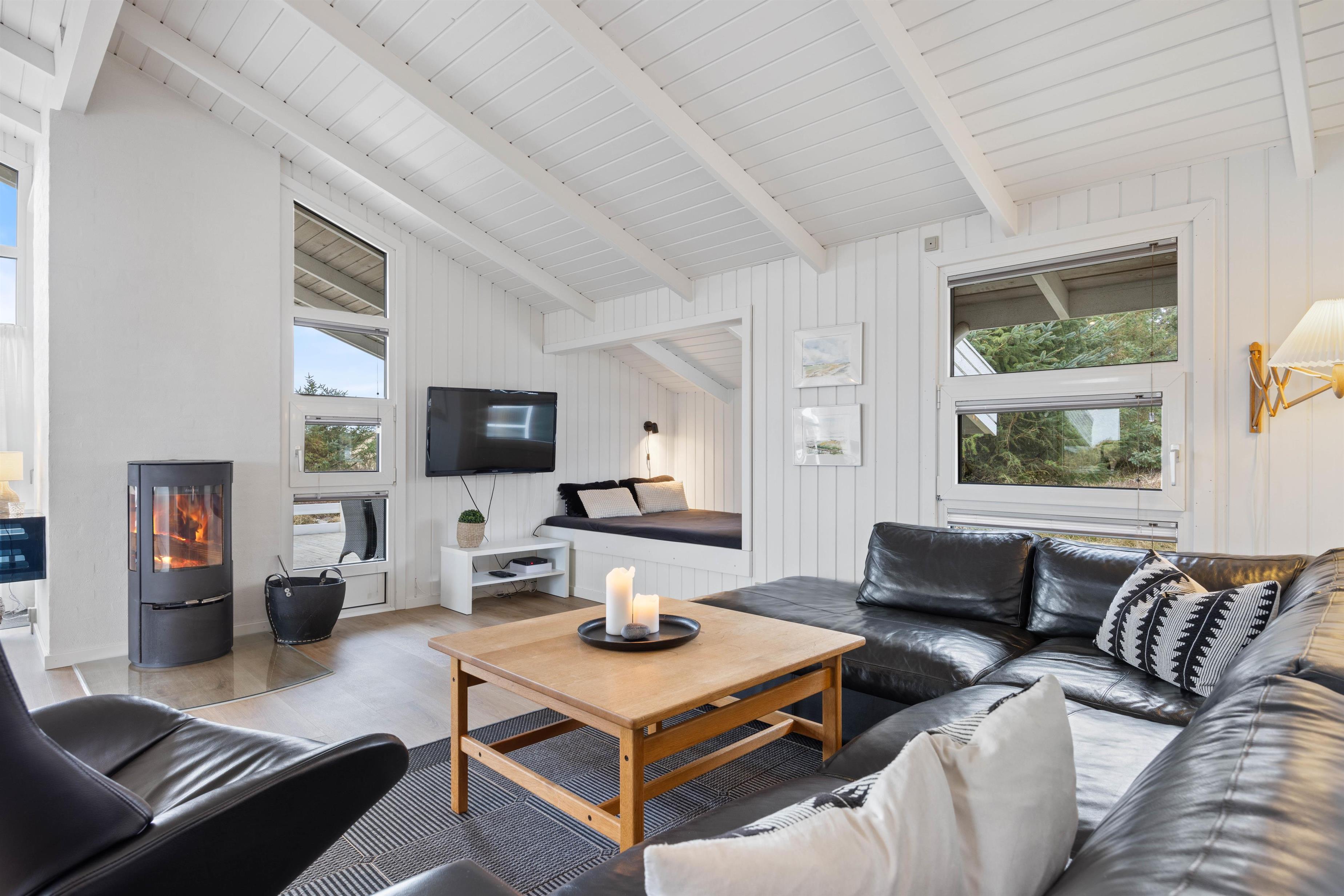 For at spare på eludgifterne kan I bruge varmepumpen, som giver en behagelig varme i feriehuset hele året rundt. Den lille alkove i stuen er ideel til en lur om eftermiddagen eller et par stille minutter med en god bog. Hvis du ikke vil gå glip af dine yndlingsserier, mens du er på ferie, kan du streame dem til fladskærms-tv'et via sommerhusets Chromecast.