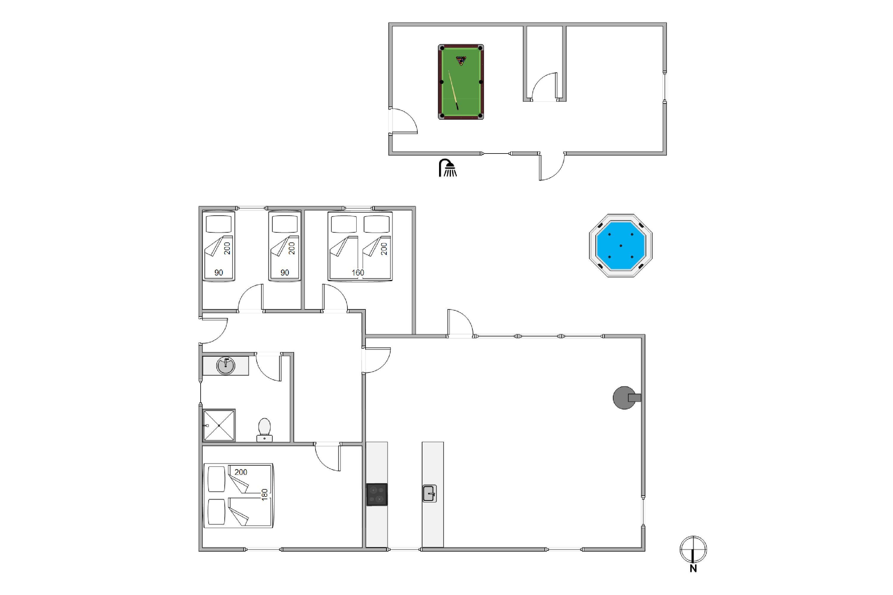 Sommerhuset har 3 gode soverum, hvor I kan finde til ro efter en dejlig dag. Derudover er der 1 badeværelse med gulvvarme, så I kan starte dagen med lune fødder. Derudover har sommerhuset en vaskemaskine, så I har mulighed for at få vasket jeres tøj under ferien.