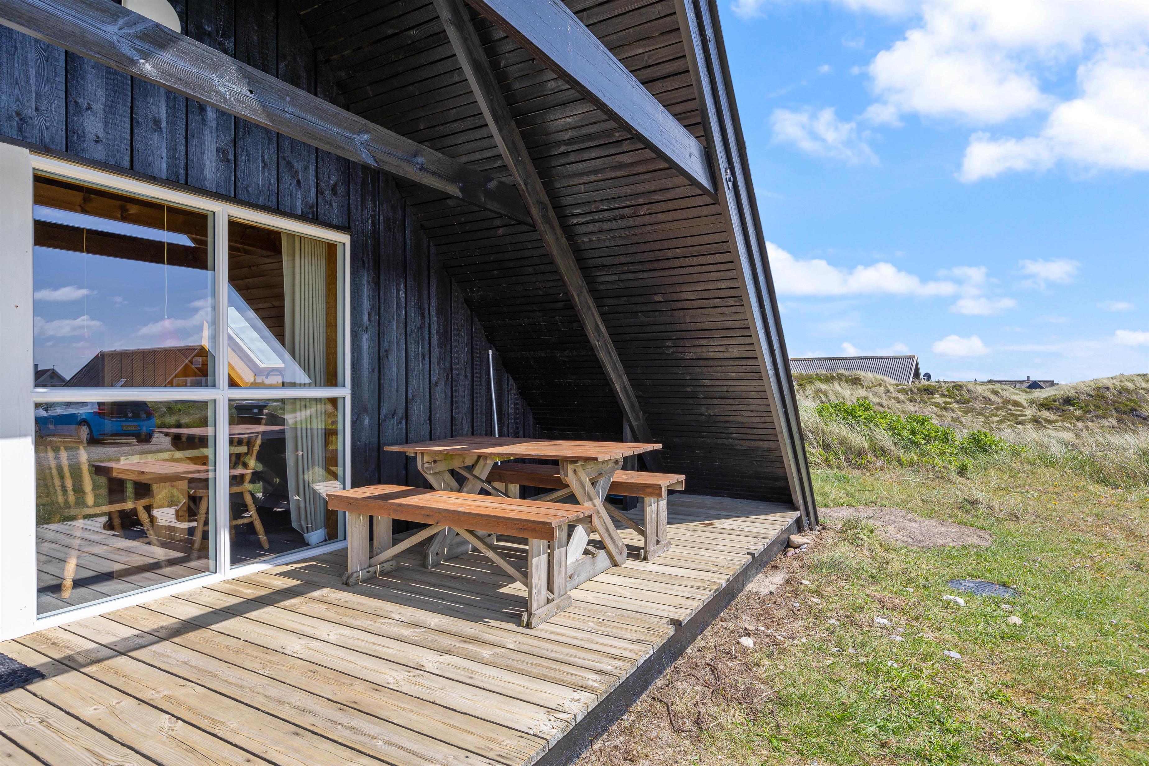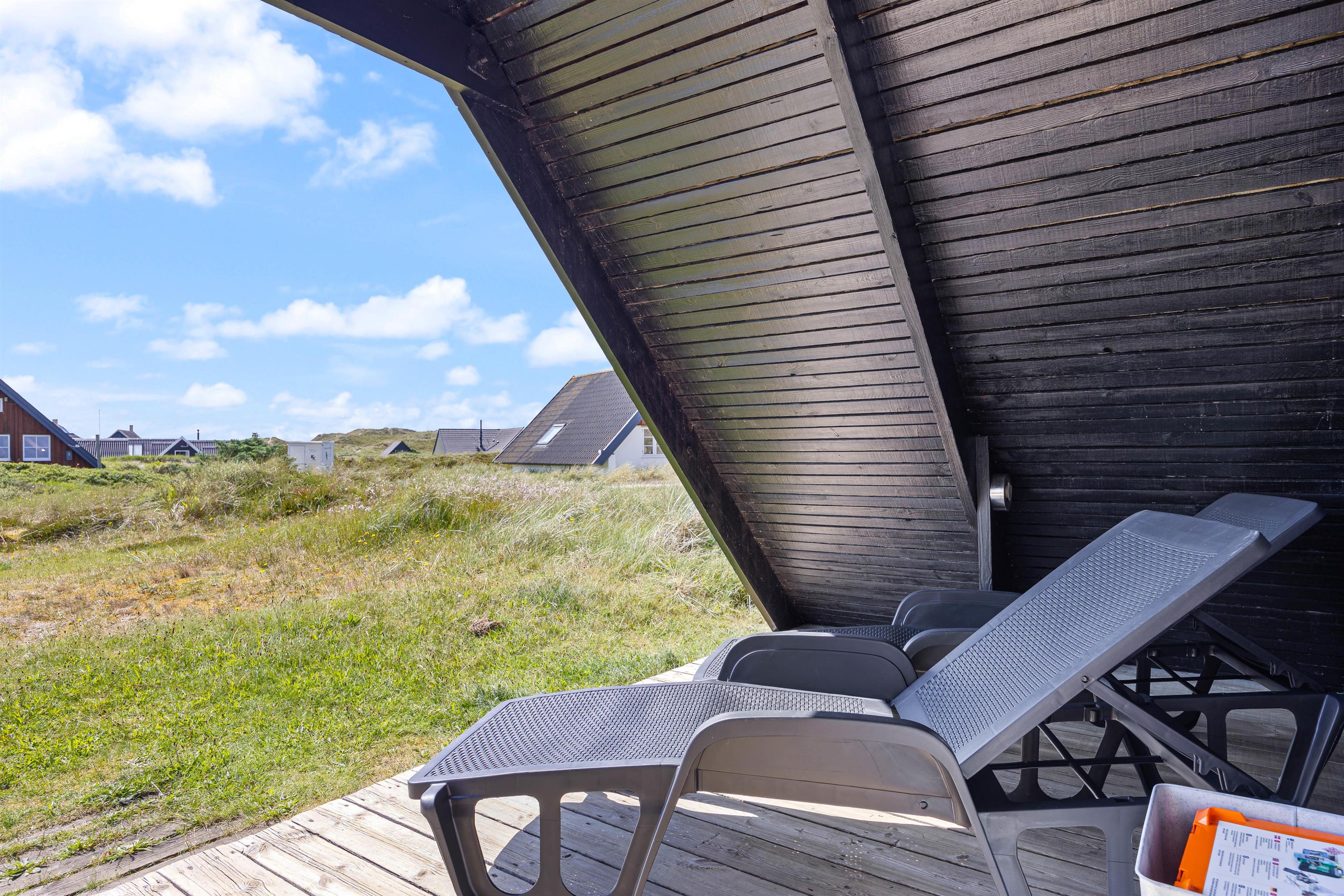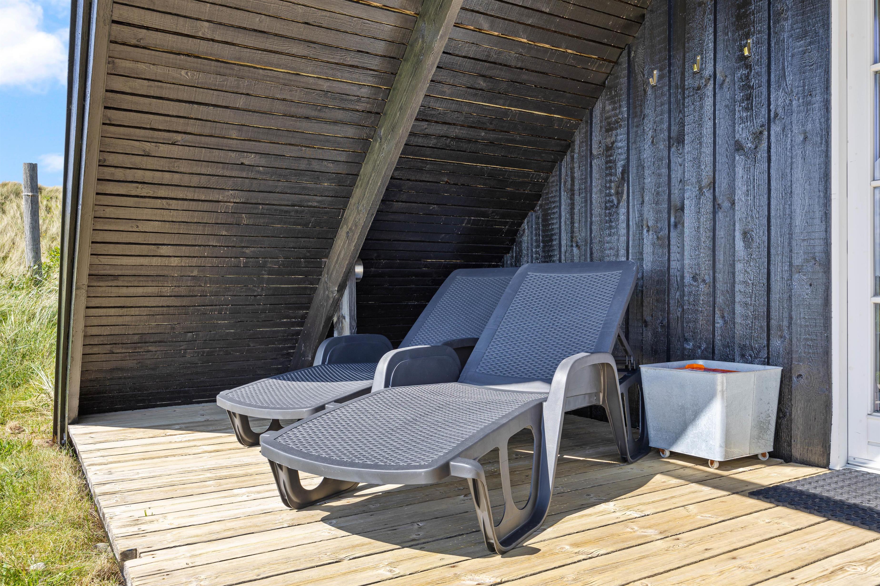 Sommerhuset tilbyder både en afskærmet og overdækket terrasse, perfekt til enhver form for vejr. Nyd din morgenkaffe ude i den friske vesterhavsluft eller tilbring de lange sommeraftener med grillmad og hygge. Med havemøbler til rådighed er det nemt at skabe den rette stemning for afslapning og samvær.