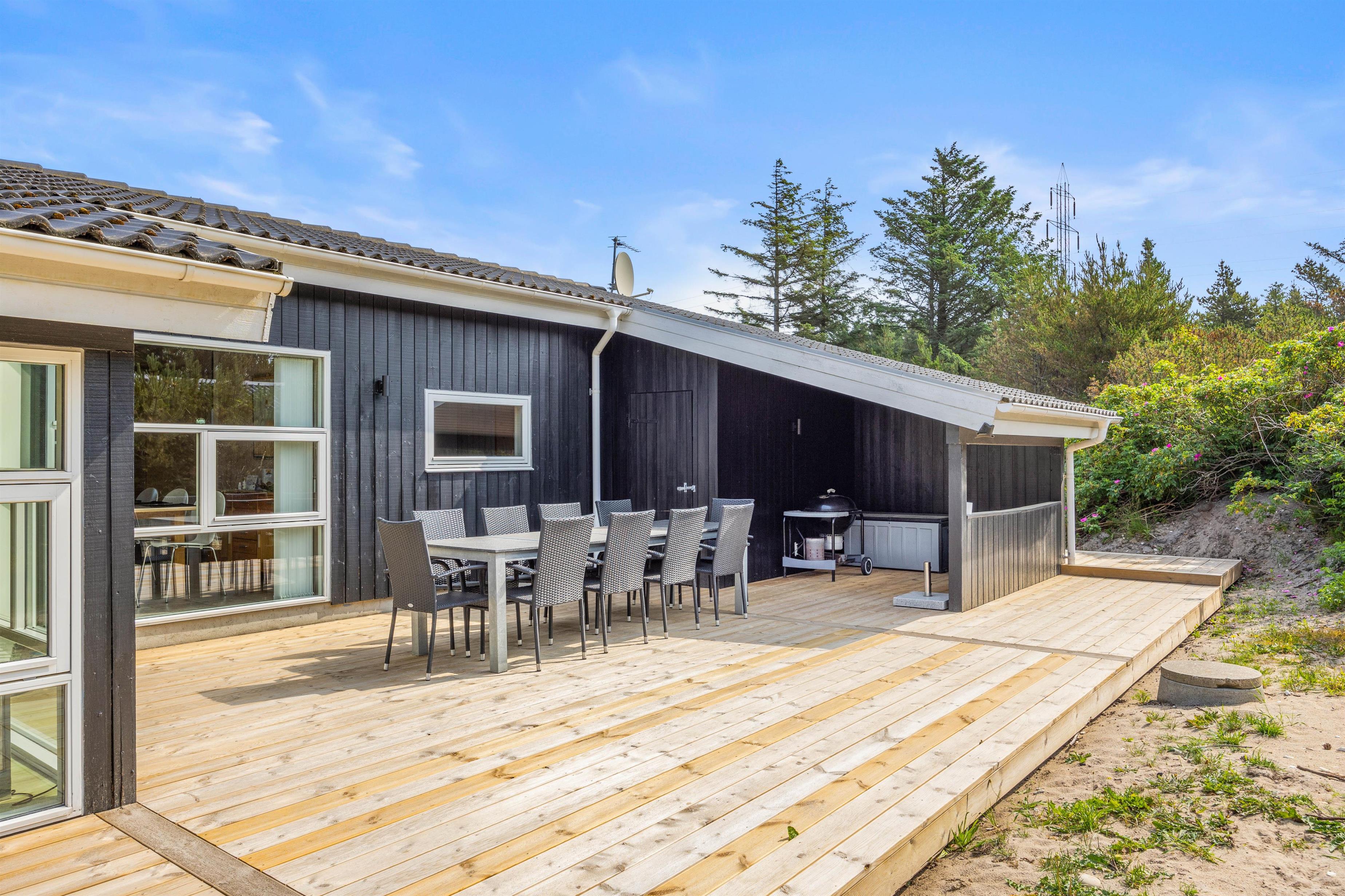 For enden af en stille blind vej ligger dette skønne sommerhus på Milevej 40. Sommerhuset med plads til 10 personer og 1 hund er den oplagte feriedestination for 2 familier, der sammen kan nyde en skøn ferie ved Vesterhavet fyldt med masser af afslapning. I sommerhuset er der nemlig både spa og sauna, så I kan få jer lige dén afslapning, I har brug for. Feriehuset ligger på en stor naturgrund og har egen skov, så I har masser af plads og kan virkelig nyde privatlivet i haven og på den store sydvendte terrasse.