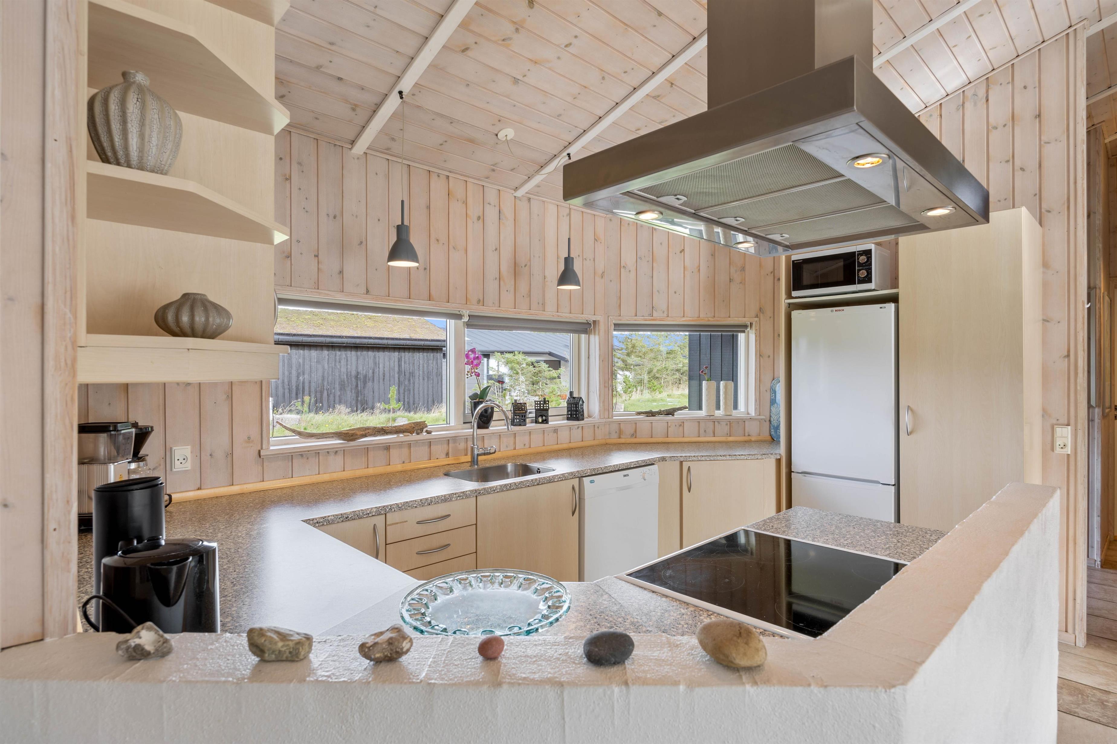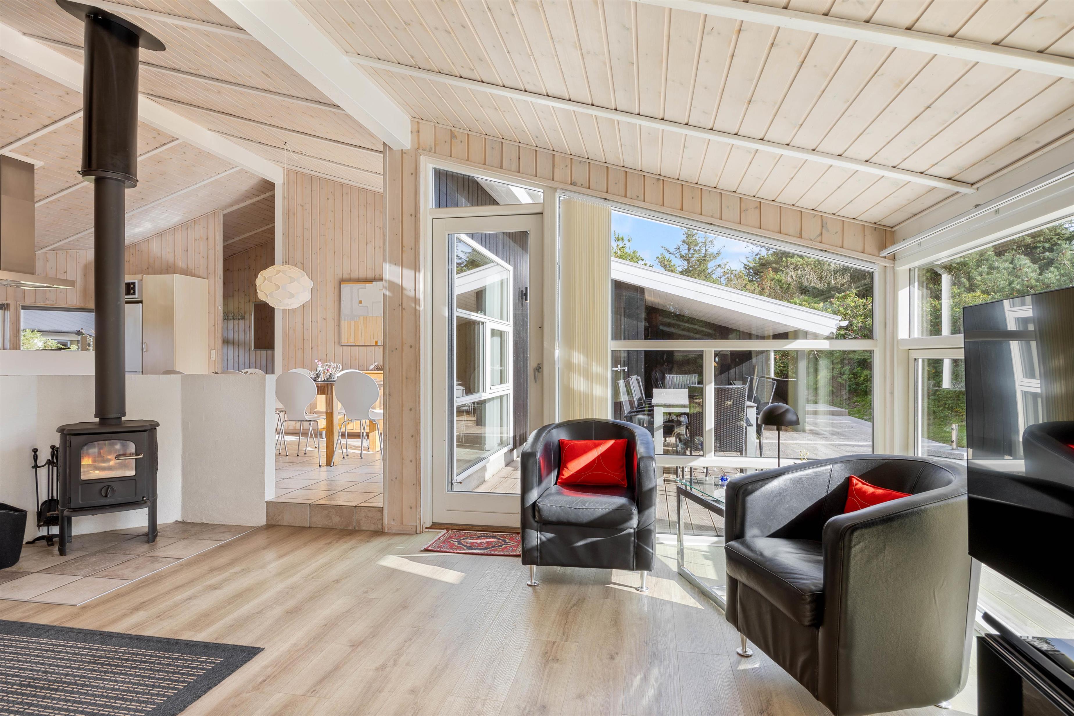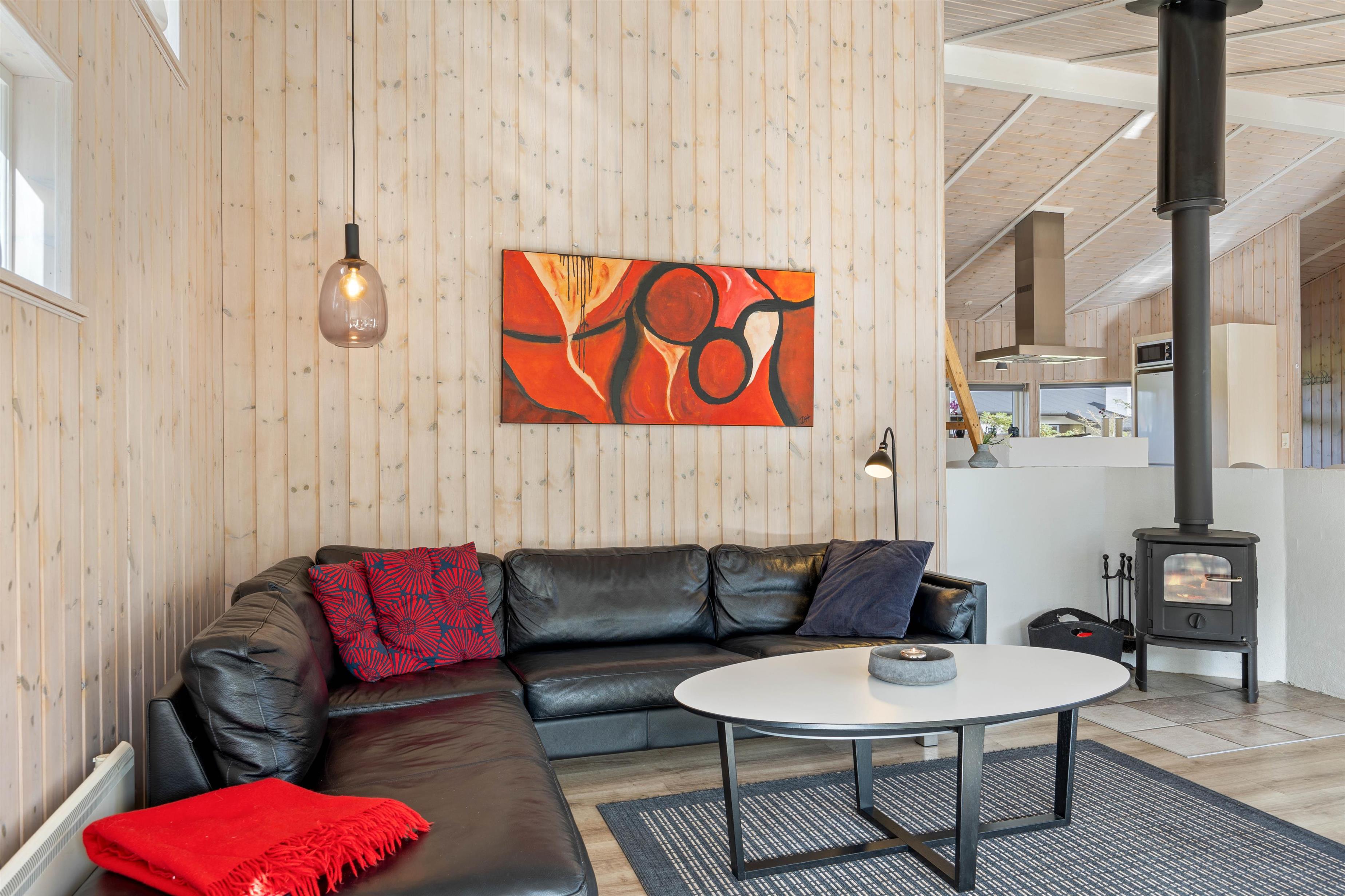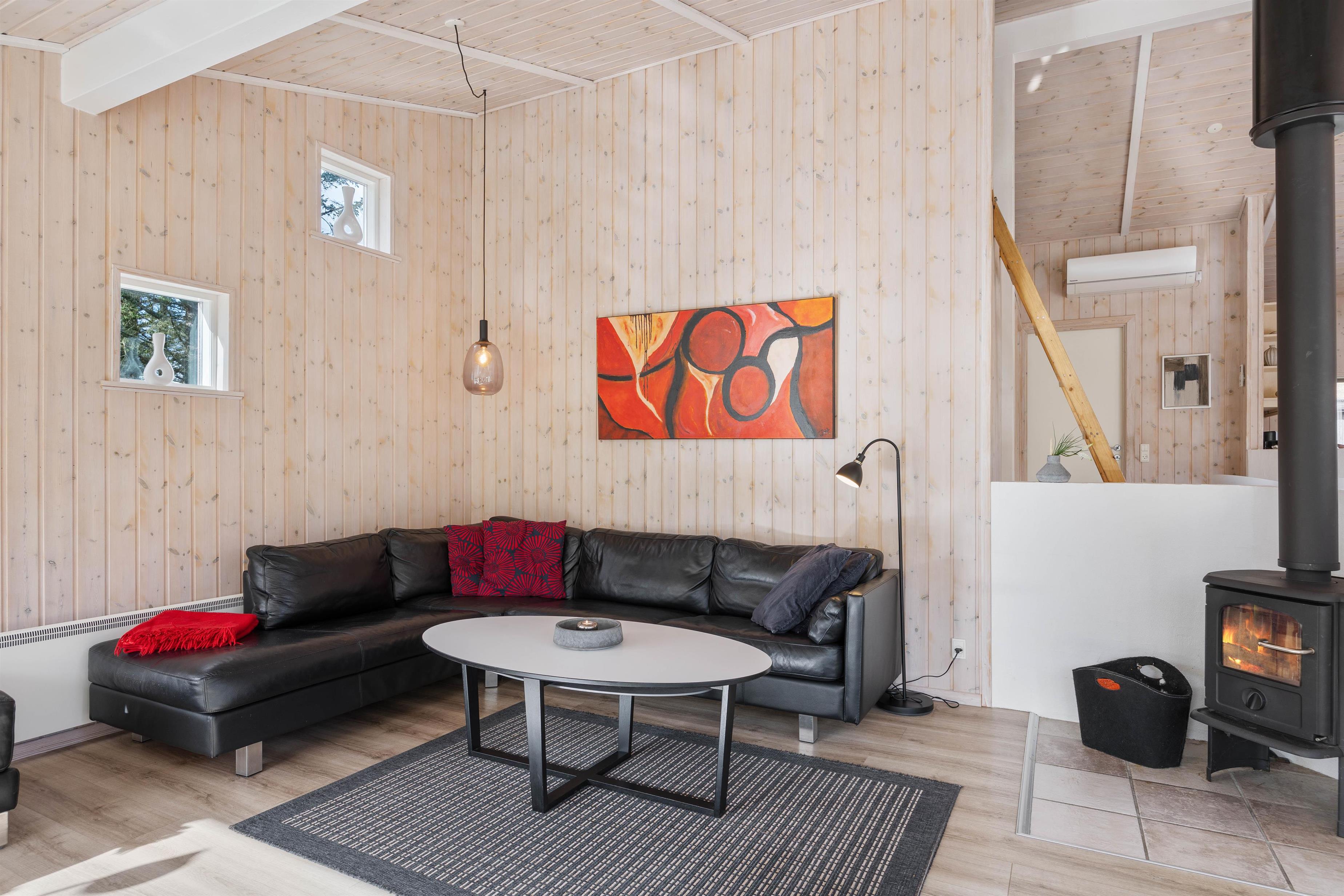 Til sjove og hyggelige feriestunder er opholdsstuen med loft til kip det oplagte sted for jer at samles. Her er der masser af plads til alle feriens gæster, og I kan være sammen om at lave mad, spille spil eller se film. Uanset hvilken ferieaktivitet, I giver jer i kast med, sørger brændeovnen for at sætte prikken over i'et for feriestemningen.