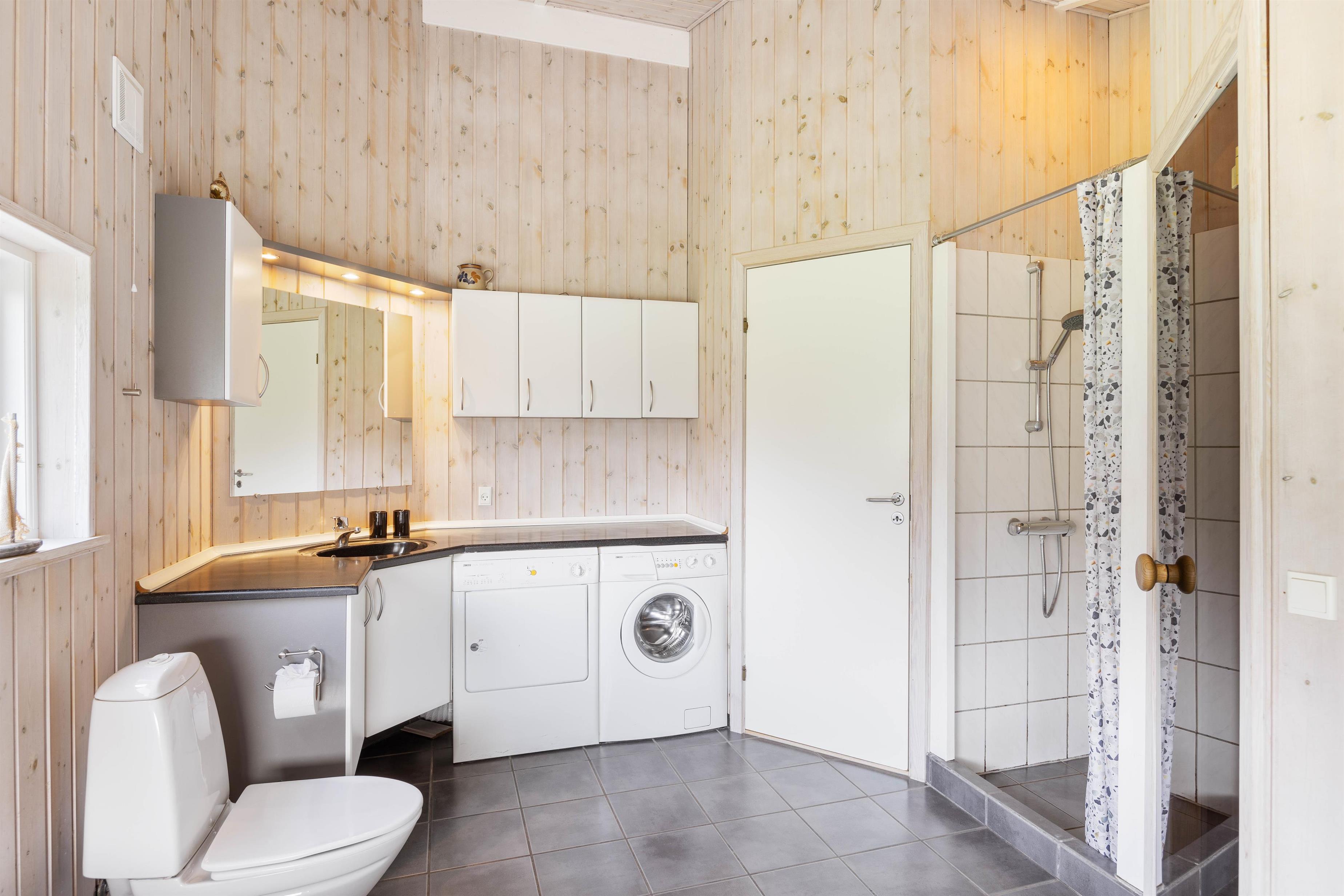 På det store badeværelse er der også en lille wellness-afdeling, som I helt sikkert vil blive glade for. Det lækre spabad står klar til at forkæle jer med det varme boblende vand, der kan få selv de fladeste batterier ladt op igen. Efterfølgende kan I sætte jer ind i den varme sauna, hvor I kan blive tørret og varmet lidt ekstra igennem.