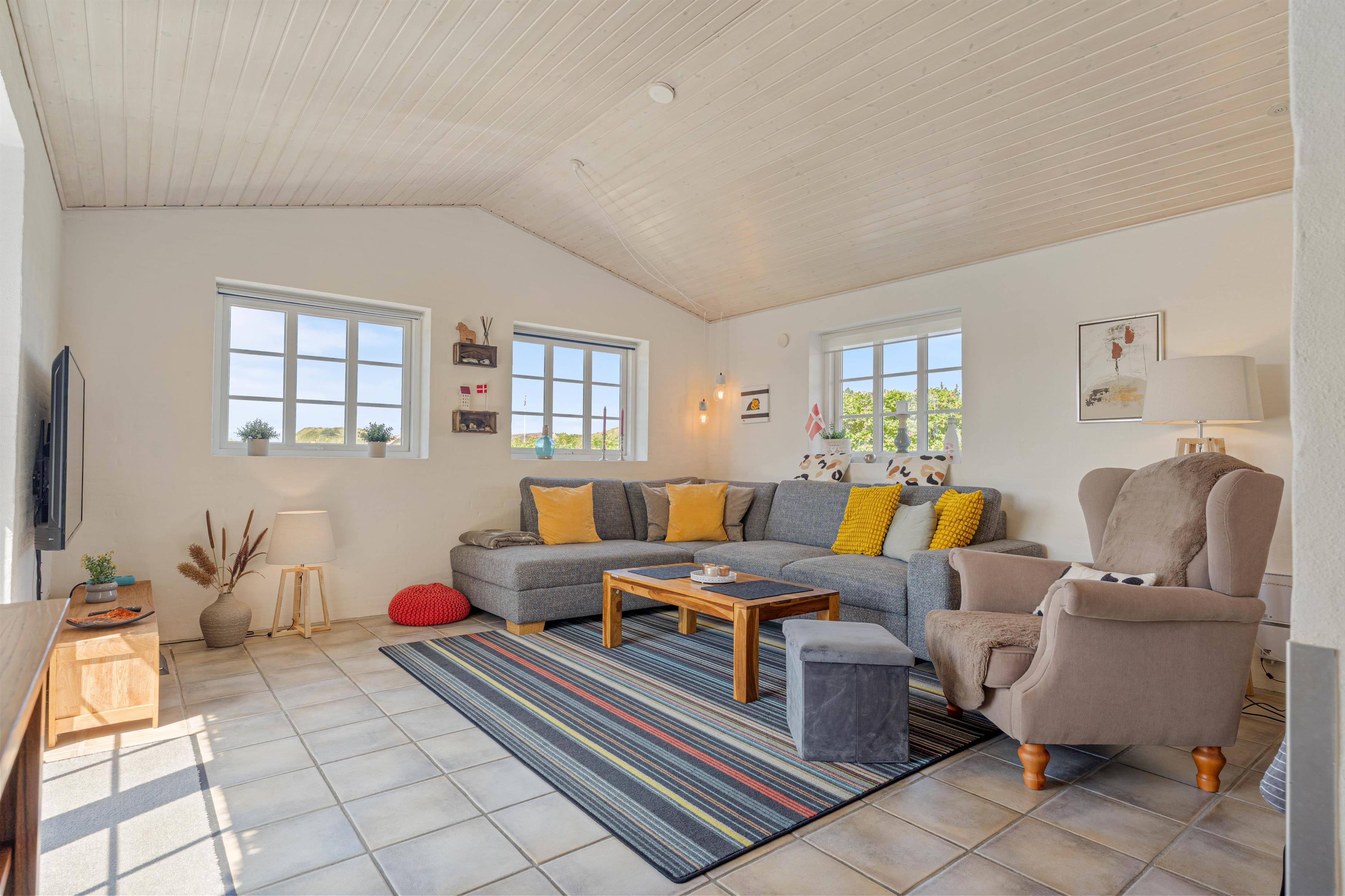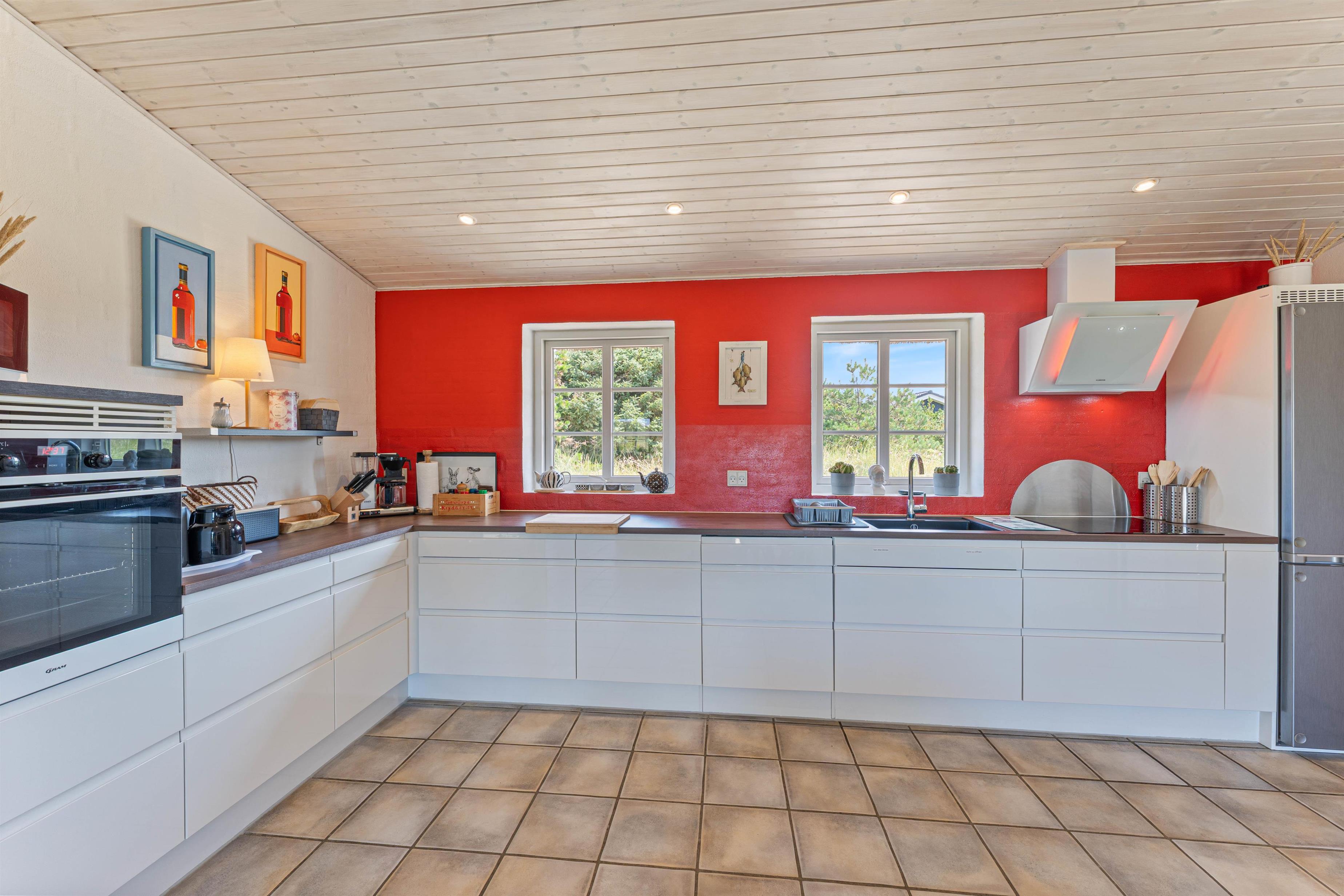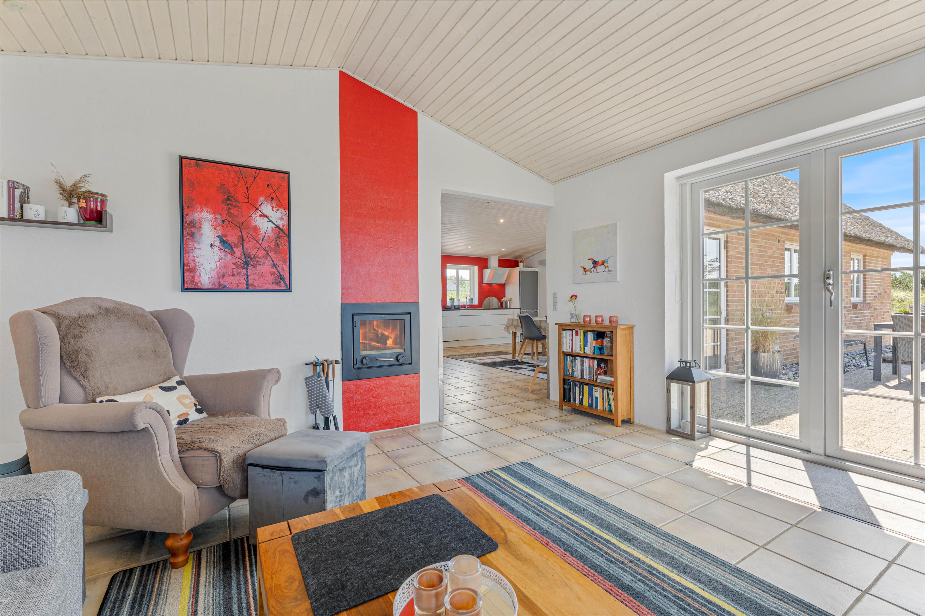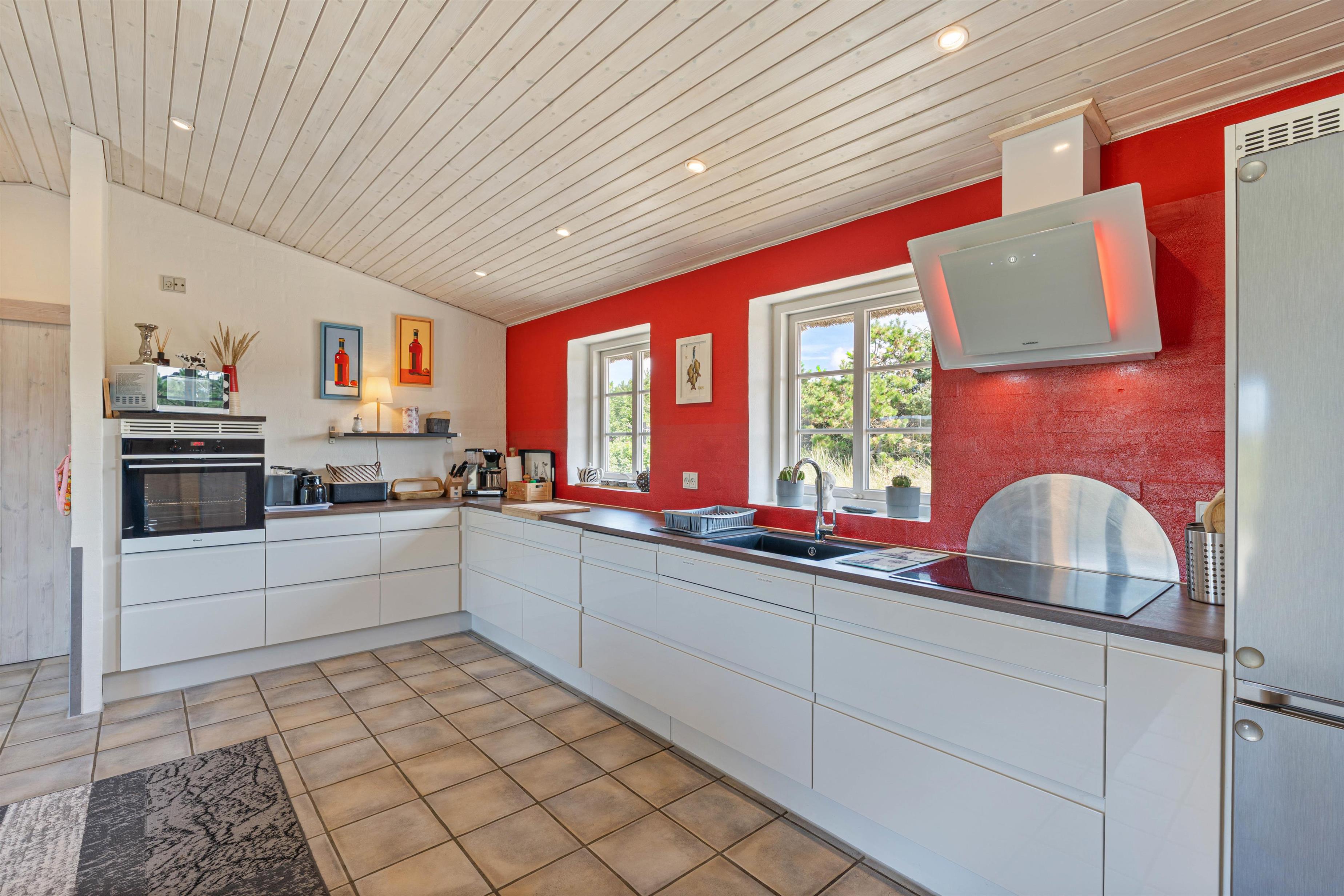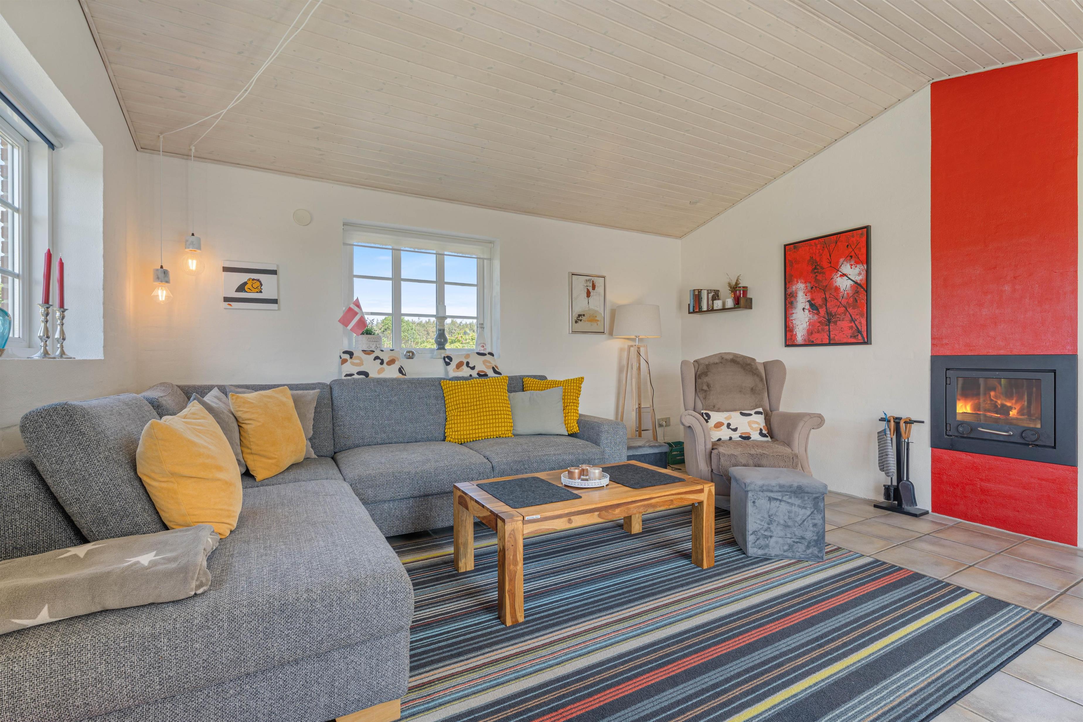 Sommerhuset på Lyngvejen 118 er en klassisk bygning på vestkysten med det charmerende stråtag og den indbydende indretning. Med et veludstyret køkken kombineret med spise- og opholdsstue kan I lave et velsmagende måltid i det funktionelle køkken med både opvaskemaskine, mikroovn, køleskab og fryser. I den hyggelige stue er der en brændeovn, som skaber en afslappende atmosfære. Derudover er der gulvvarme, som sørger for at holde en rar temperatur i sommerhuset.