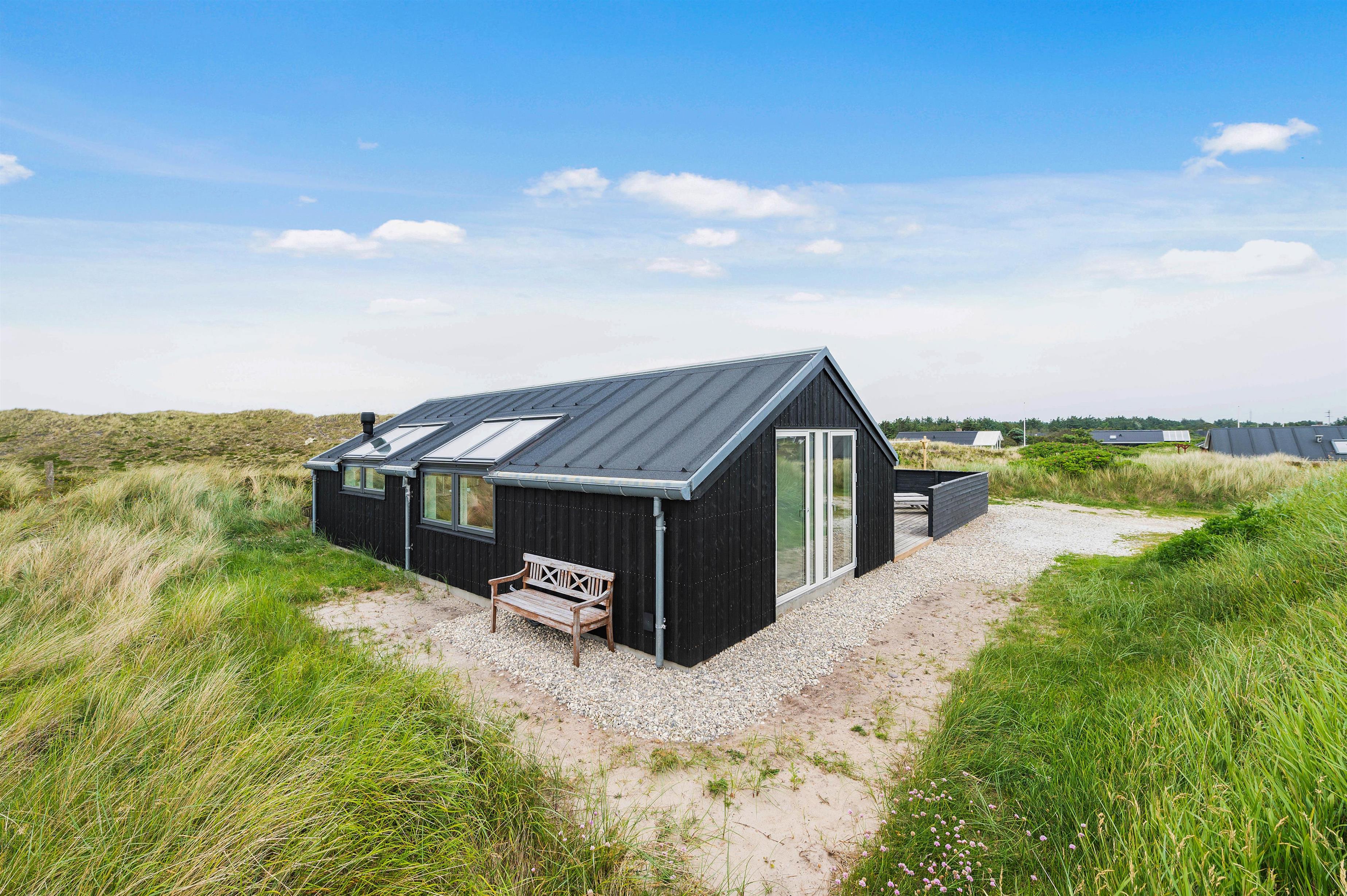 Drømmer I om en luksusferie på vestkysten, hvor I kigger lige ud i marehalmen, mens I hører bølgebrus fra terrassen? Så er dette femstjernede feriehus på Havklitvej 113 bestemt værd at se nærmere på! Dette lækre feriehus fra 2021 byder blandt andet på dejlige terrasser samt en sauna med et stort vinduesparti, hvorfra I kigger direkte ud i klitlandskabet og den vestjyske natur. Beliggenheden er helt i top på en stor naturgrund, kun 400 meter fra Vesterhavet.