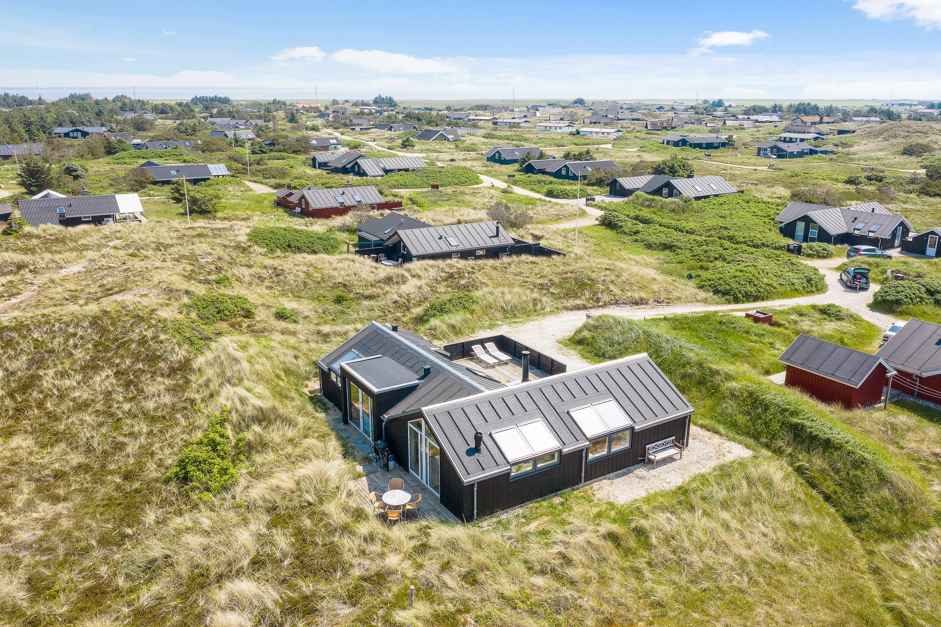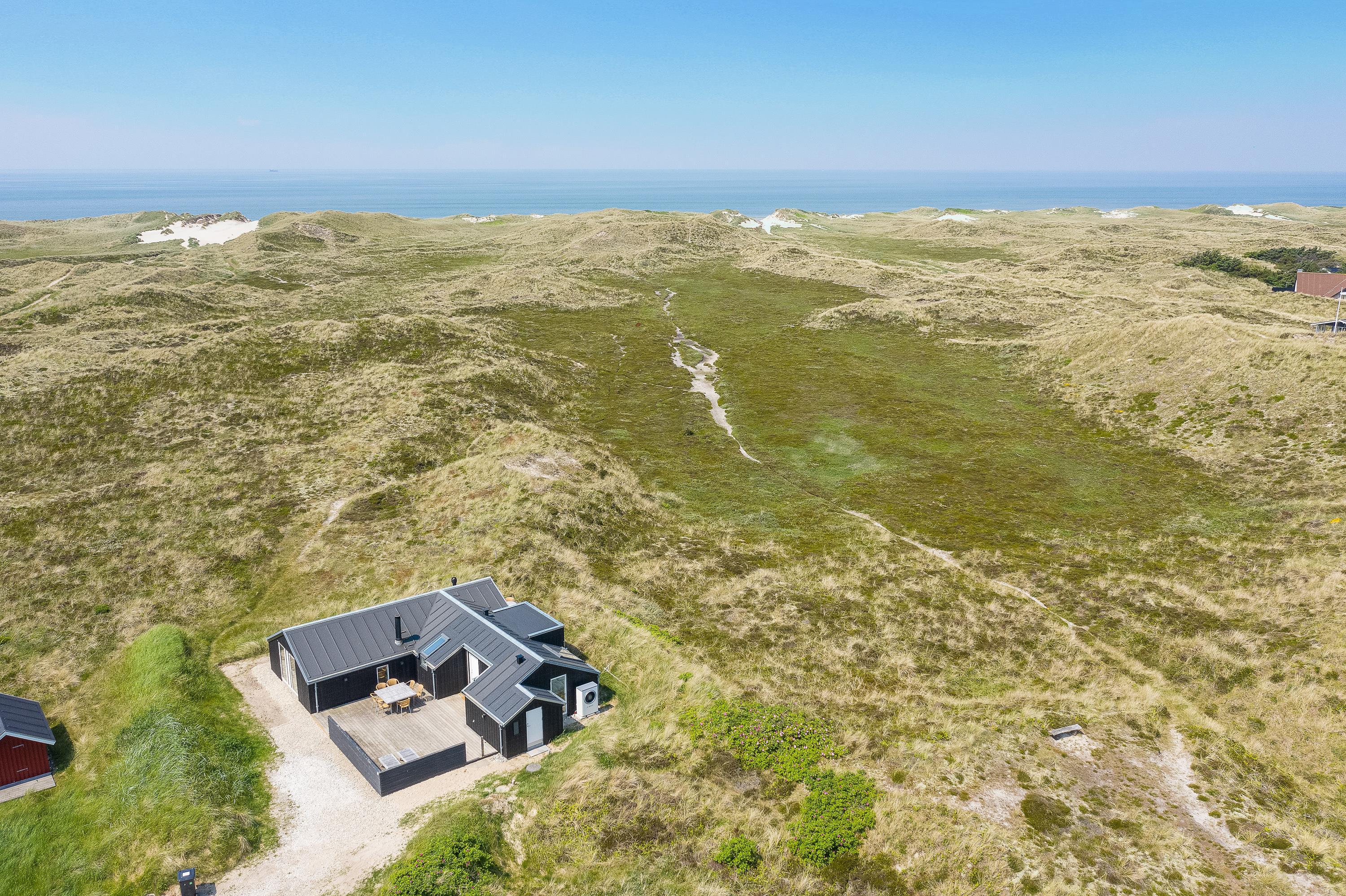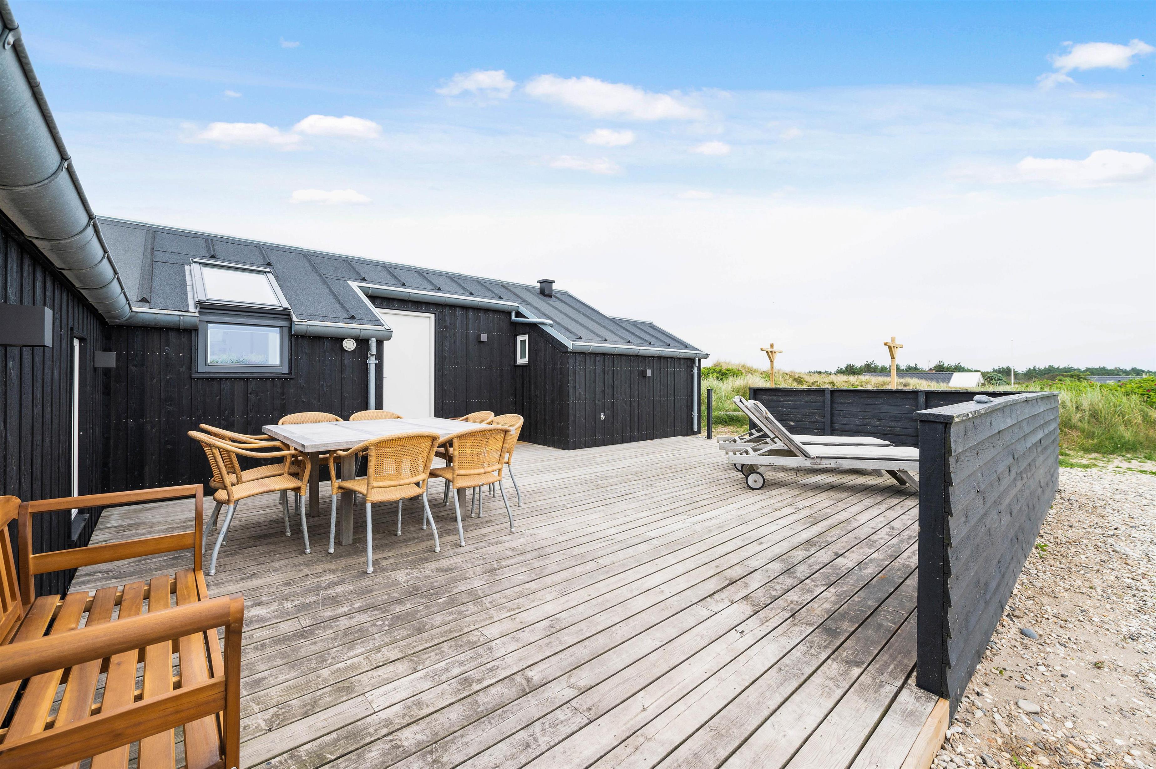 I får en helt fantastisk beliggenhed i første klitrække i Klegod med kun 400 meter fra det brusende Vesterhav. Fra feriehusets terrasser kan I nyde de naturskønne omgivelser, mens I daser i solvognene eller samles rundt om havebordet til en lækker frokost i solen. Der er flere hyggelige lækroge, hvor I kan sidde og nyde en uforstyrret ferie i de smukkeste omgivelser. Der er også en gasgrill til rådighed.