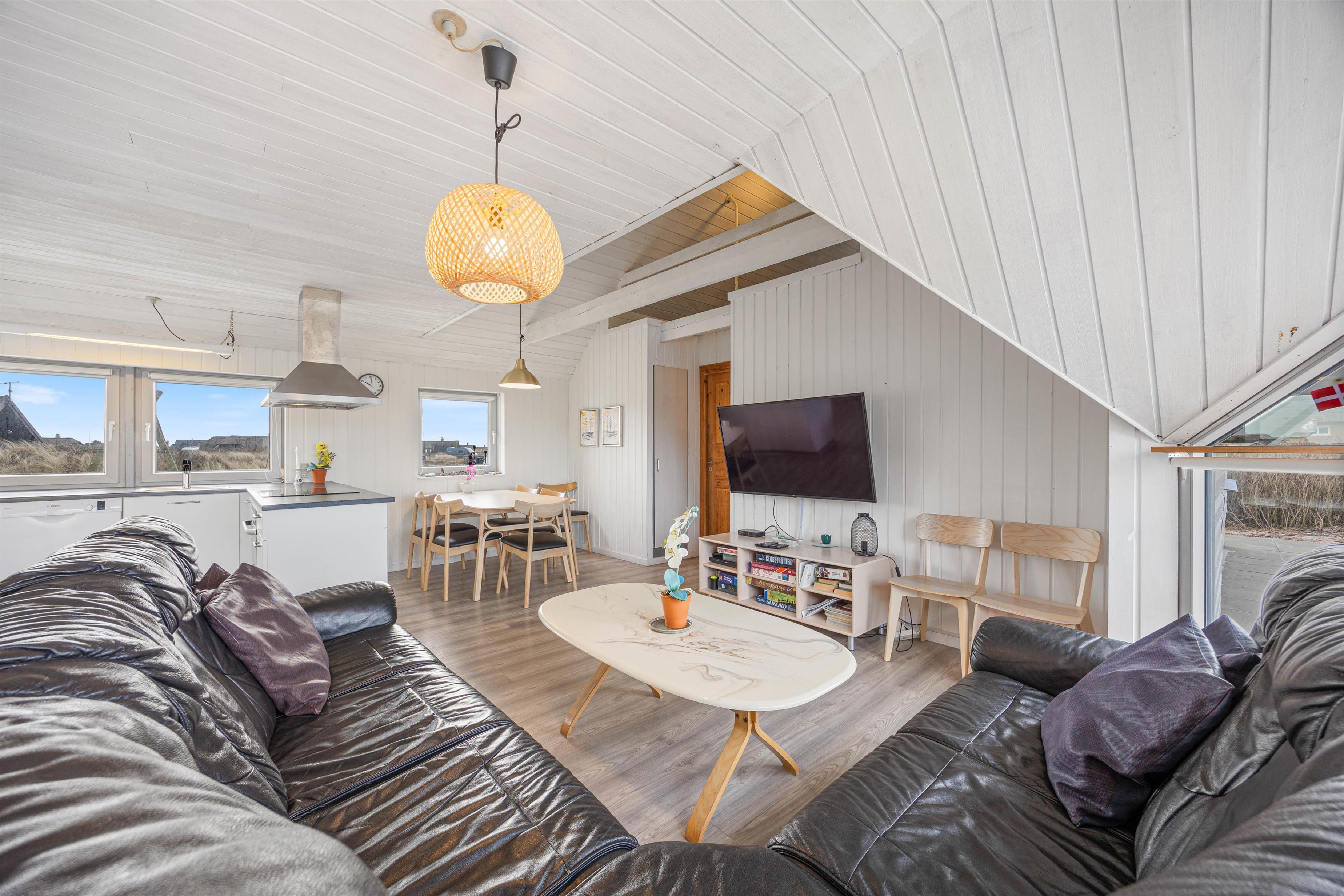 Køkkenet er praktisk indrettet med opvaskemaskine, så tiden bruges sammen – ikke på opvask. Den separate fryser på 60 L giver plads til is og lækkerier til hele opholdet.