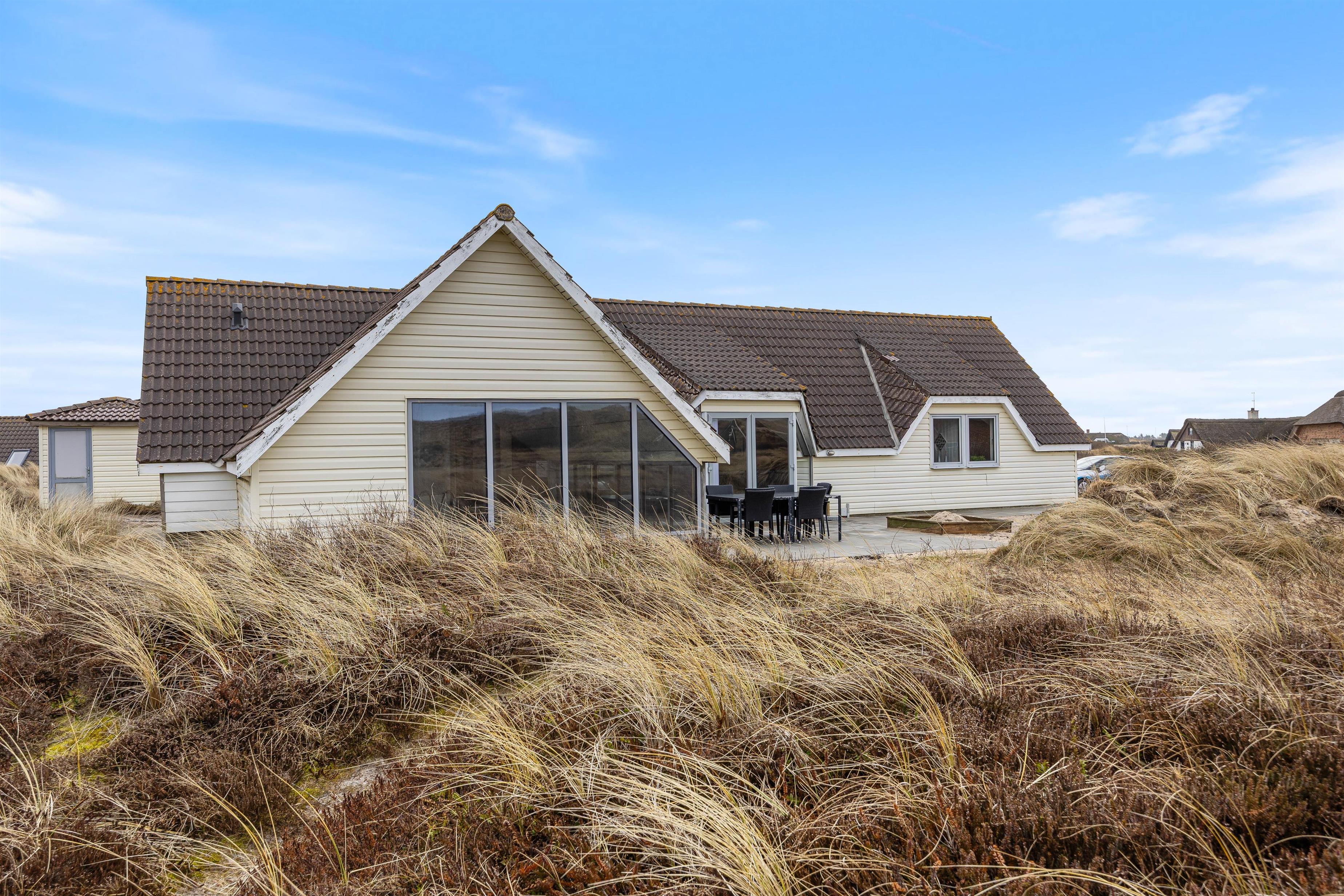 Sommerhuset ligger på en smuk natur- og klitgrund, hvor I kan mærke naturen helt tæt på. På den åbne terrasse kan I nyde solen, udsigten og lange måltider under åben himmel. Tænd op i grillen, dæk op ved havemøblerne og lad sommeraftenen strække sig, mens snakken går. For børnene er der en gynge, der hurtigt bliver et samlingspunkt for leg.