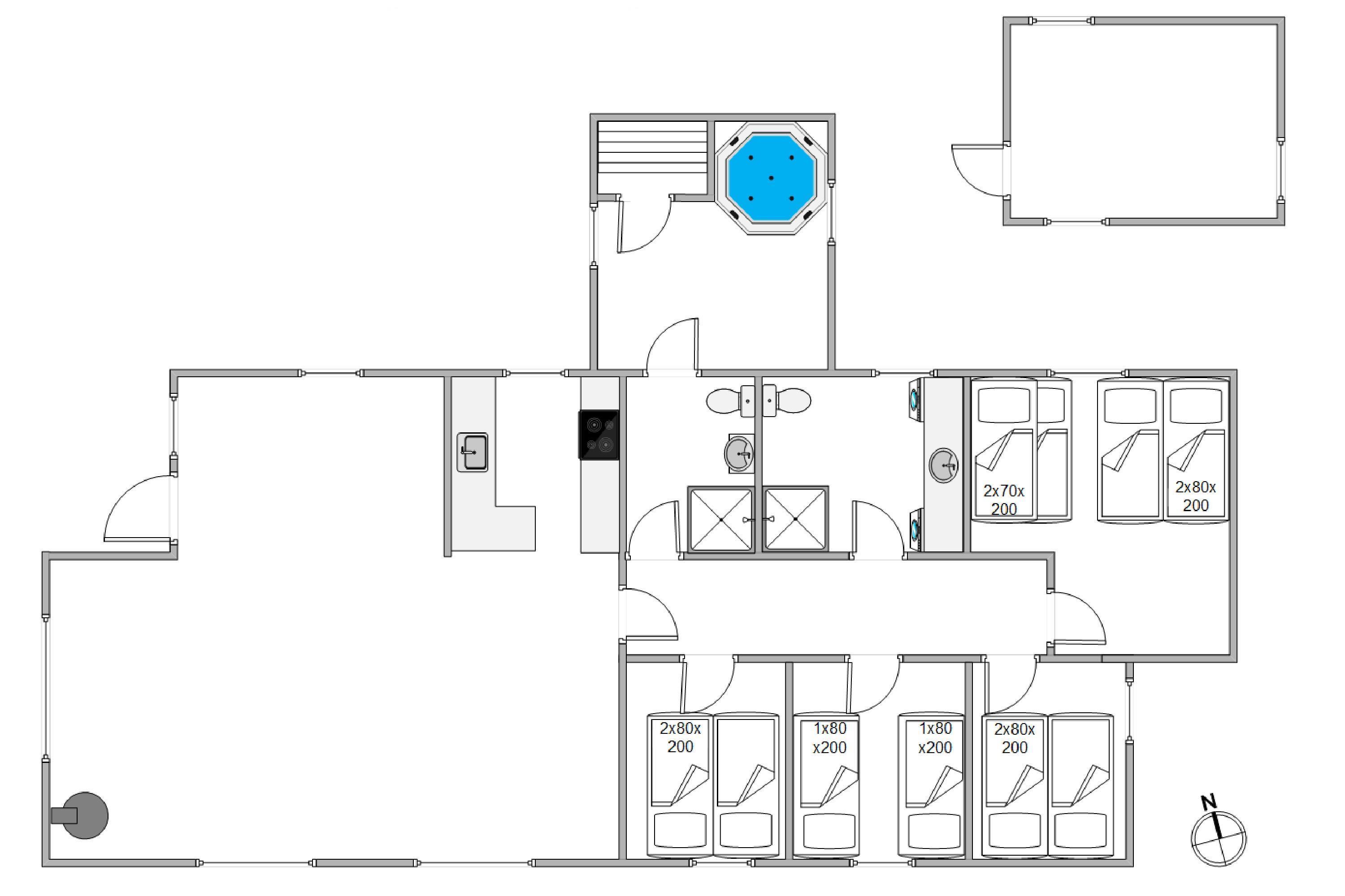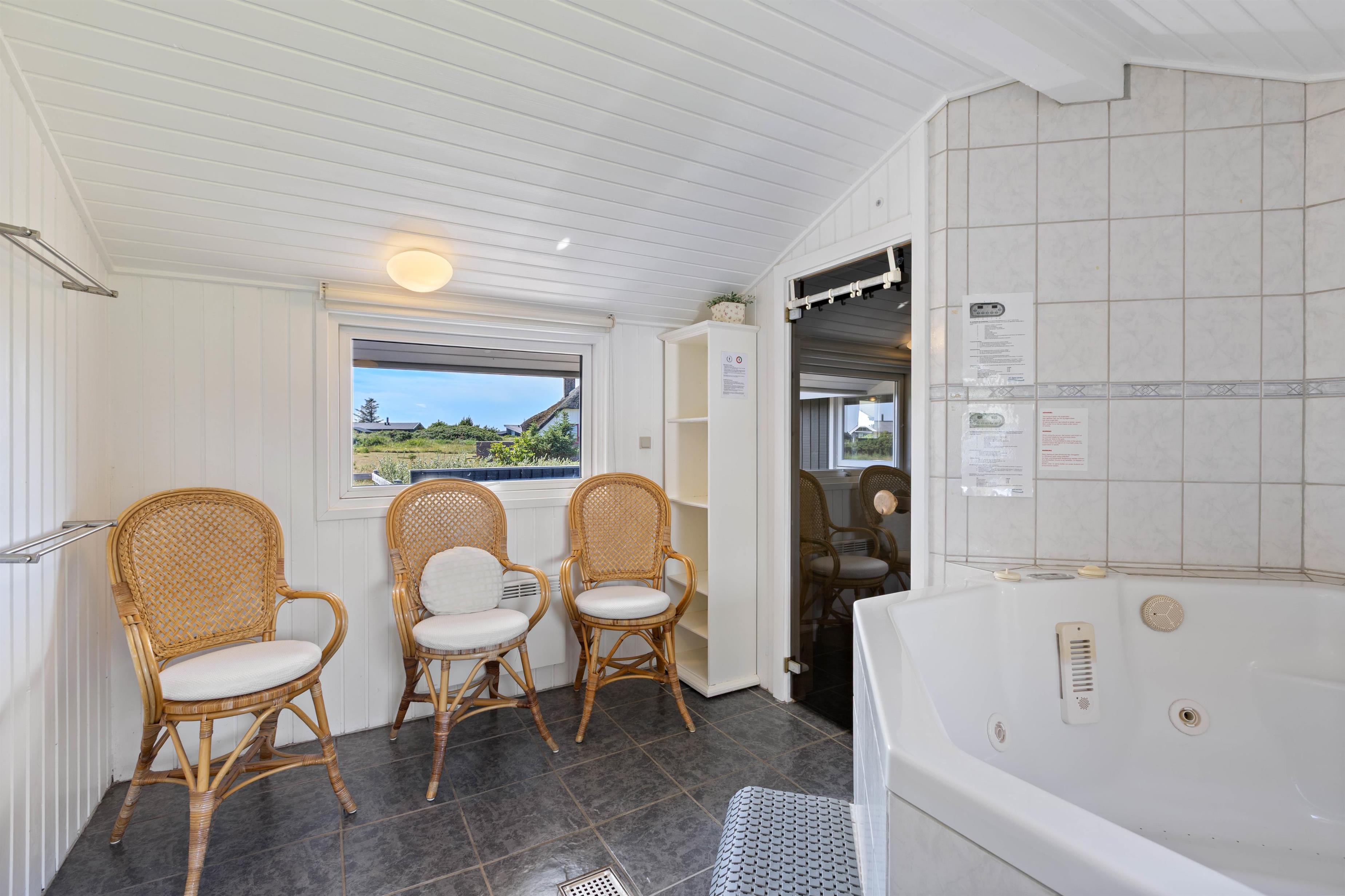 Blandt sommerhusets faciliteter finder I helt sikkert noget for enhver smag. Det store spabad med plads til 6 personer og saunaen bliver et sikkert hit blandt de wellnessglade gæster, og mens der bliver slappet af i varmen, kan de aktive familiemedlemmer slå sig løs i aktivitetsrummet i annekset, der både indeholder bordfodbold, airhockey og flere fitnessmaskiner.