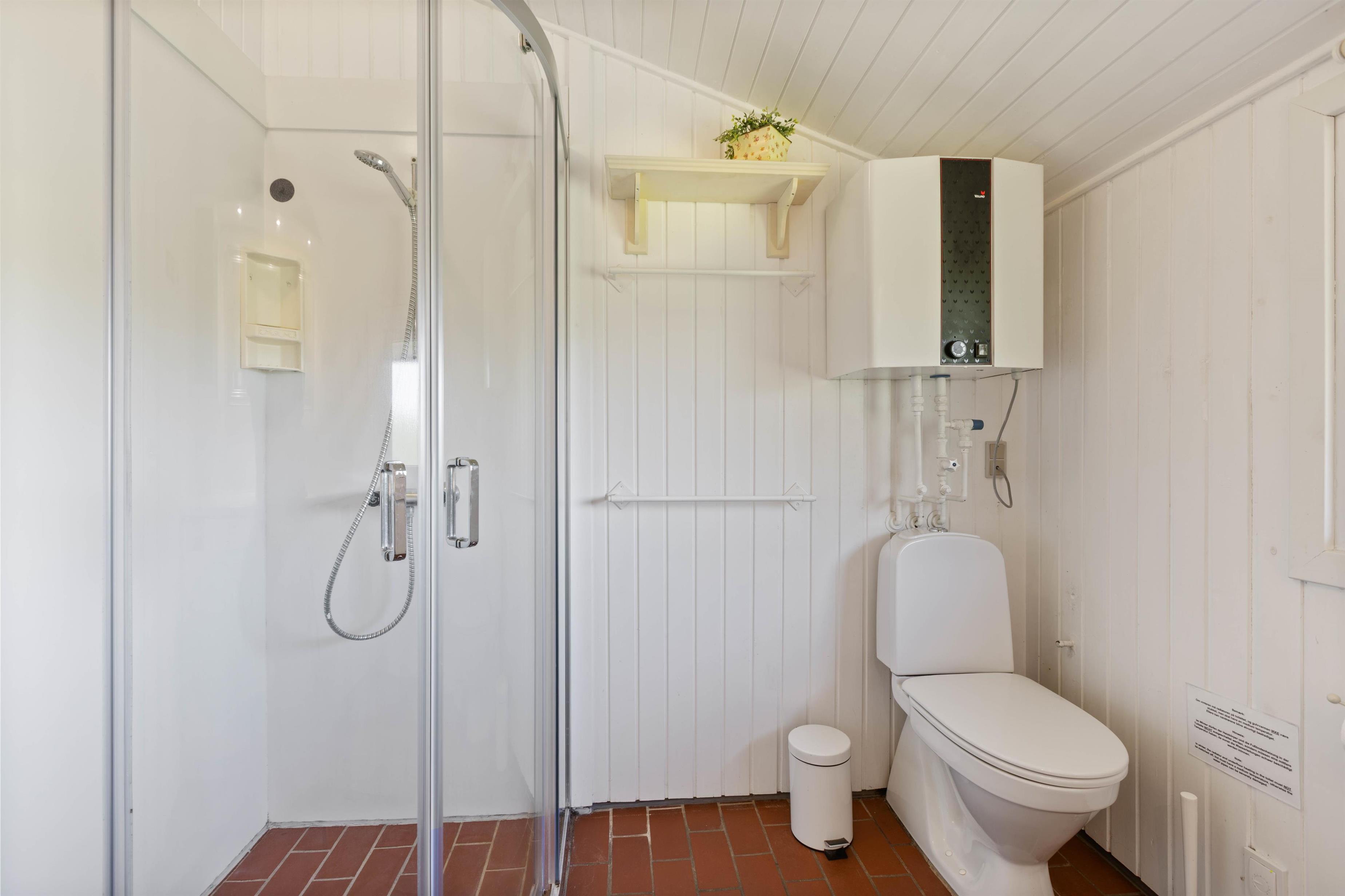 Det charmerende træsommerhus er i 2018 blevet moderniseret, og det er nemt at se, at der i indretningen er lagt vægt på, at I skal føle jer godt tilpas. De lyse vægge og lofter og store vinduespartier skaber en venlig atmosfære i huset, og med en energibesparende varmepumpe er I sikret en behagelig temperatur hele året rundt.