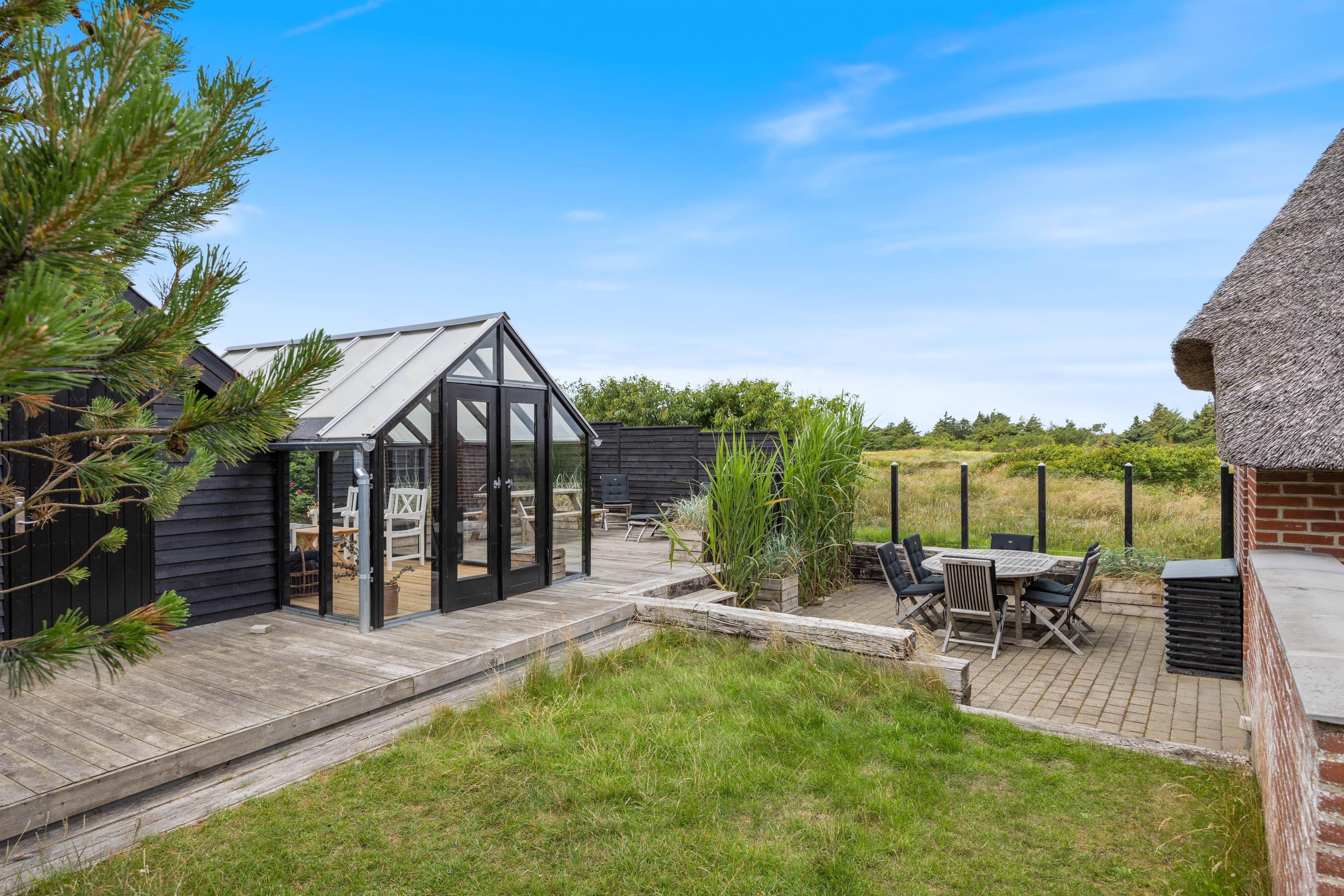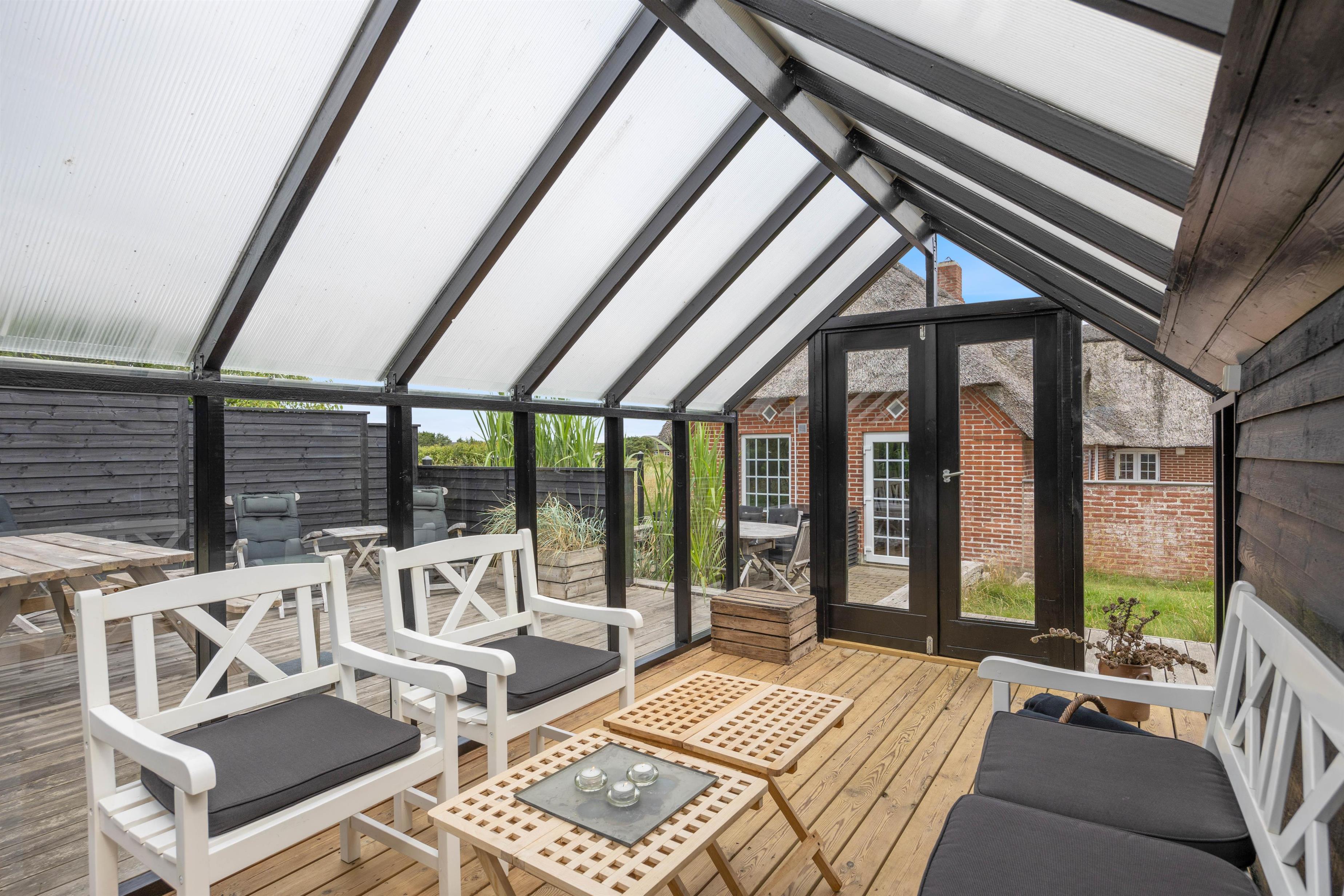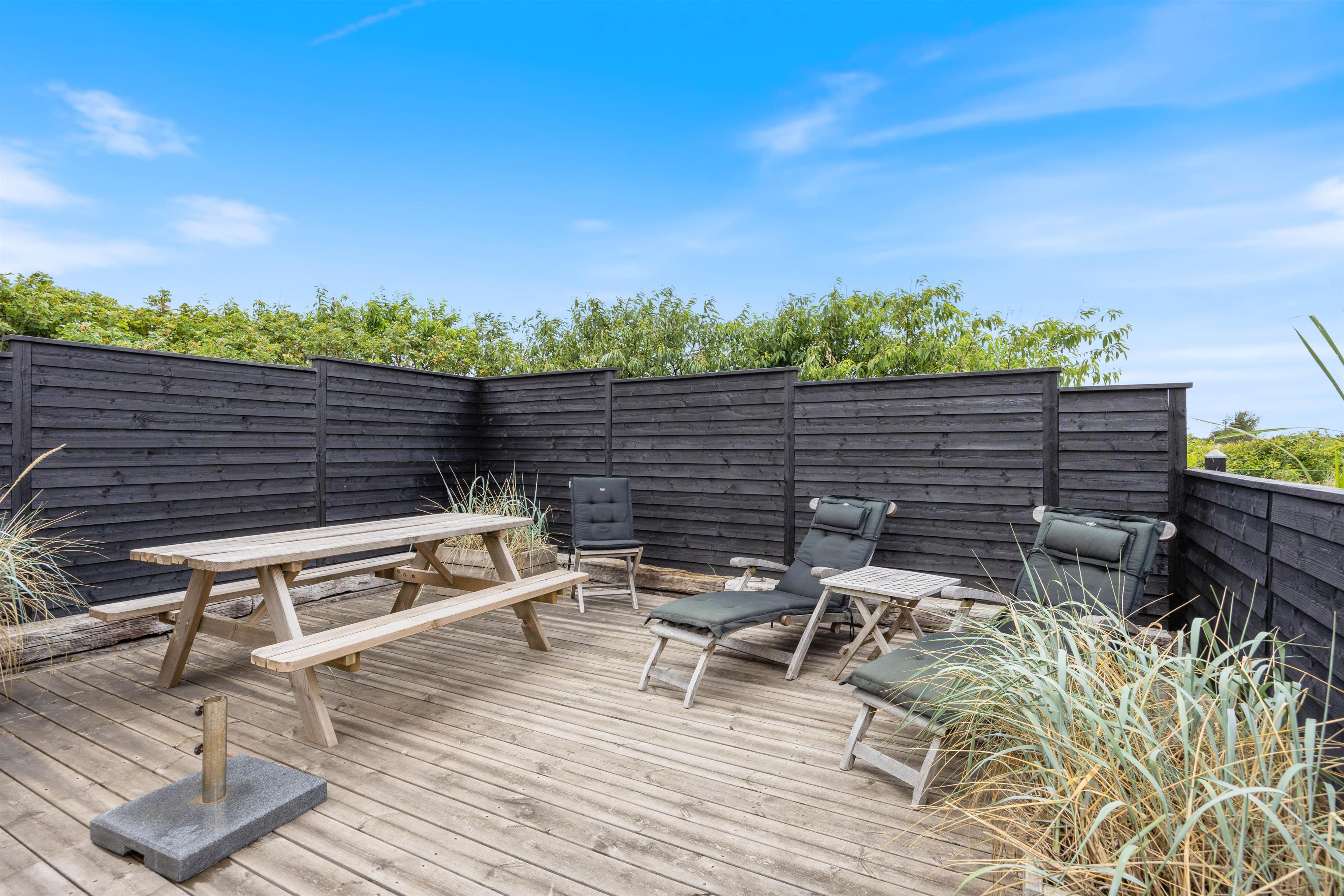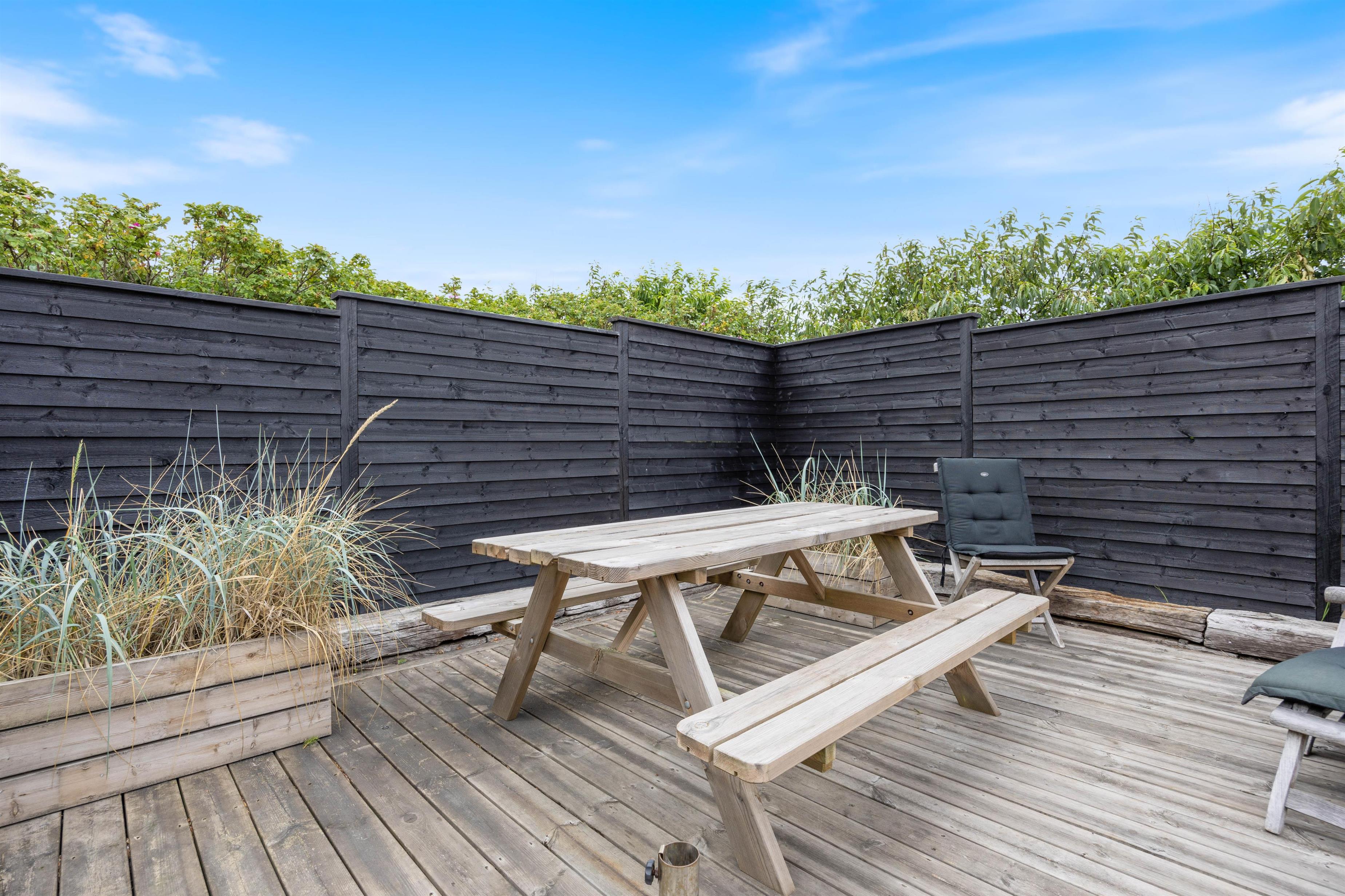 Hyggelige – og næsten lukkede terrasser – mod øst, syd og vest, gør, at I til enhver tid kan finde en solplet, hvor I kan nyde det danske vejr og områdets storslåede natur. Terrasserne indbyder virkelig til skønne aftener, hvor man kan høre havets brusen i baggrunden, mens man f.eks. nyder en grillmiddag og et glas vin. Derudover er der en moderniseret udestue, hvor I kan nyde naturen i alt slags vejr. Udenfor finder I også et ladestik til el-bil, så hvis I kører i en el-bil, har I mulighed for at lade jeres bil under ferien.