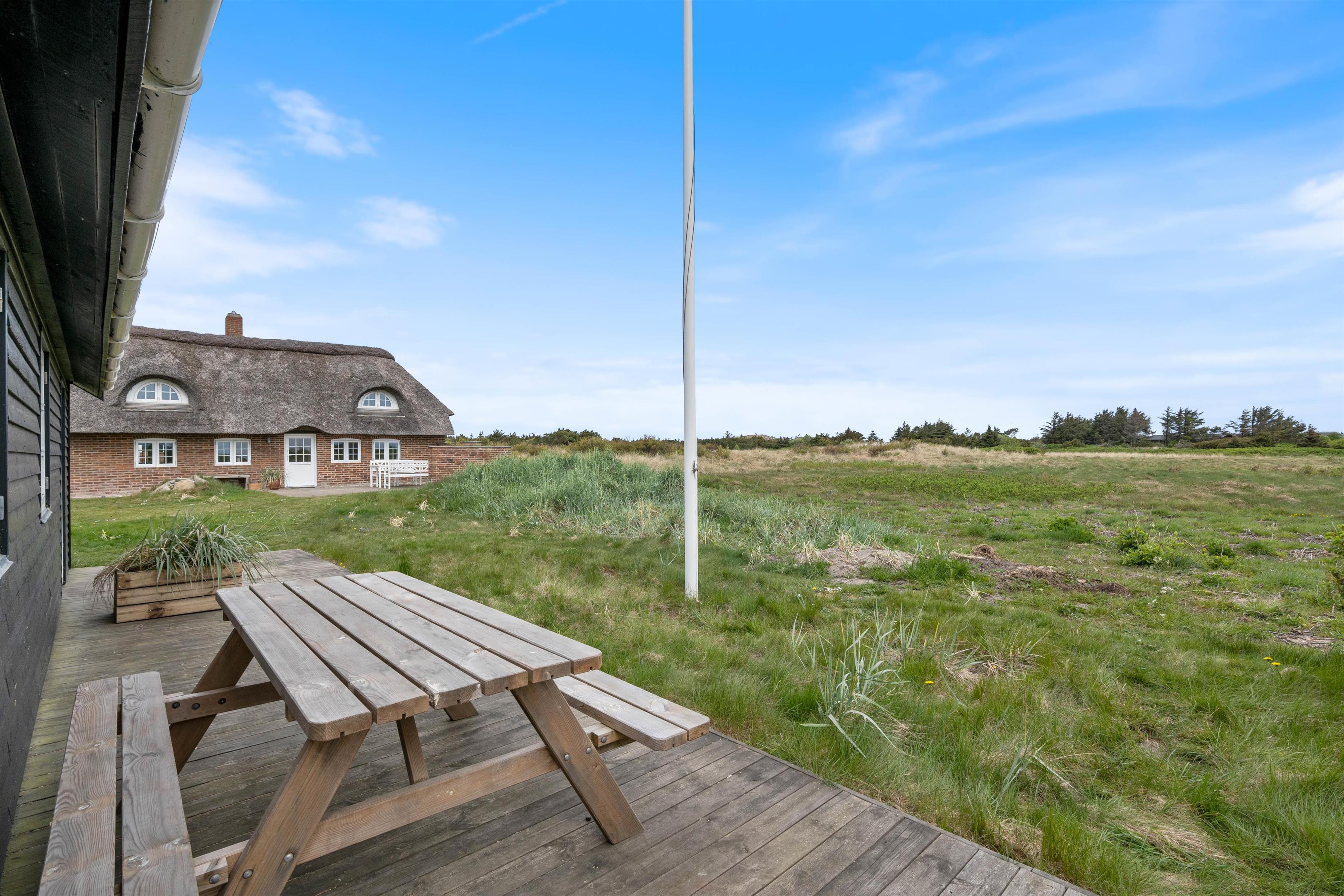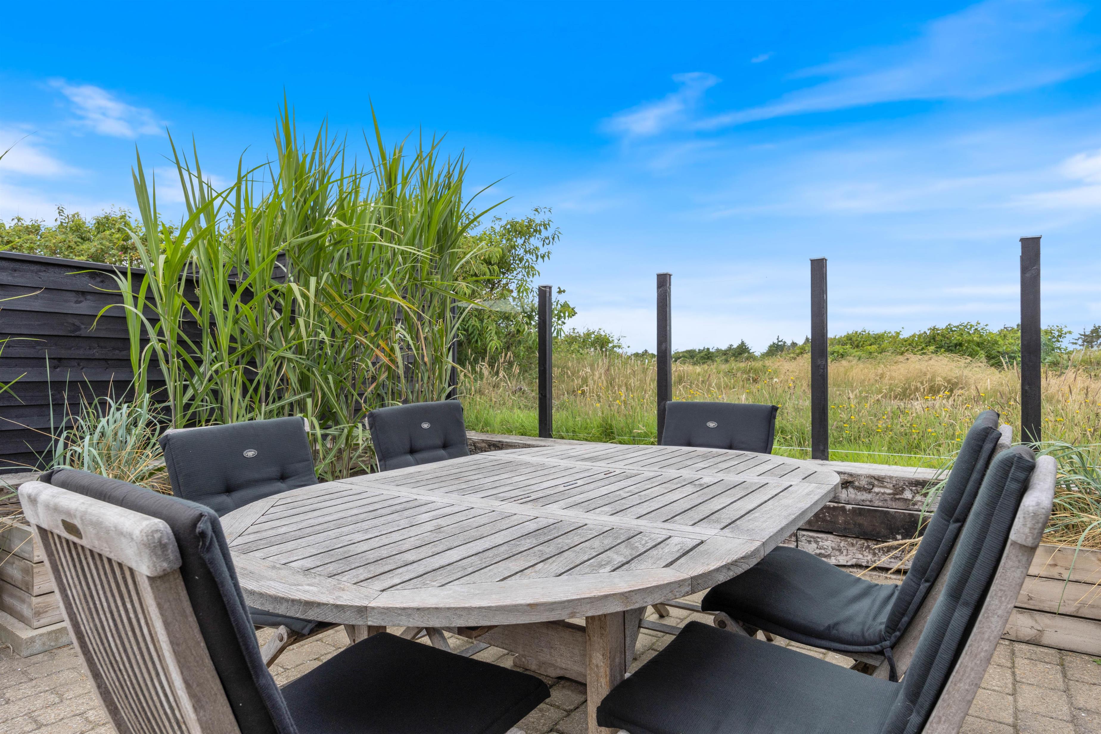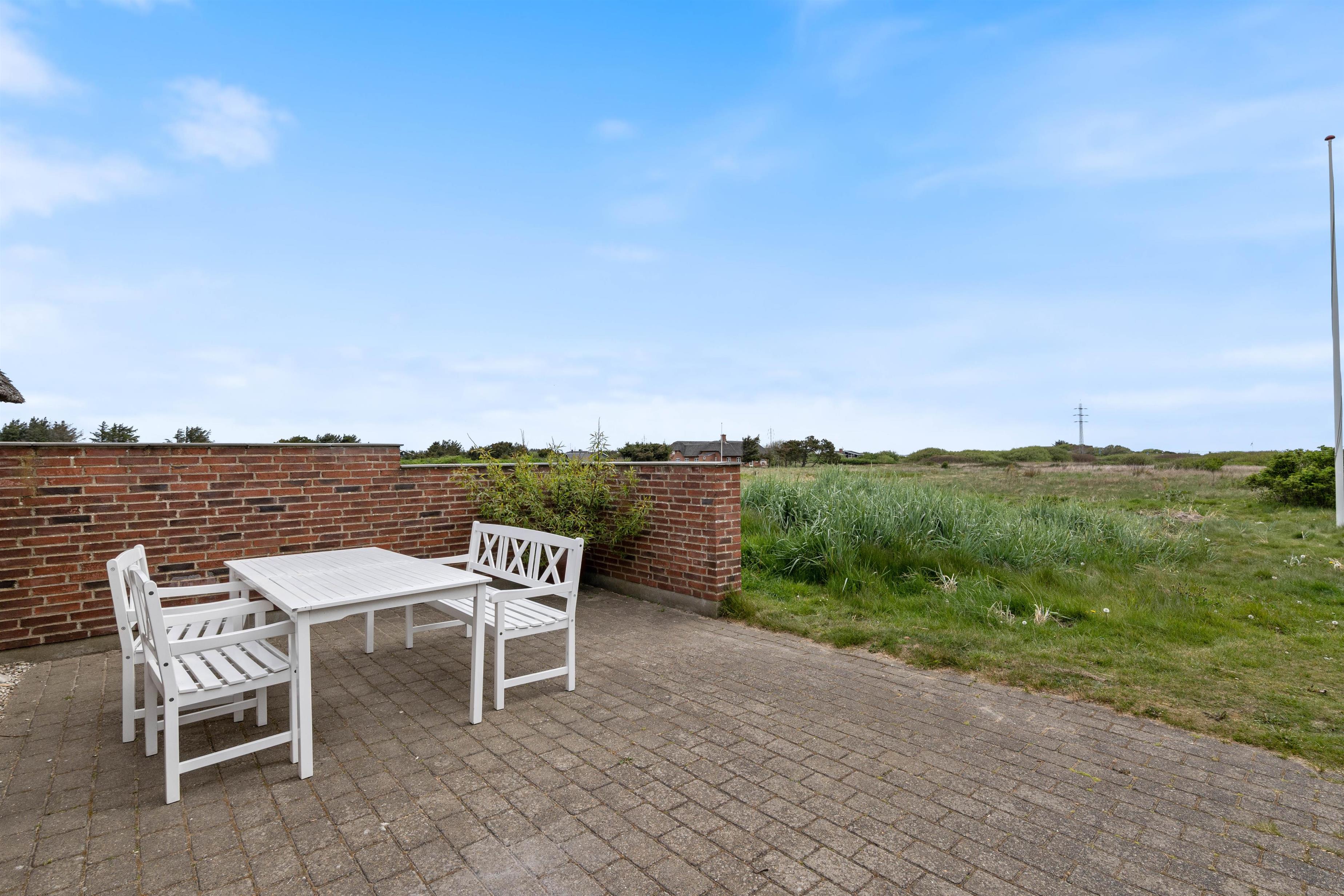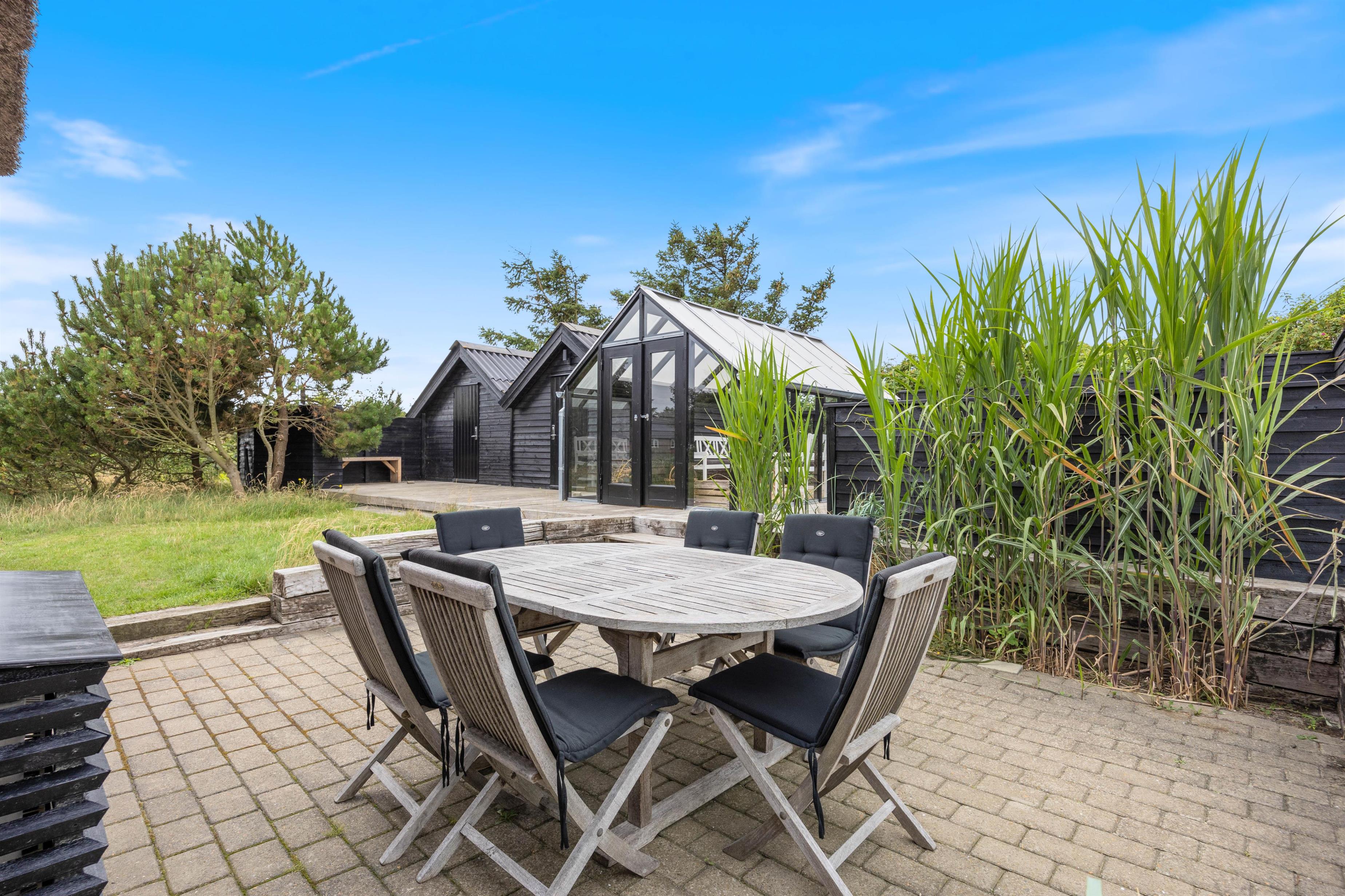 Hyggelige – og næsten lukkede terrasser – mod øst, syd og vest, gør, at I til enhver tid kan finde en solplet, hvor I kan nyde det danske vejr og områdets storslåede natur. Terrasserne indbyder virkelig til skønne aftener, hvor man kan høre havets brusen i baggrunden, mens man f.eks. nyder en grillmiddag og et glas vin. Derudover er der en moderniseret udestue, hvor I kan nyde naturen i alt slags vejr. Udenfor finder I også et ladestik til el-bil, så hvis I kører i en el-bil, har I mulighed for at lade jeres bil under ferien.