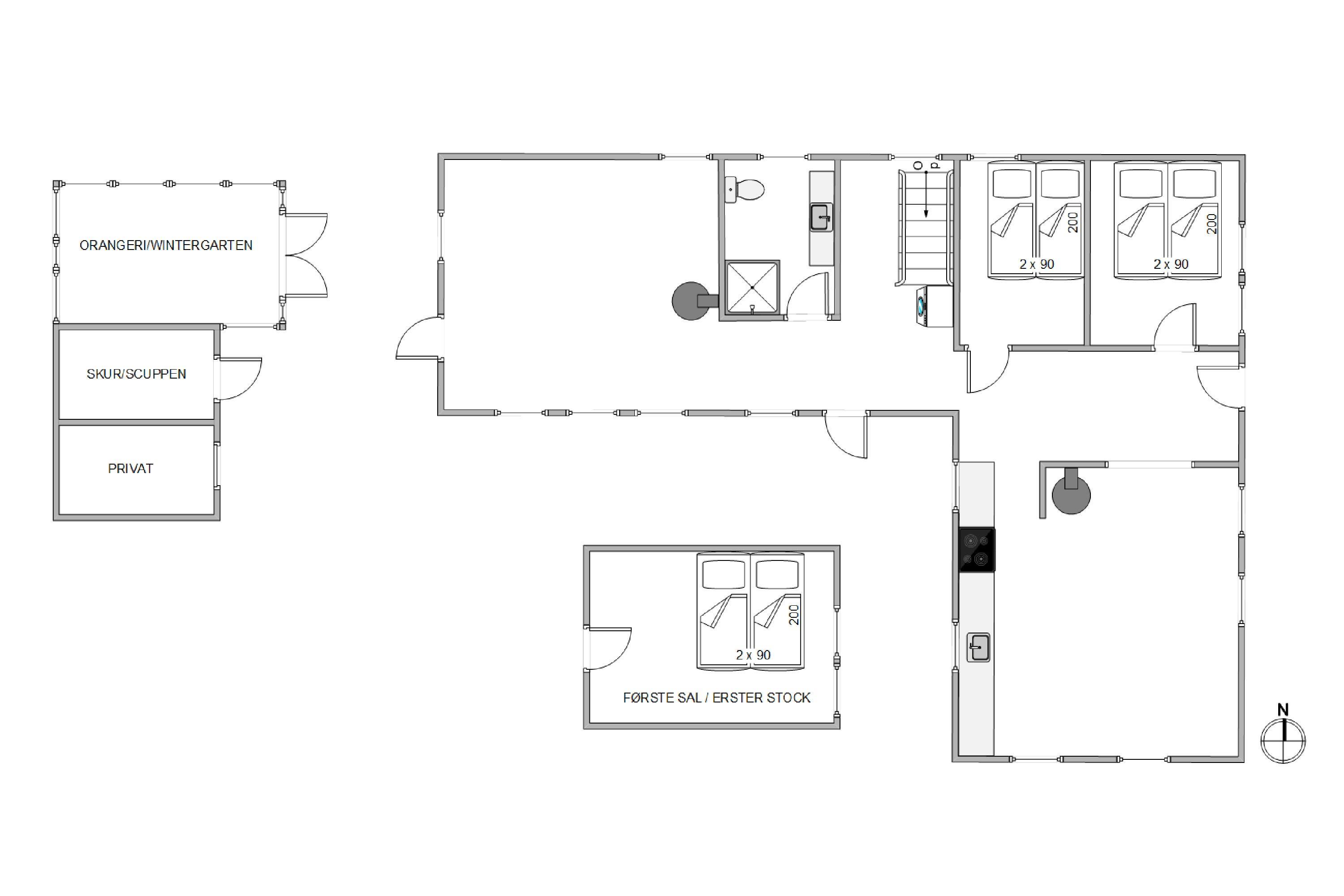1. soverum/sengestørrelserDobbeltseng 2x90x200
