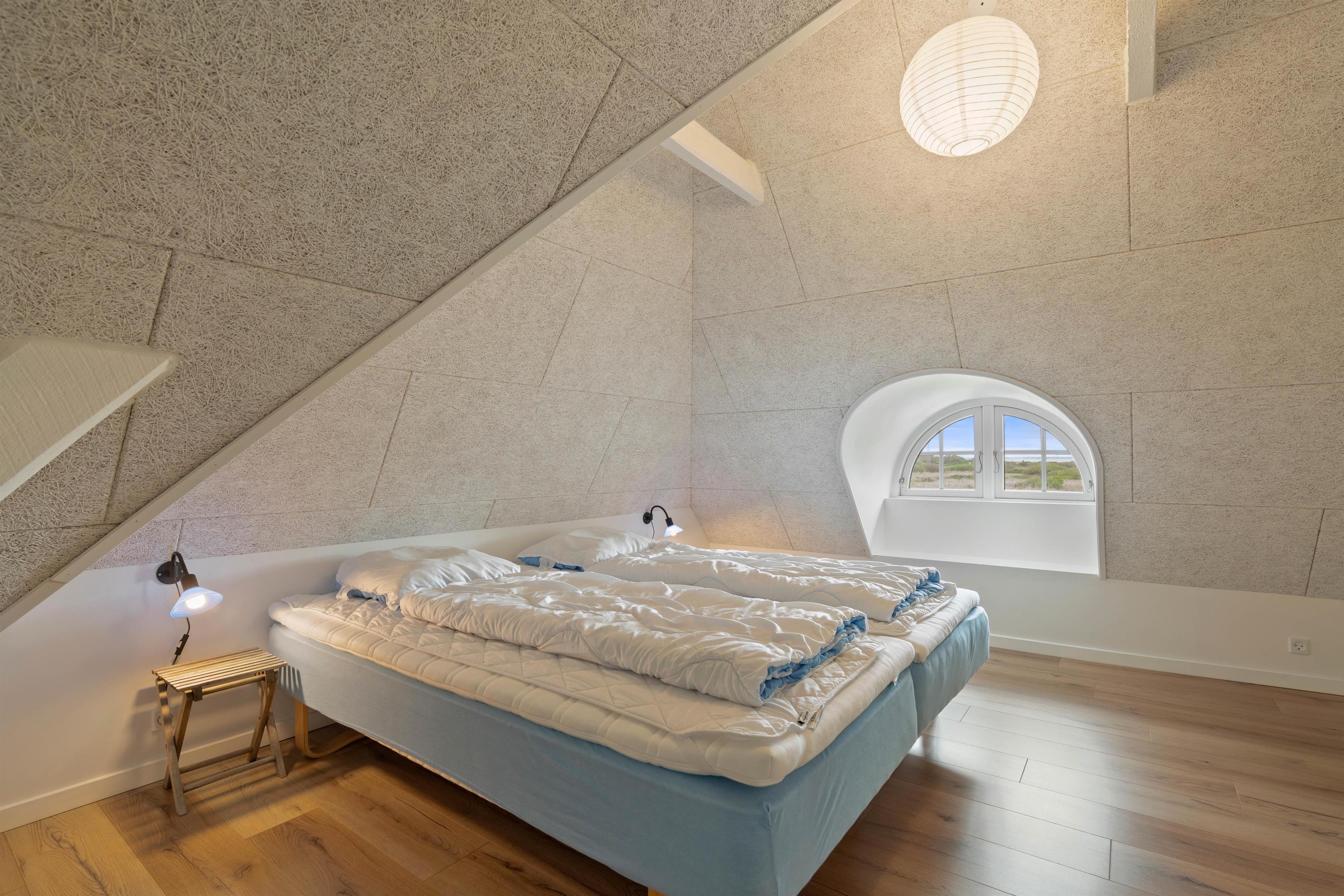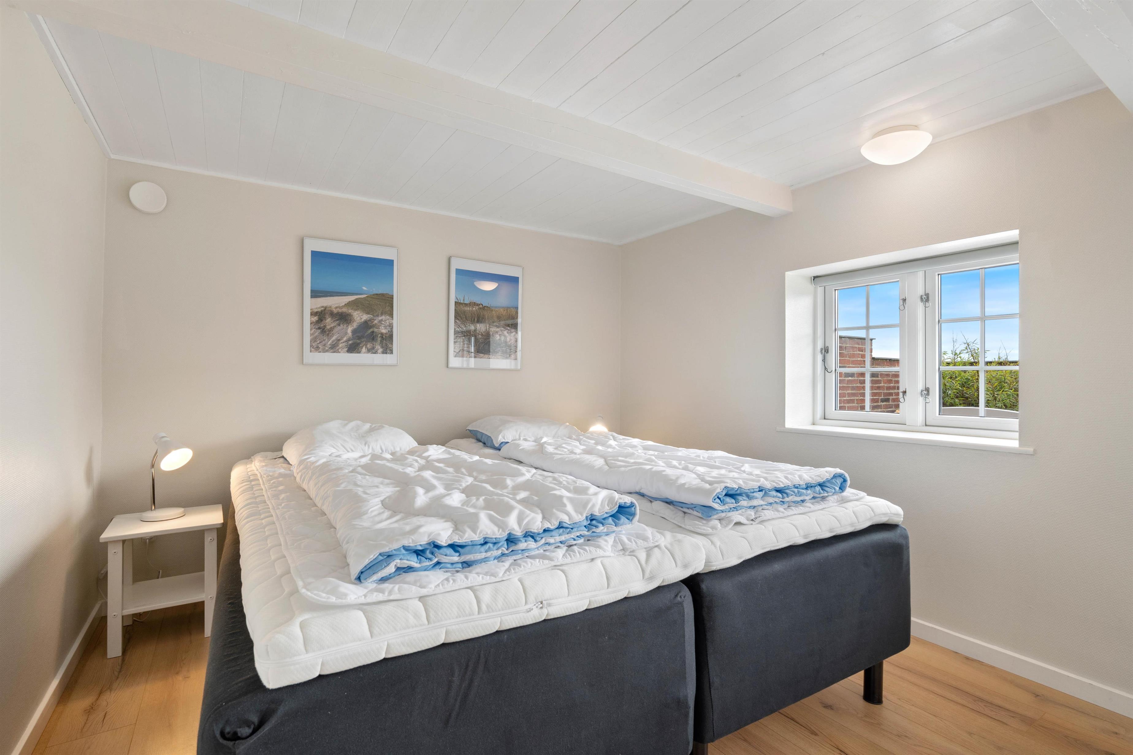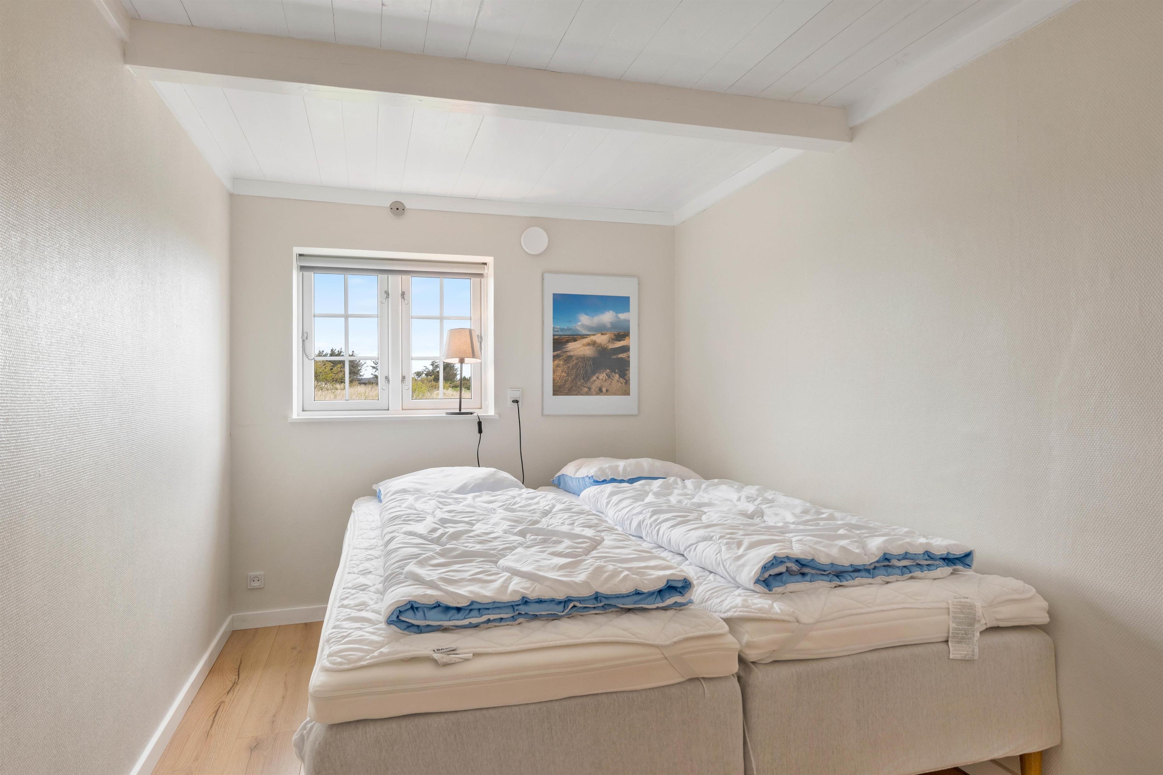 Dette hyggelige sommerhus i Klegod på Fladsbjergvej 14, kan huse 6 personer - fordelt på 3 soverum, alle med dobbeltsenge. De to soveværelser ligger i stueplan og et på 1. sal, hvor udsigten over klitlandskabet er endnu mere fabelagtig. Ydermere er der et dejligt lyst badeværelse.