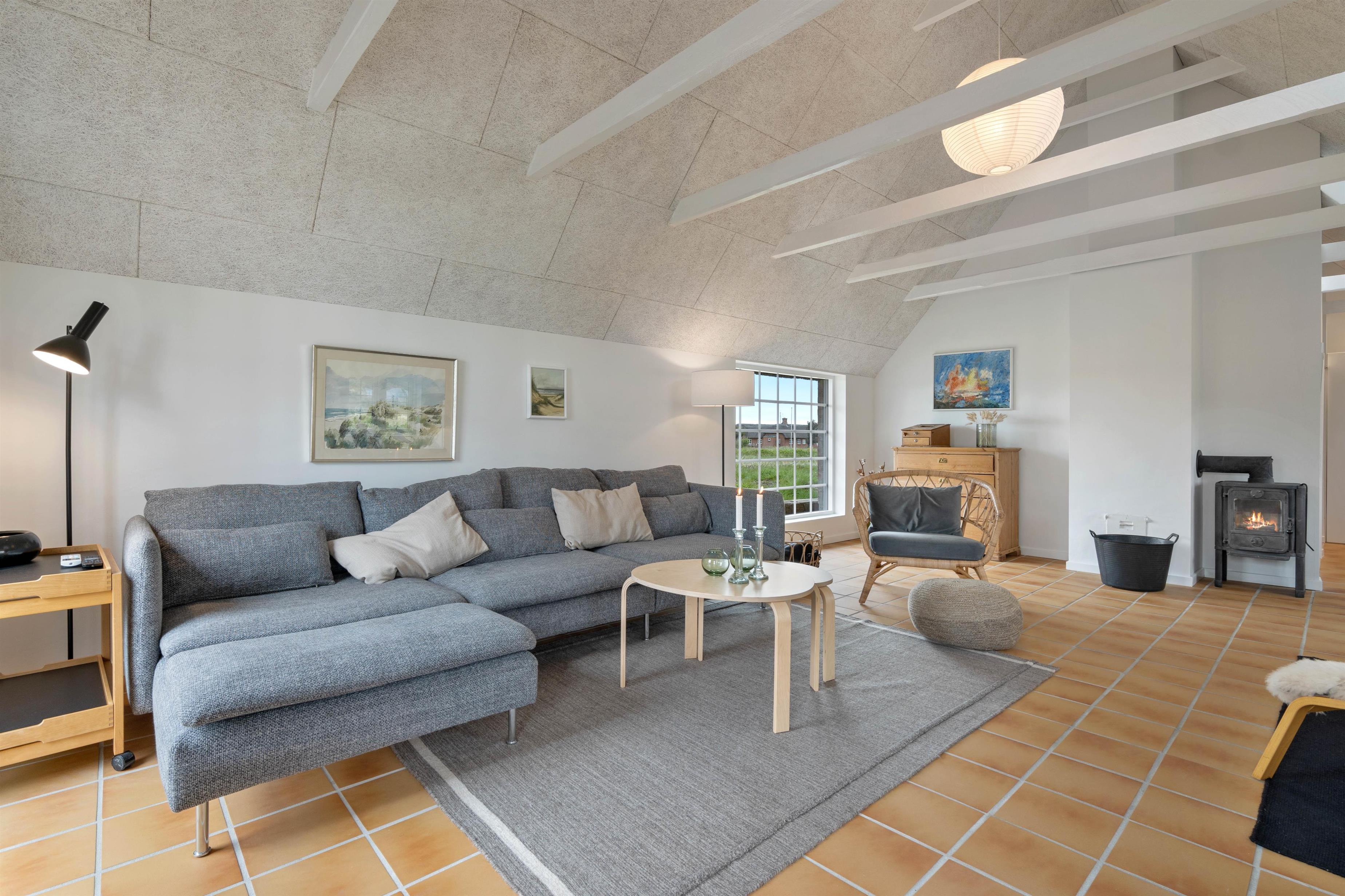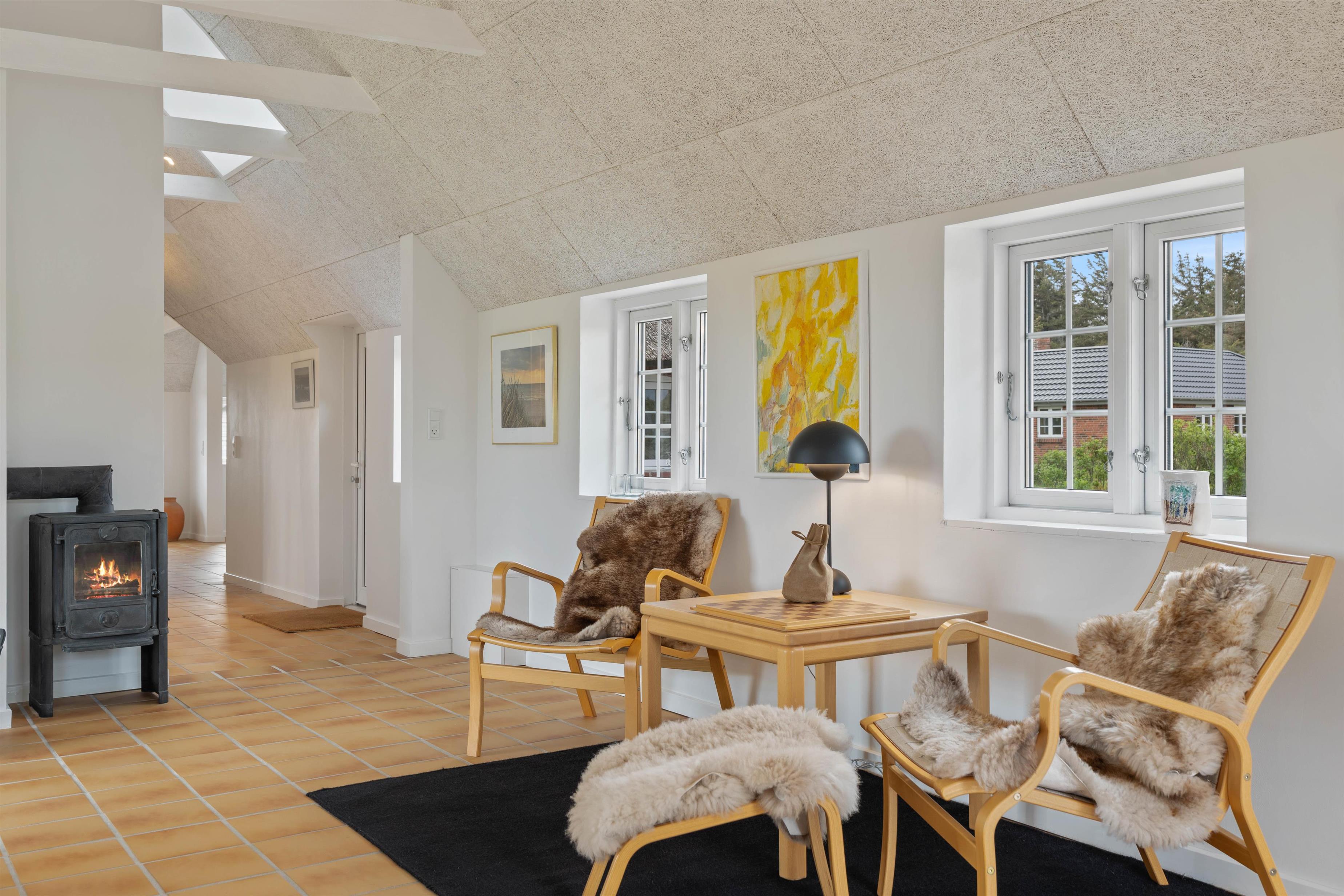 Den store, lyse og hjemlige stue indeholder endnu en brændeovn, hvor man også på koldere dage kan nyde en god bog og en kop kaffe foran den varme og knitrende ild i brændeovnen.