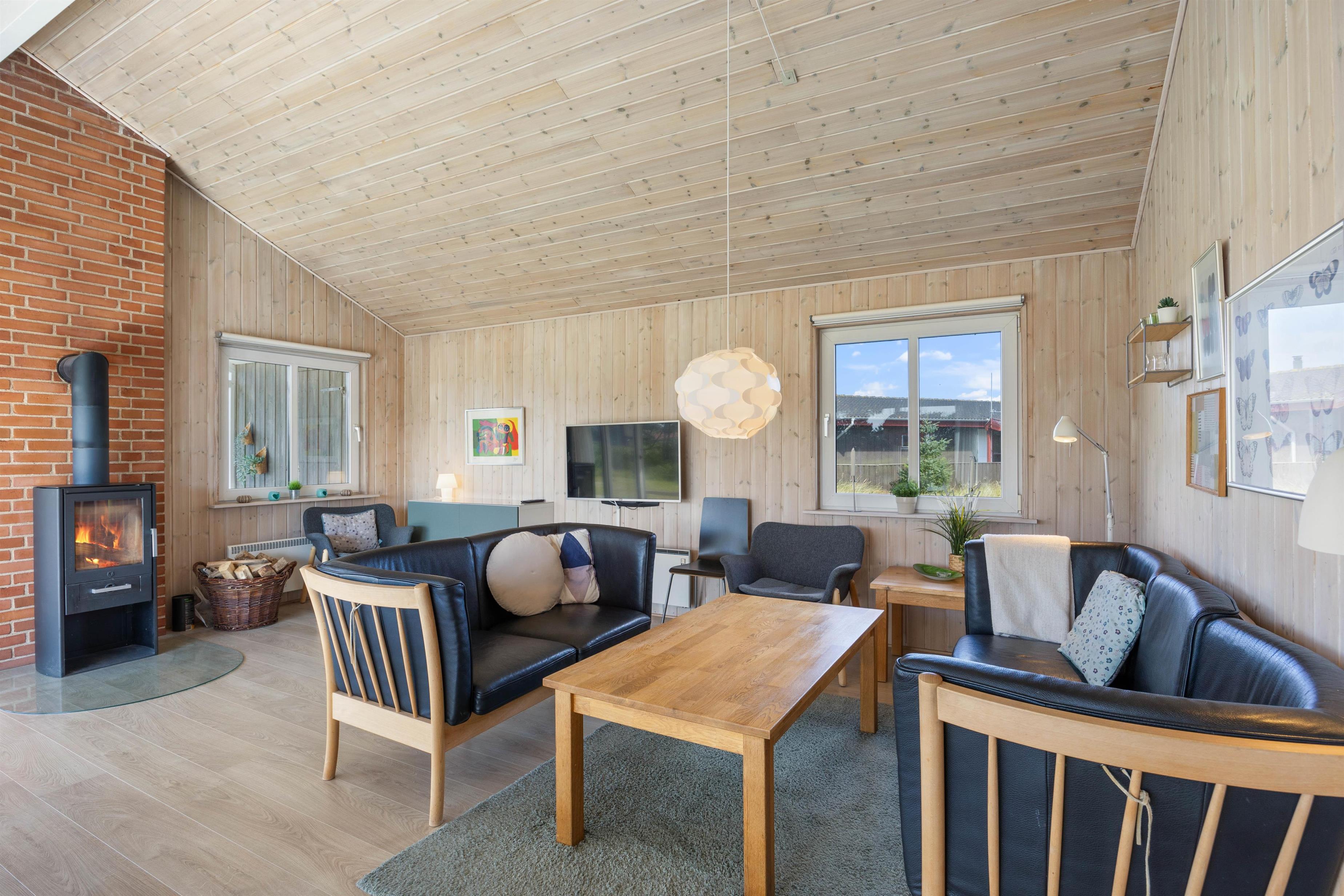 I husets hyggelige stue kan brændeoven danne rammen om familiens hyggestunder, her finder du også TV, DVD og CD-afspiller og naturligvis er der trådløs internet i huset.