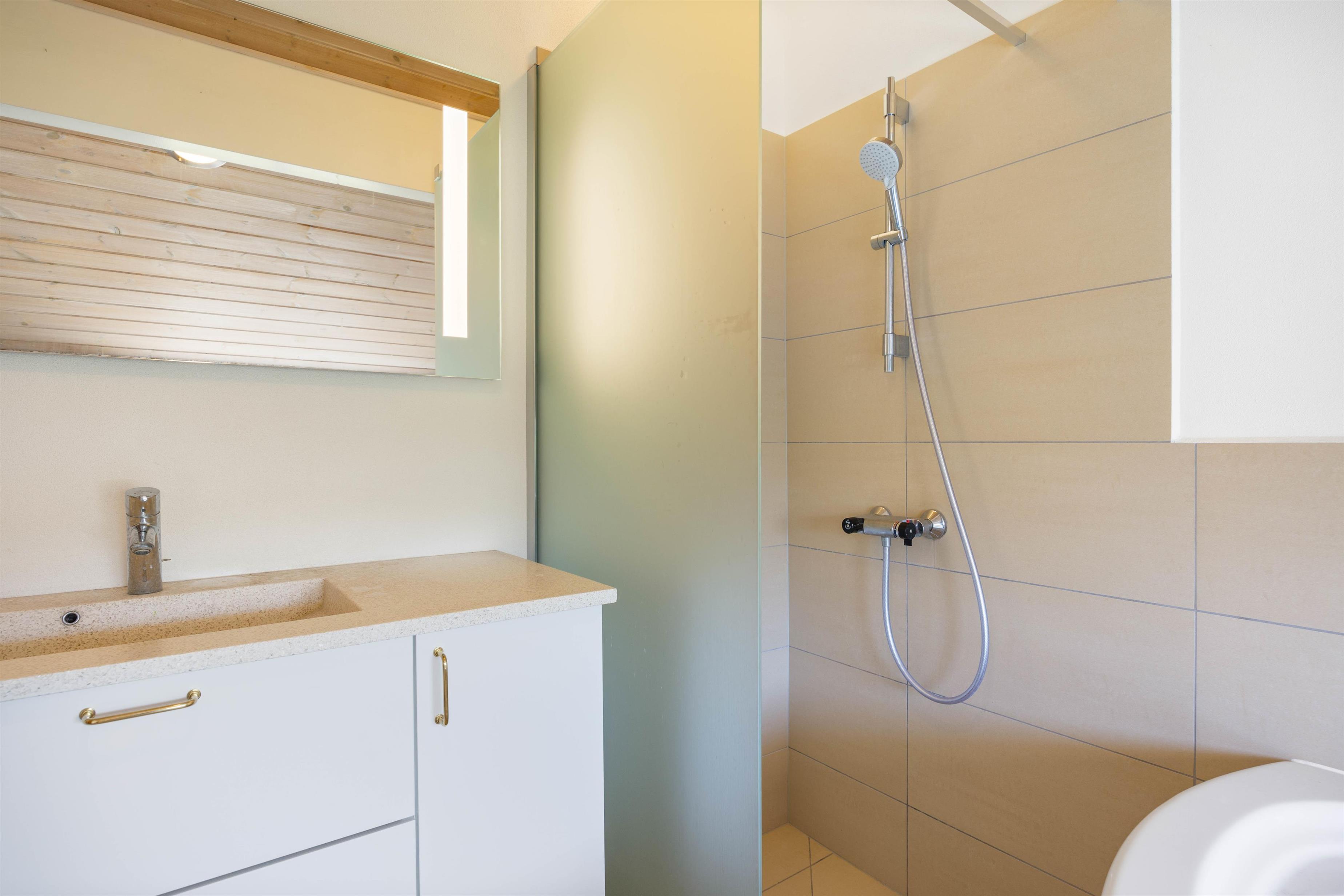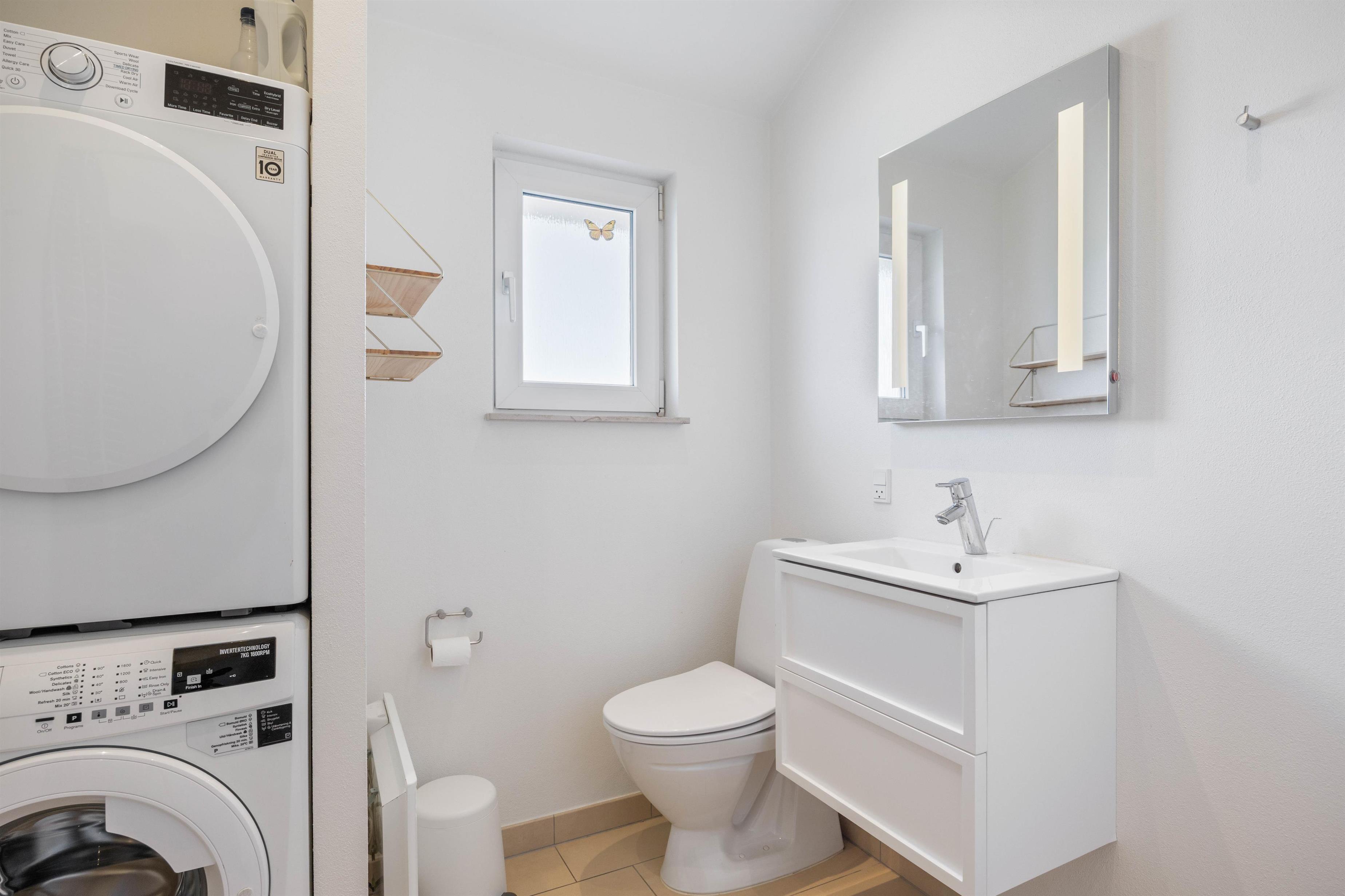 Huset råder over 2 gode badeværelser hvoraf det ene er med et 2- personers spabad, direkte adgang til en sauna, bruseniche og gulvvarme. I det lidt midre badeværelse er der udover bruseniche også vaskemaskine og tørretumbler.