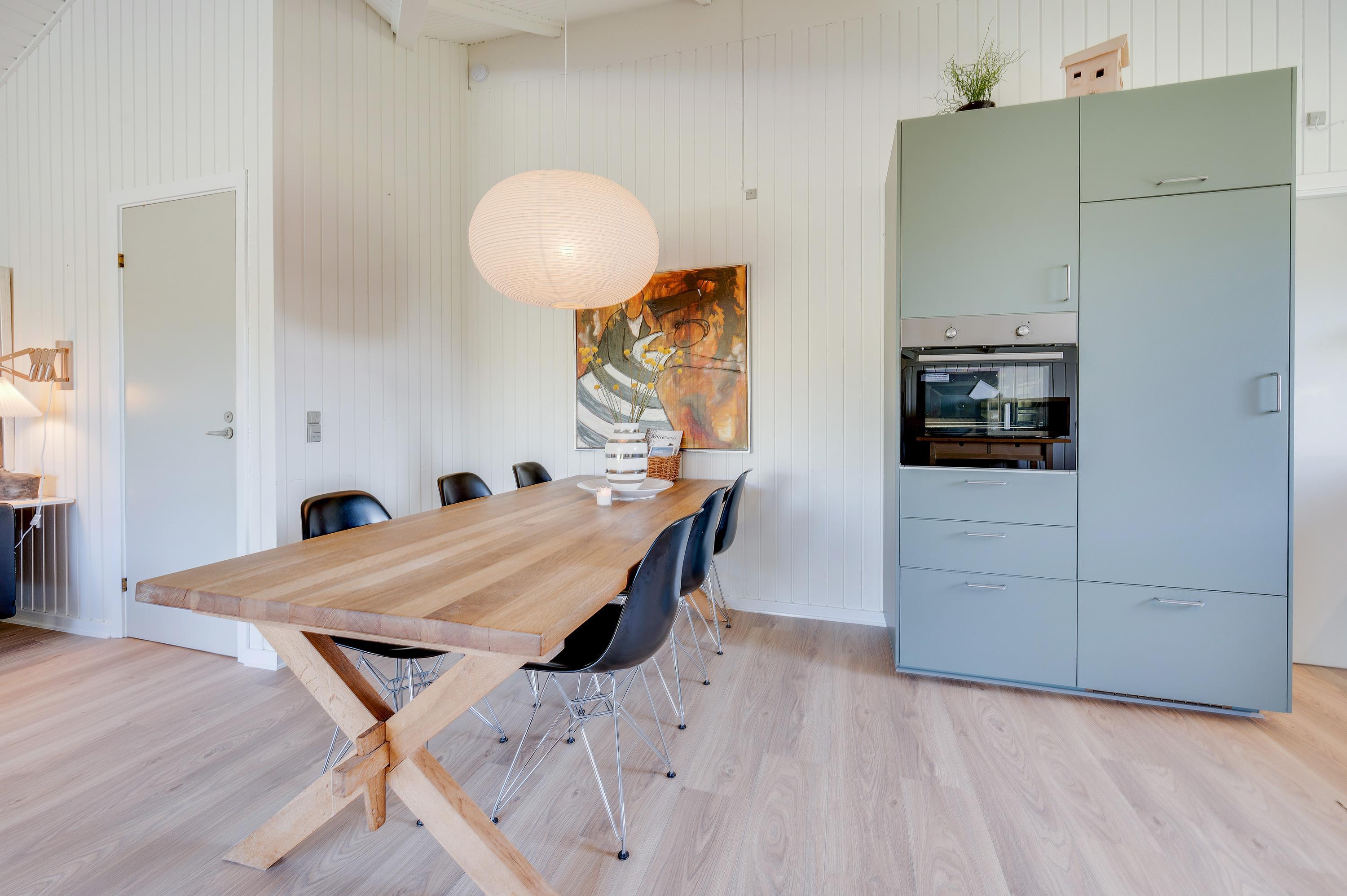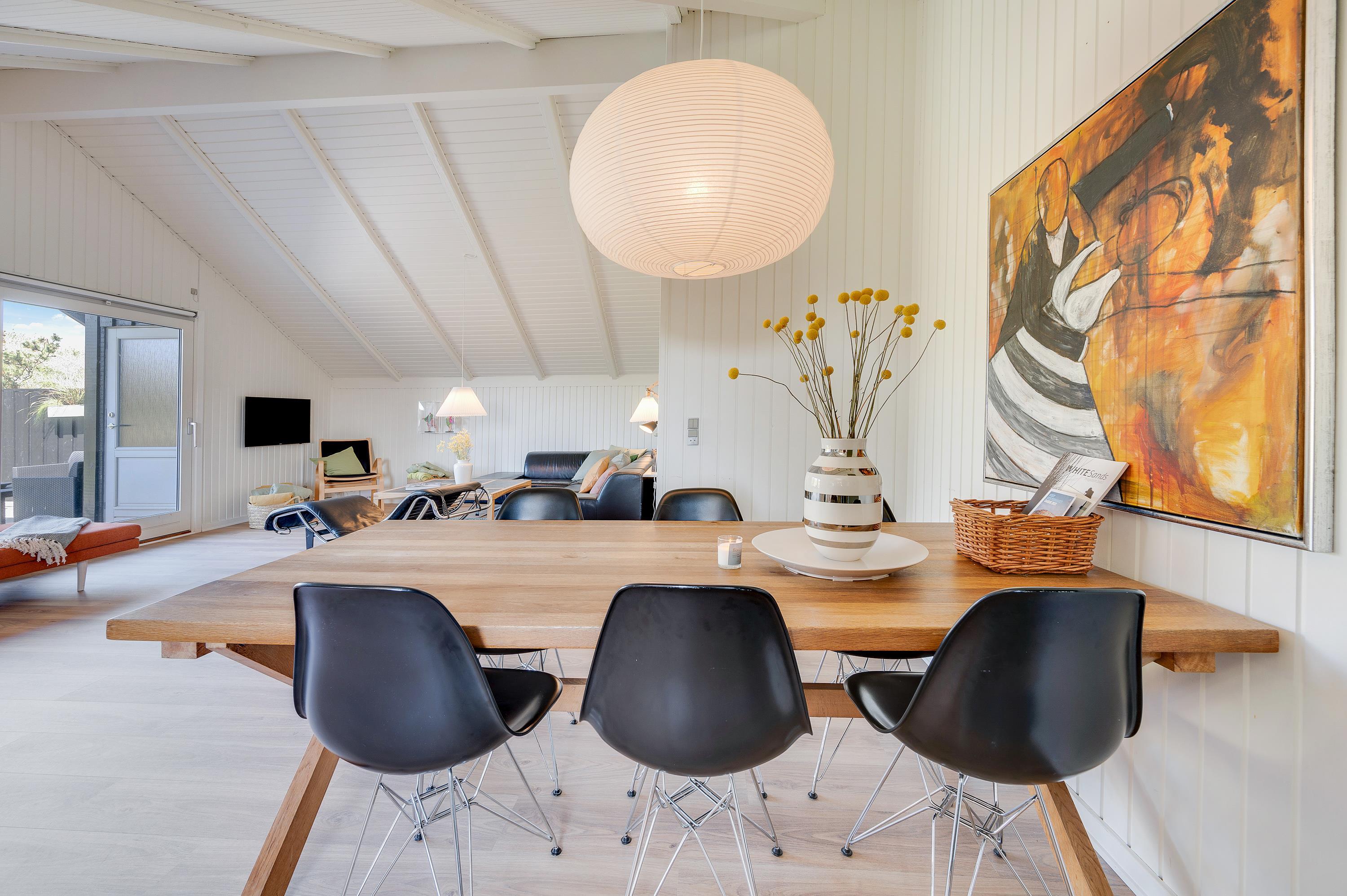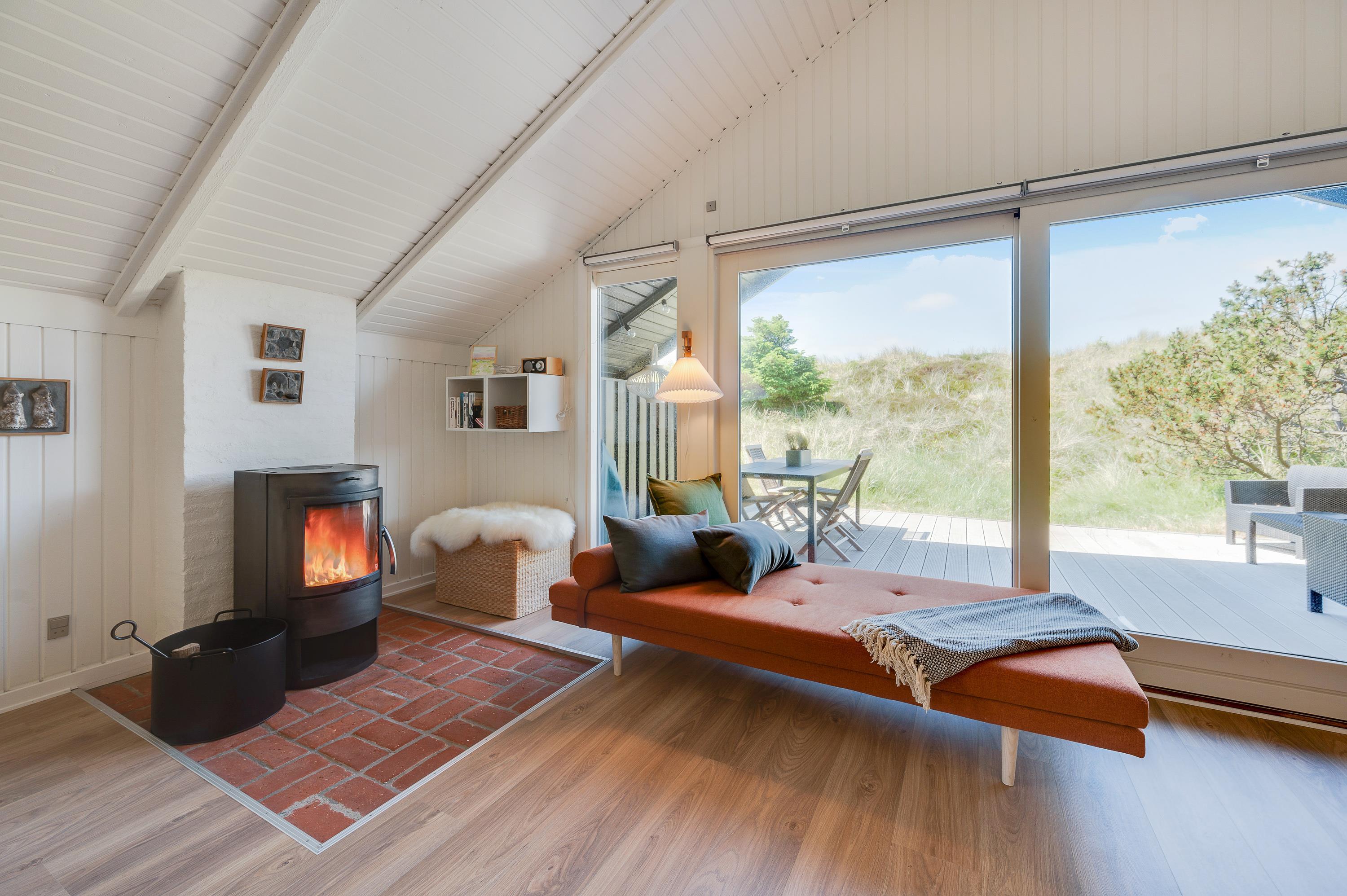 I dette stilfuldt indrettede sommerhus kan du holde ferie midt i det smukke vestjyske klitlandskab tæt på badestranden ved Vesterhavet. Sommerhuset fremstår lyst og moderne indvendig efter en omfattende renovering i 2019. Der er brændeovn i den store stue, og her må du have to hunde med på ferien.