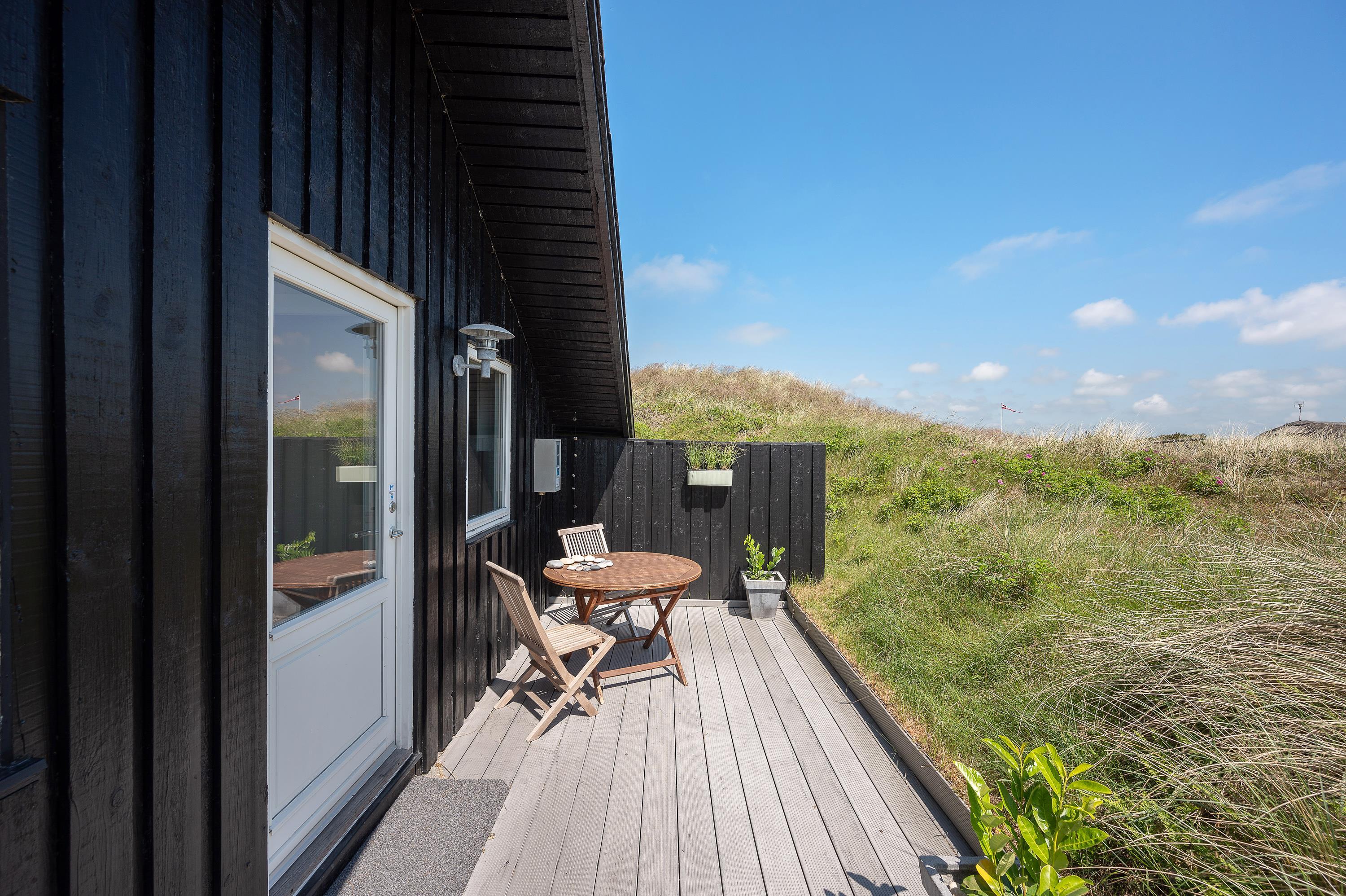 Der er terrasser på både øst- og vestsiden af sommerhuset, så du kan nyde solen både om morgenen og om aftenen.