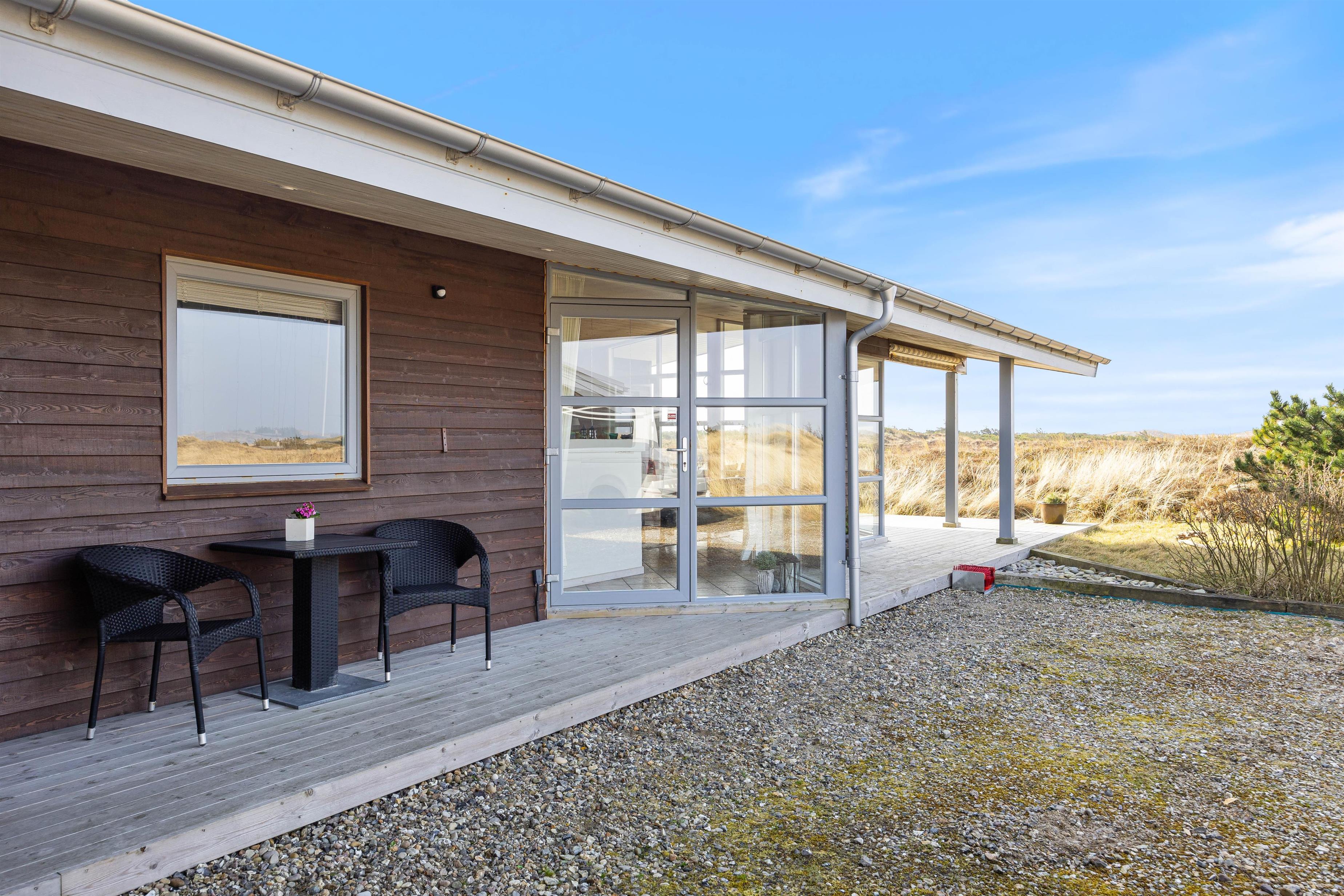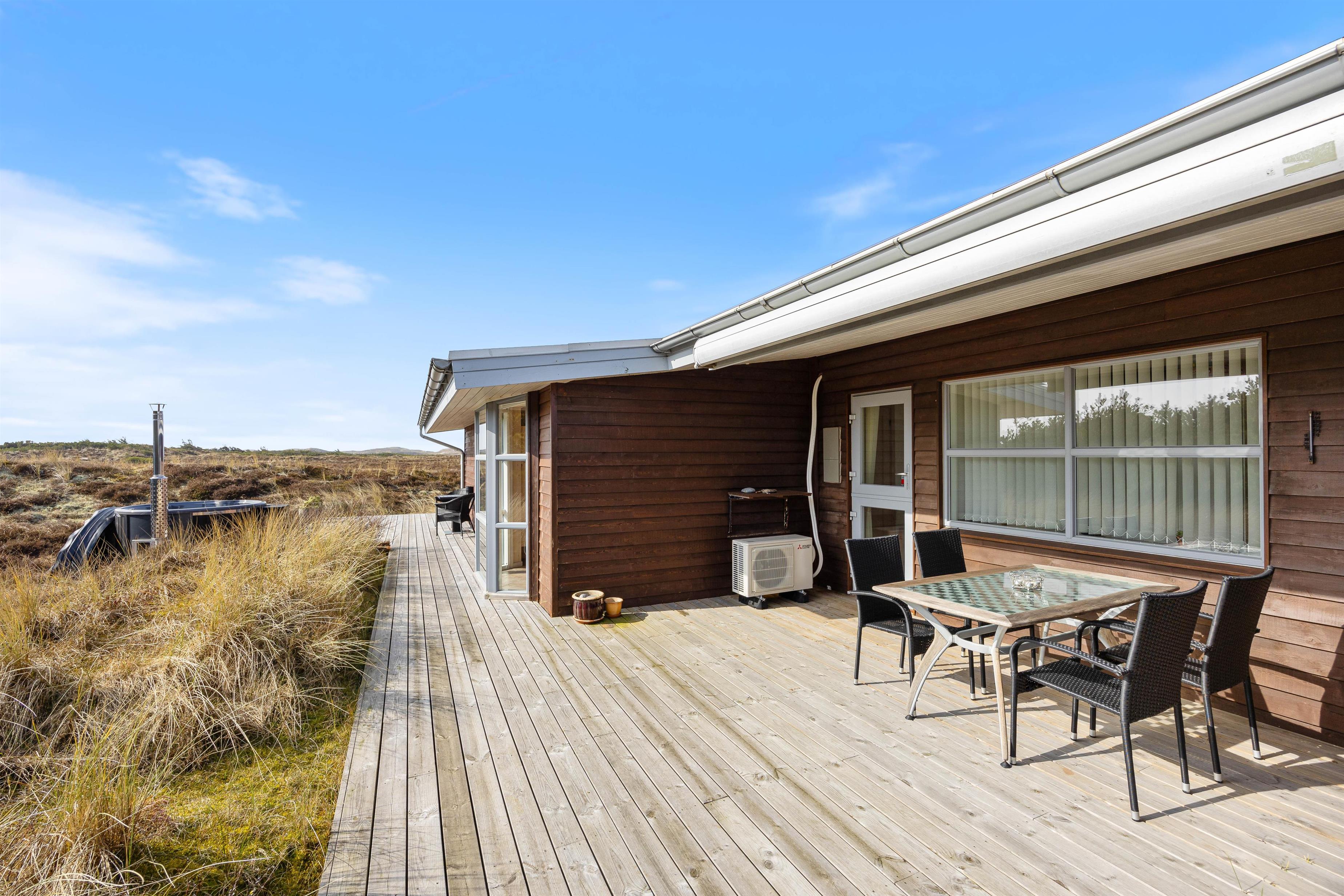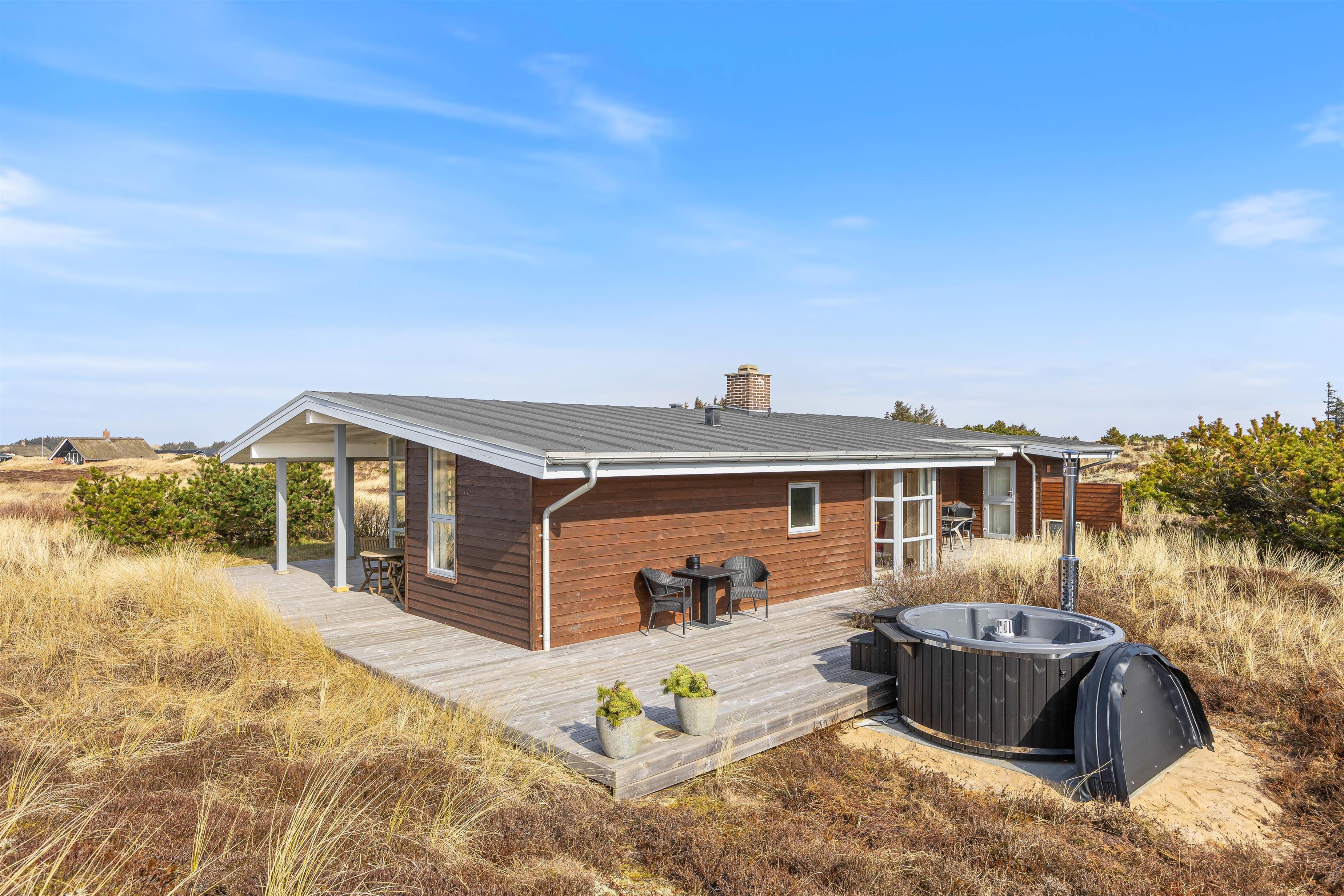 Sommerhuset ligger på en klitgrund med masser af muligheder for at nyde ferien udenfor. På terrassen finder I både havemøbler og grill, så I kan slappe af og nyde solen. Om aften kan I tilberede aftensmaden på grillen og nyde maden under åben himmel.