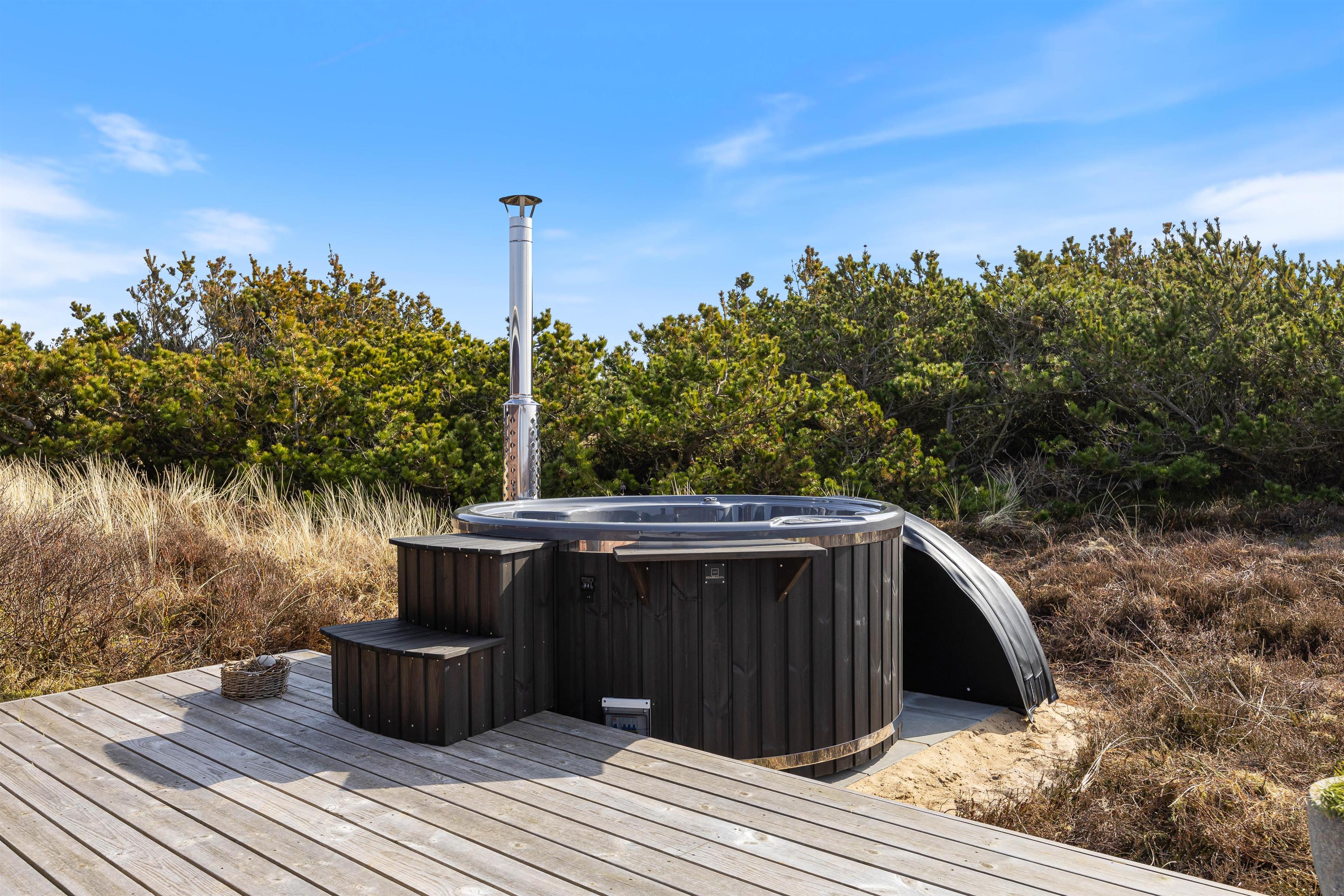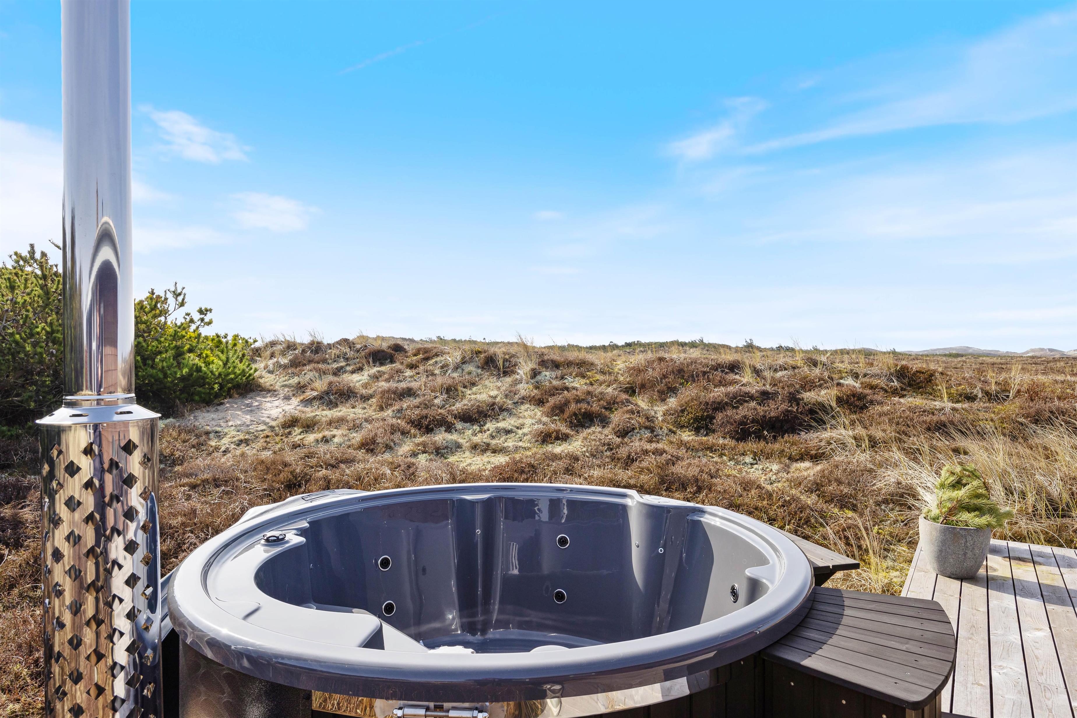 Efter en kold gåtur ved havet kan I hoppe i den varme udespa og komme helt ned i gear og nyde ferien.