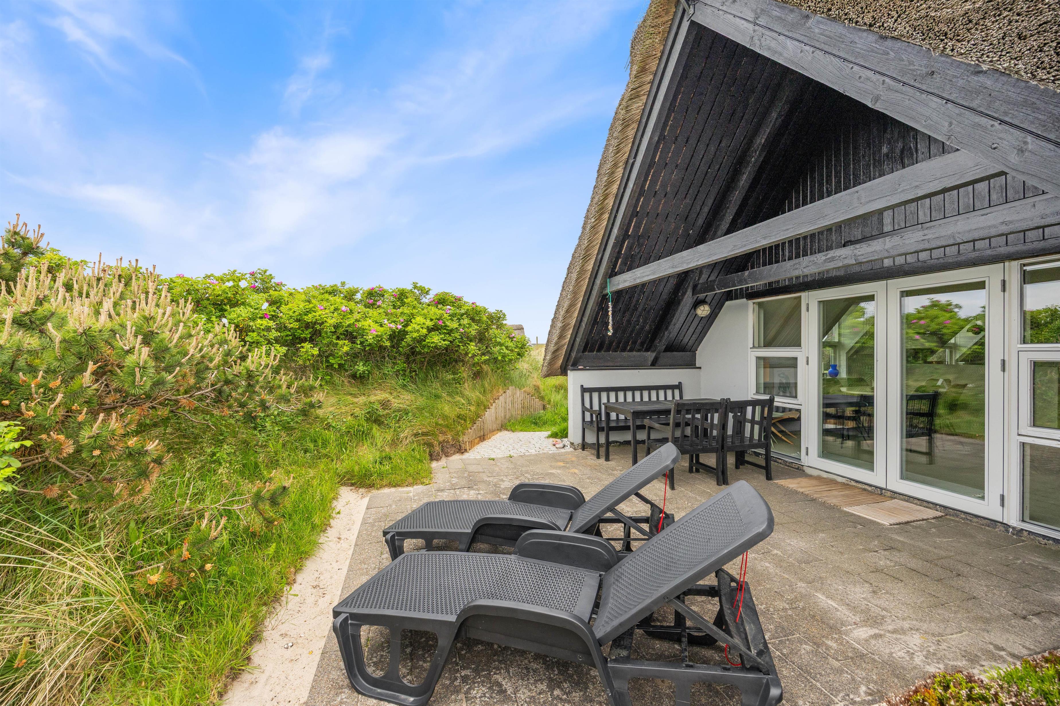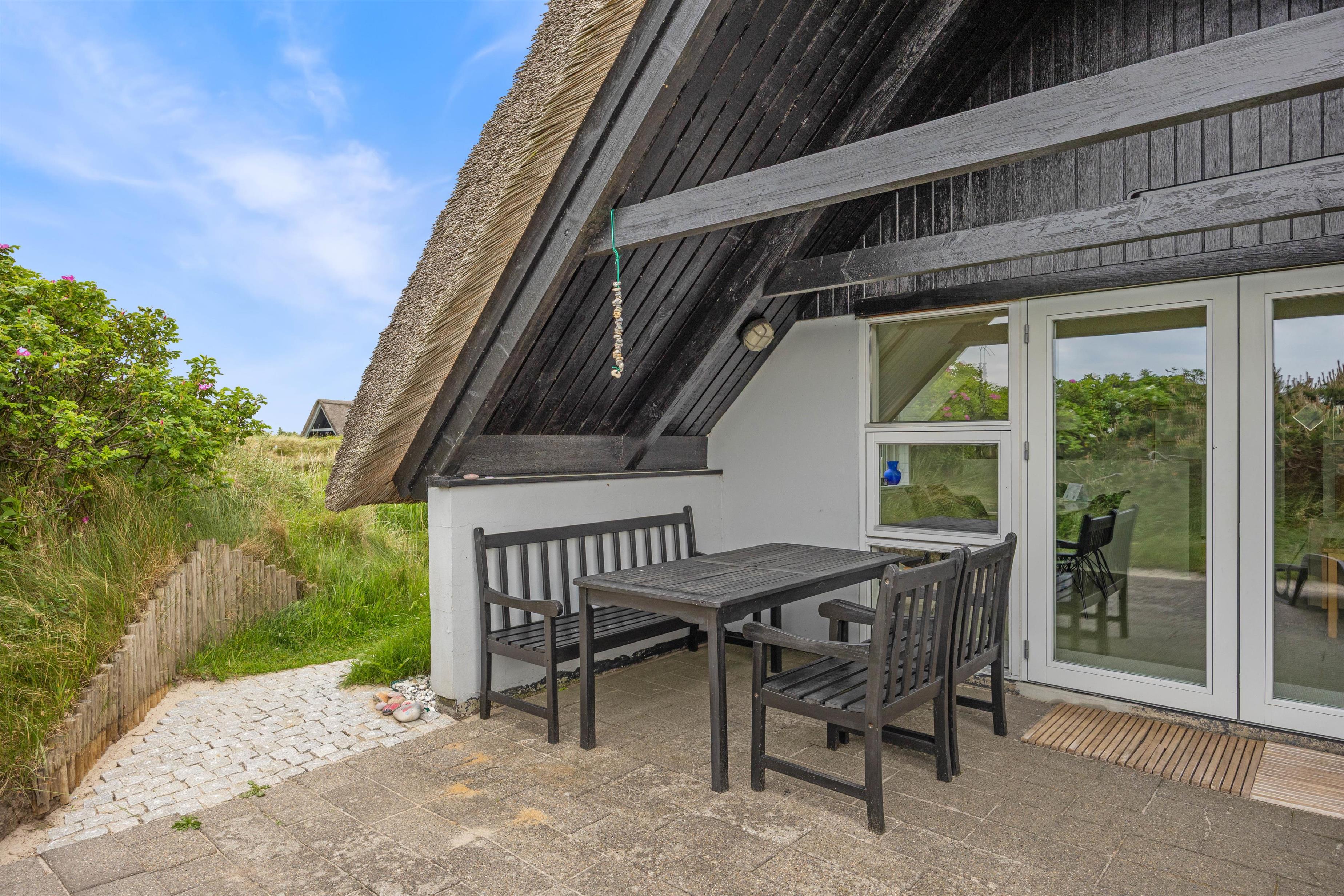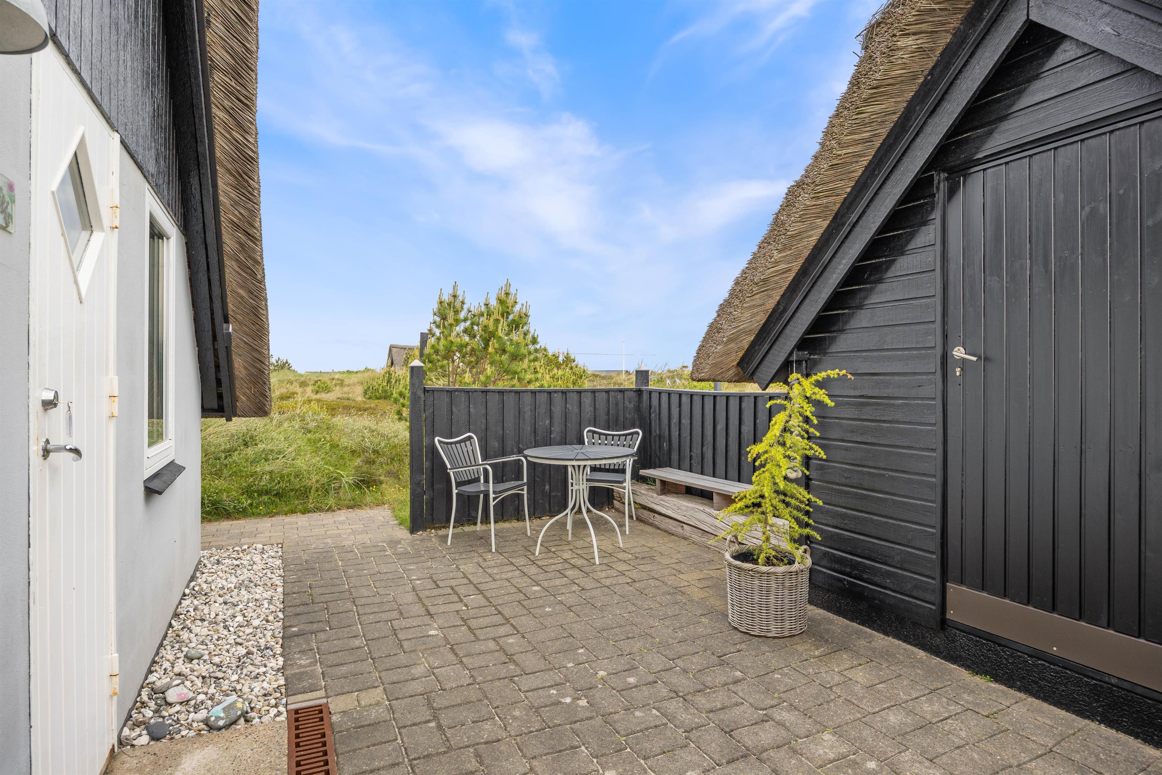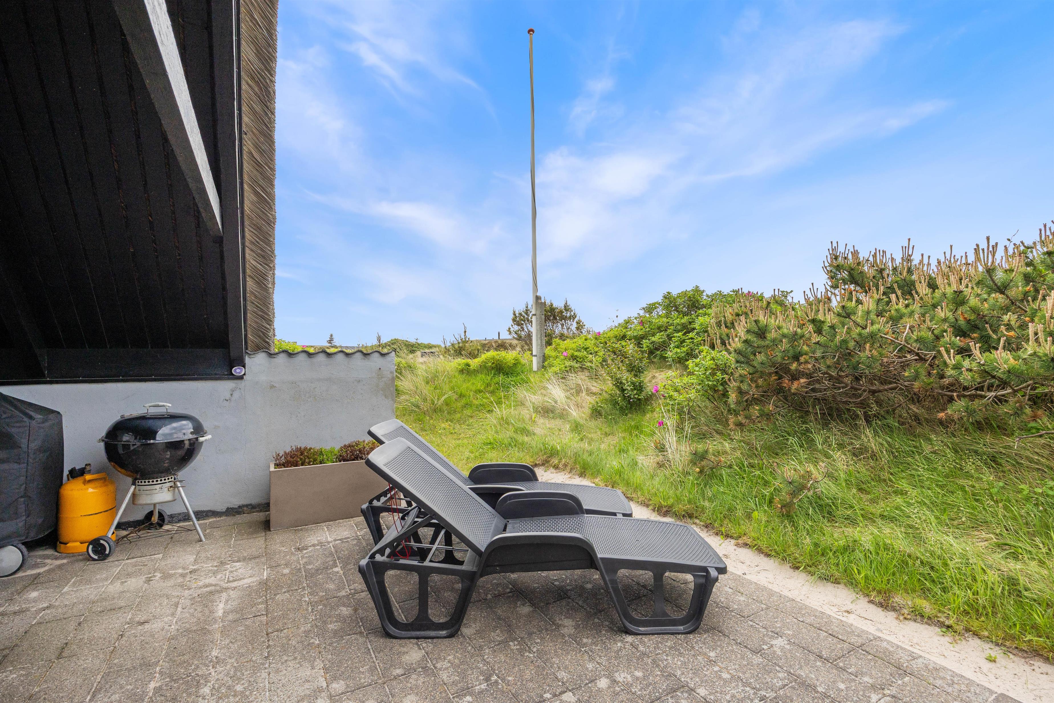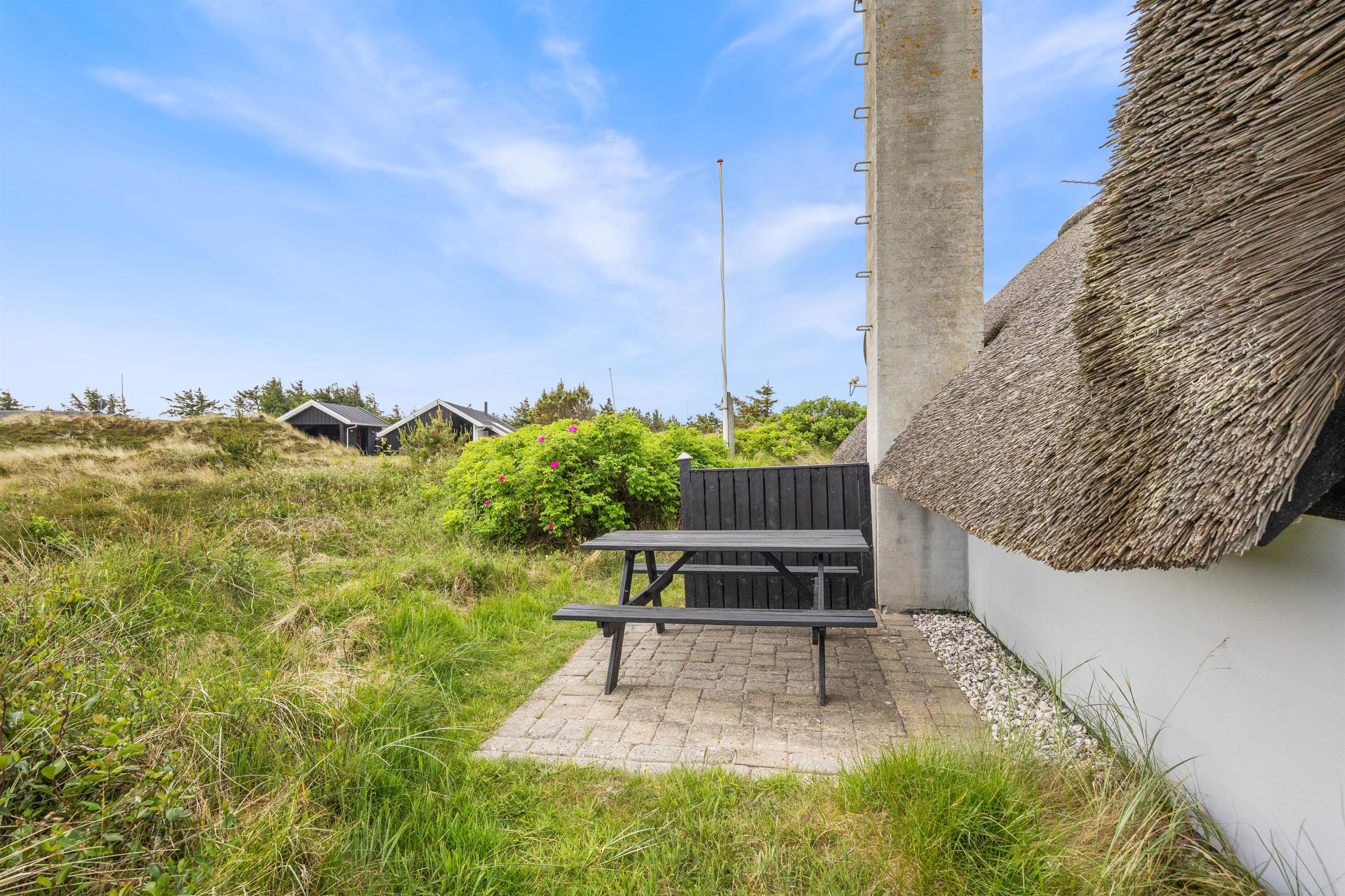 Feriehuset er placeret på en smuk naturgrund, hvor I uforstyrret kan nyde de dejlige solskinsdage og lune aftener. På den afskærmede terrasse er der selvfølgelig havemøbler og liggestole til rådighed, så I kan samles, spille spil eller læse en god bog. Hvis I har lyst, kan I finde sommerhusets gasgrill frem og rykke aftensmaden udenfor. Nyd middagen sammen med et koldt glas vin. Efter middagen kan I gå en tur til Vesterhavet og se solnedgangen; en unik naturoplevelse.