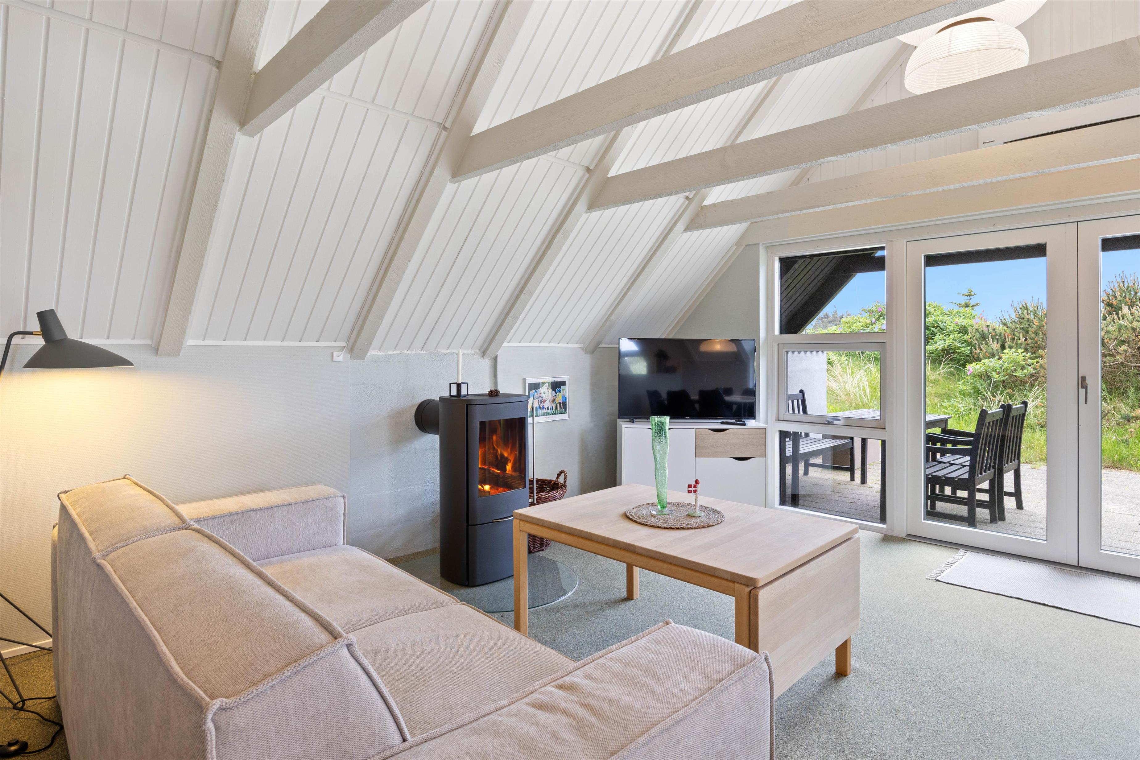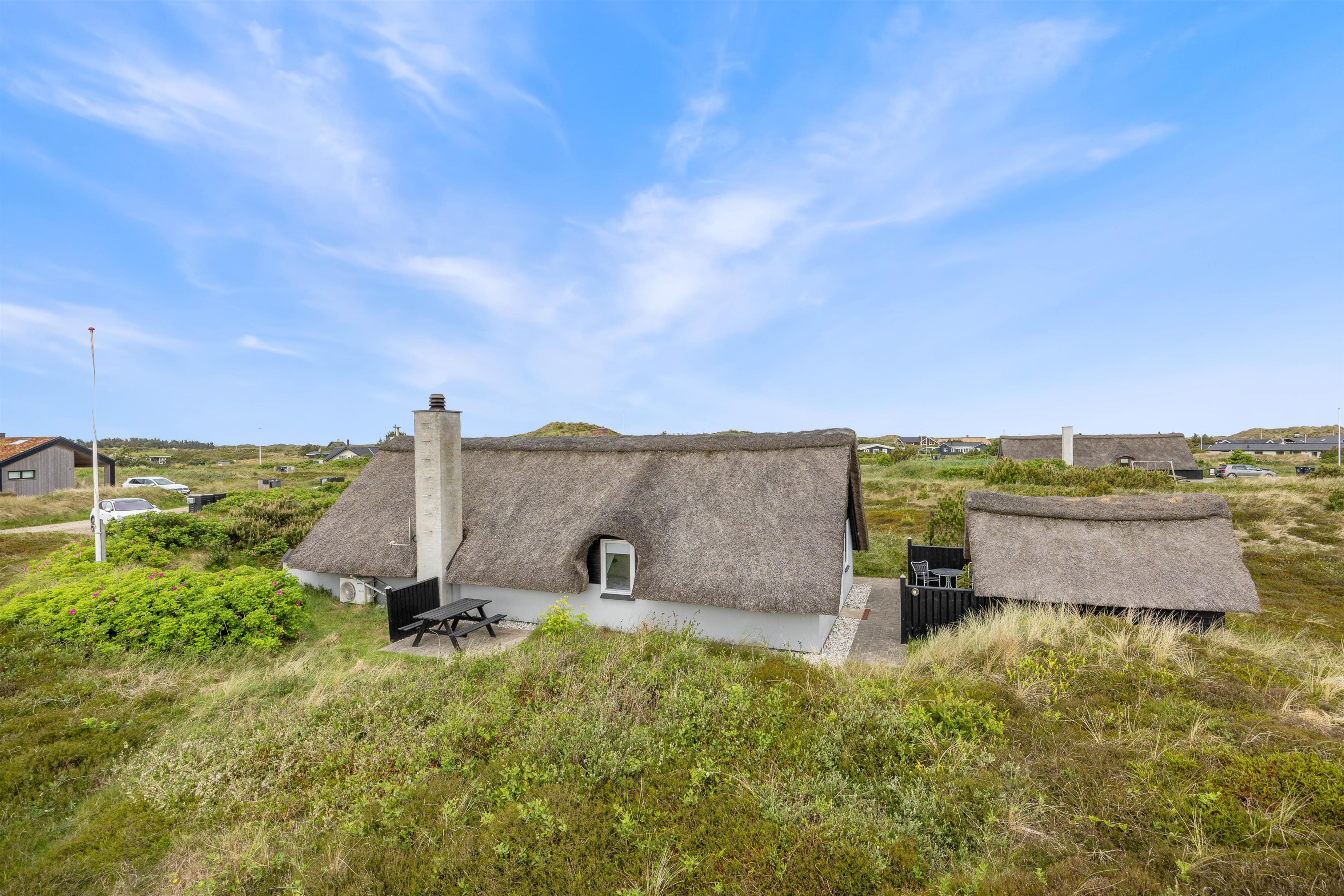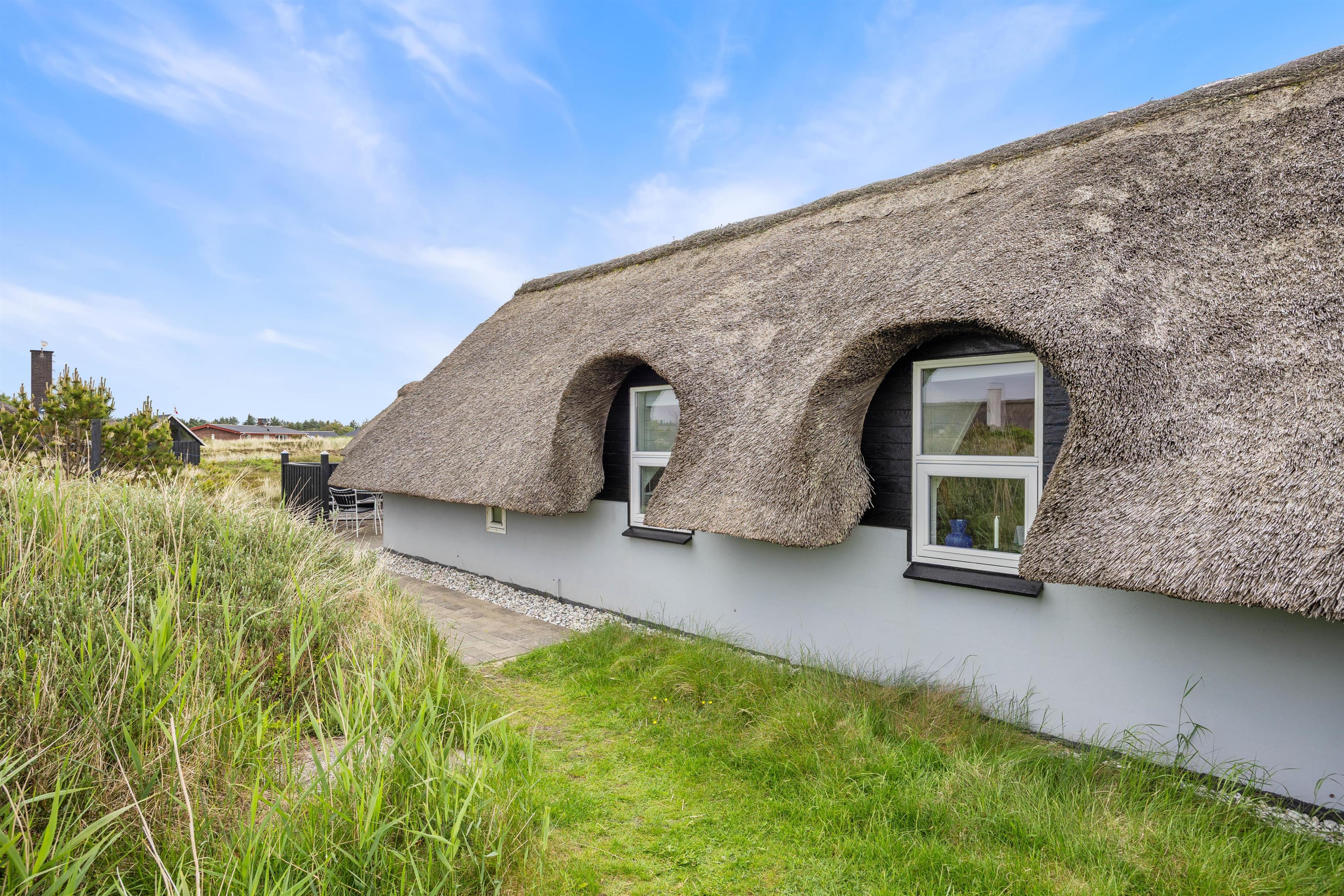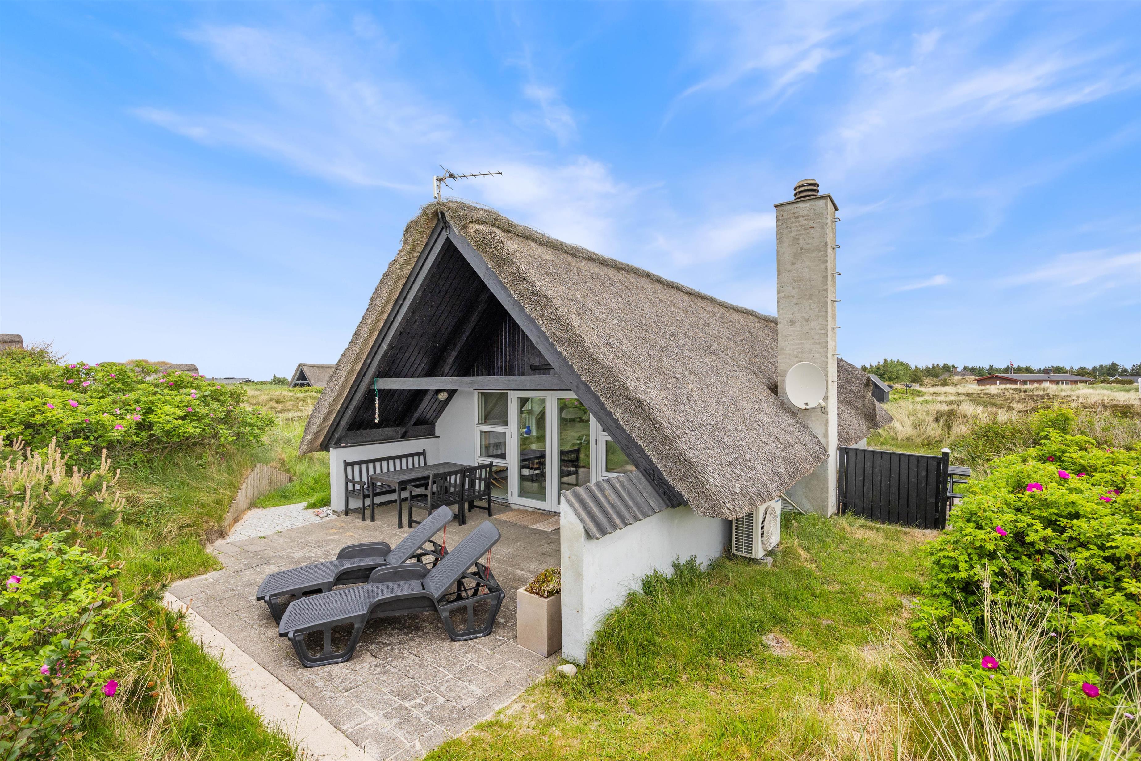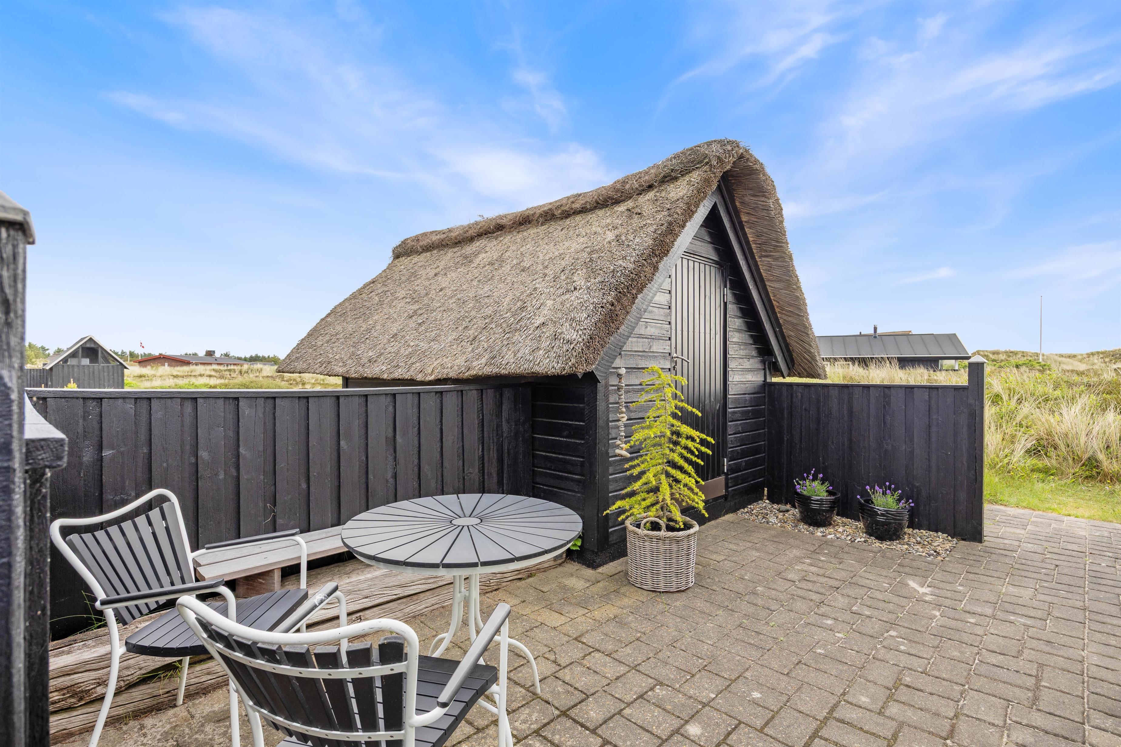 Feriehuset er placeret på en smuk naturgrund, hvor I uforstyrret kan nyde de dejlige solskinsdage og lune aftener. På den afskærmede terrasse er der selvfølgelig havemøbler og liggestole til rådighed, så I kan samles, spille spil eller læse en god bog. Hvis I har lyst, kan I finde sommerhusets gasgrill frem og rykke aftensmaden udenfor. Nyd middagen sammen med et koldt glas vin. Efter middagen kan I gå en tur til Vesterhavet og se solnedgangen; en unik naturoplevelse.
