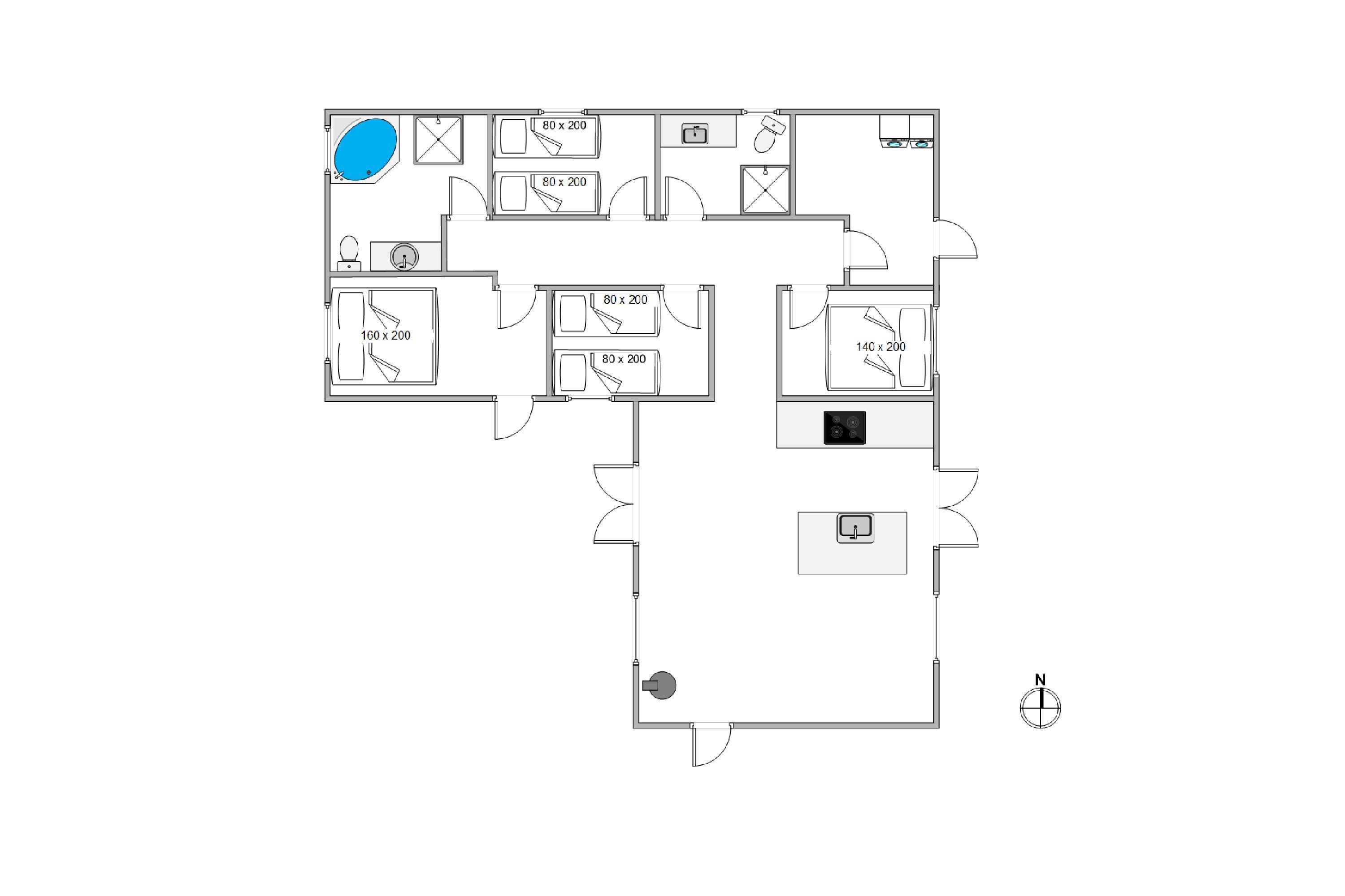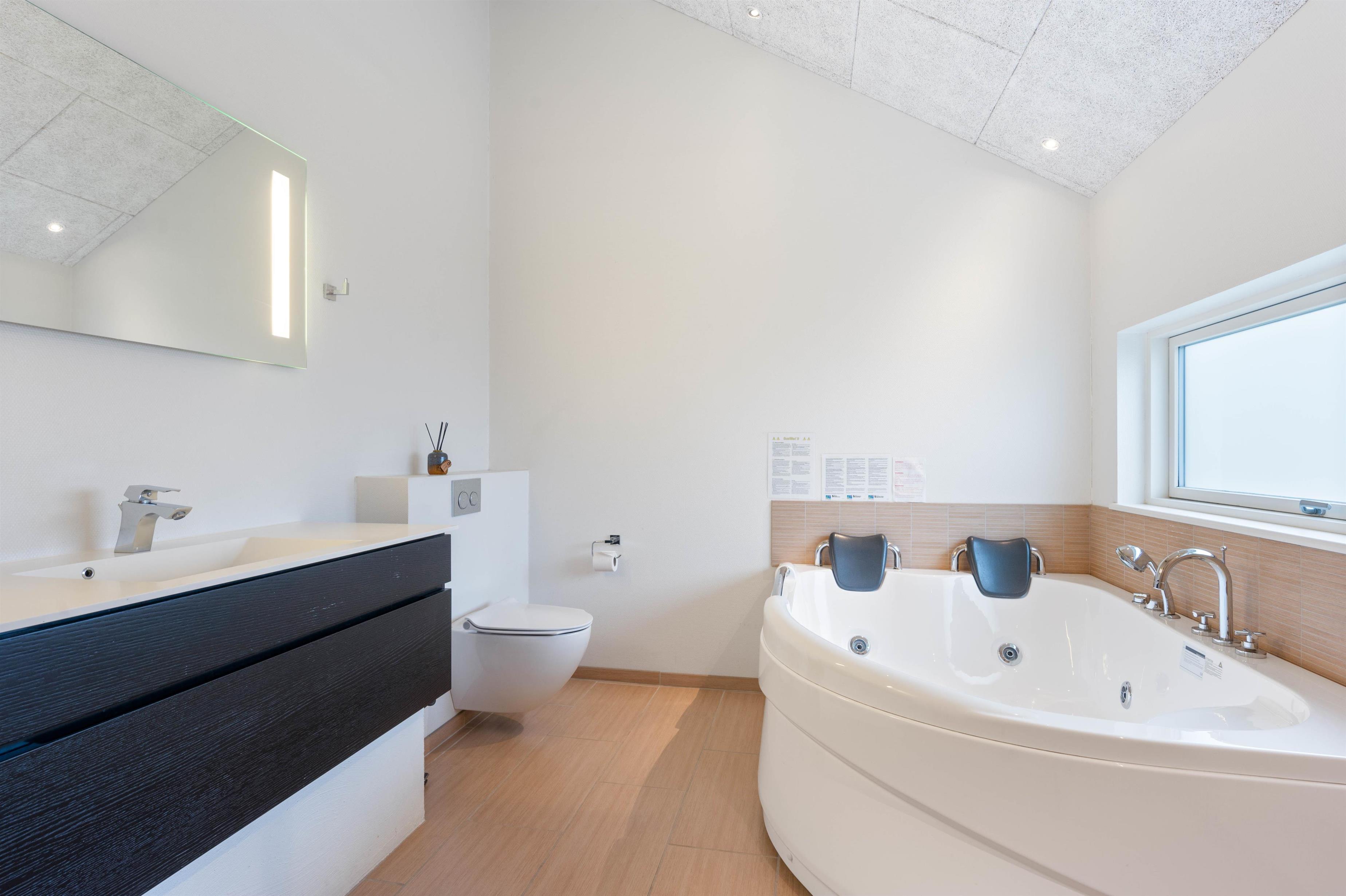 Huset er udstyret med 2 badeværelser, og det ene gemmer på et af husets fede highlights; spabadet. Få jer en rigtig wellnessoplevelse i det varme boblebad og tank nye kræfter i ro og fred - langt væk fra den travle hverdag.
