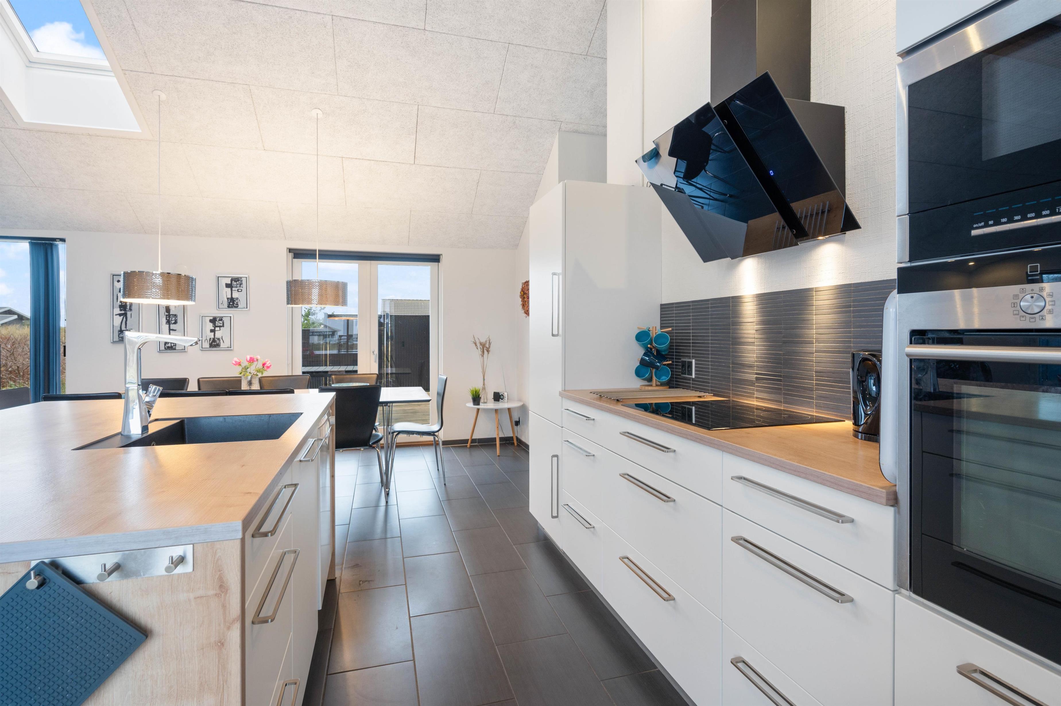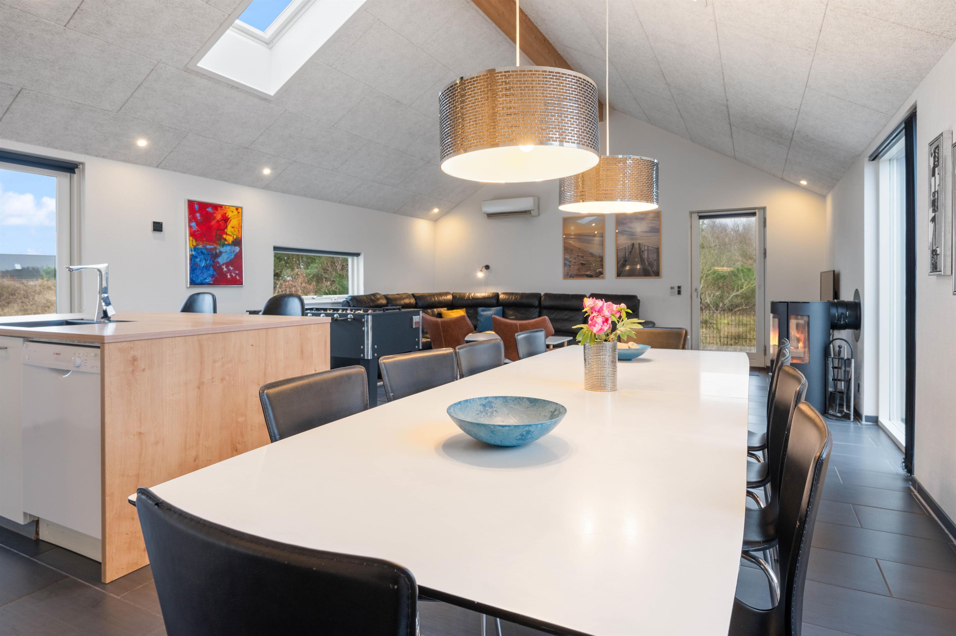 Husets hjerte er stuen, køkkenet og spiseafdelingen, som smelter sammen i ét stort fællesrum. Her kan hele familien samles, og der kan skrues op for hyggen med brændeovnen eller et spil bordfodbold, mens aftensmaden steger færdig i ovnen.