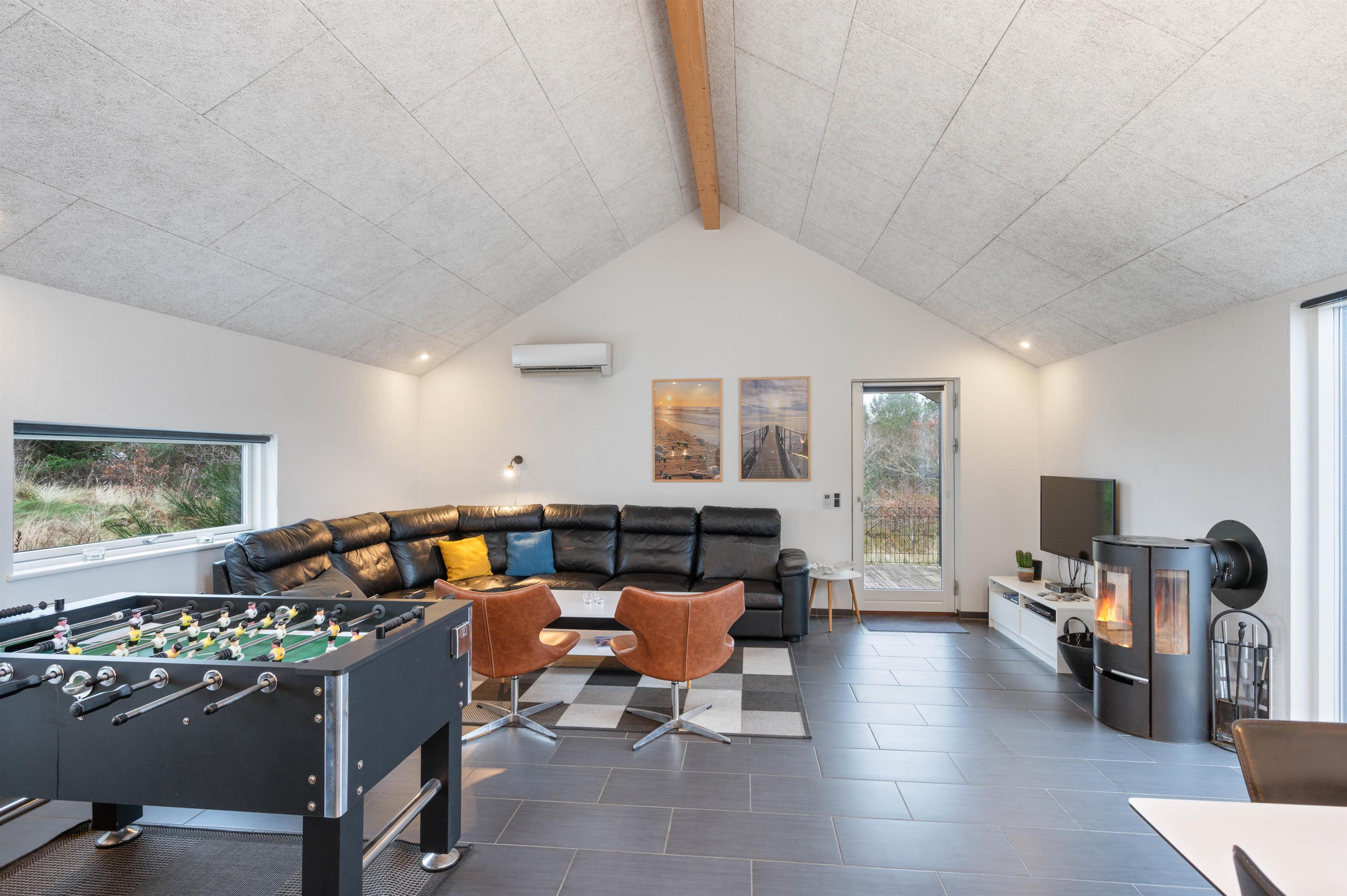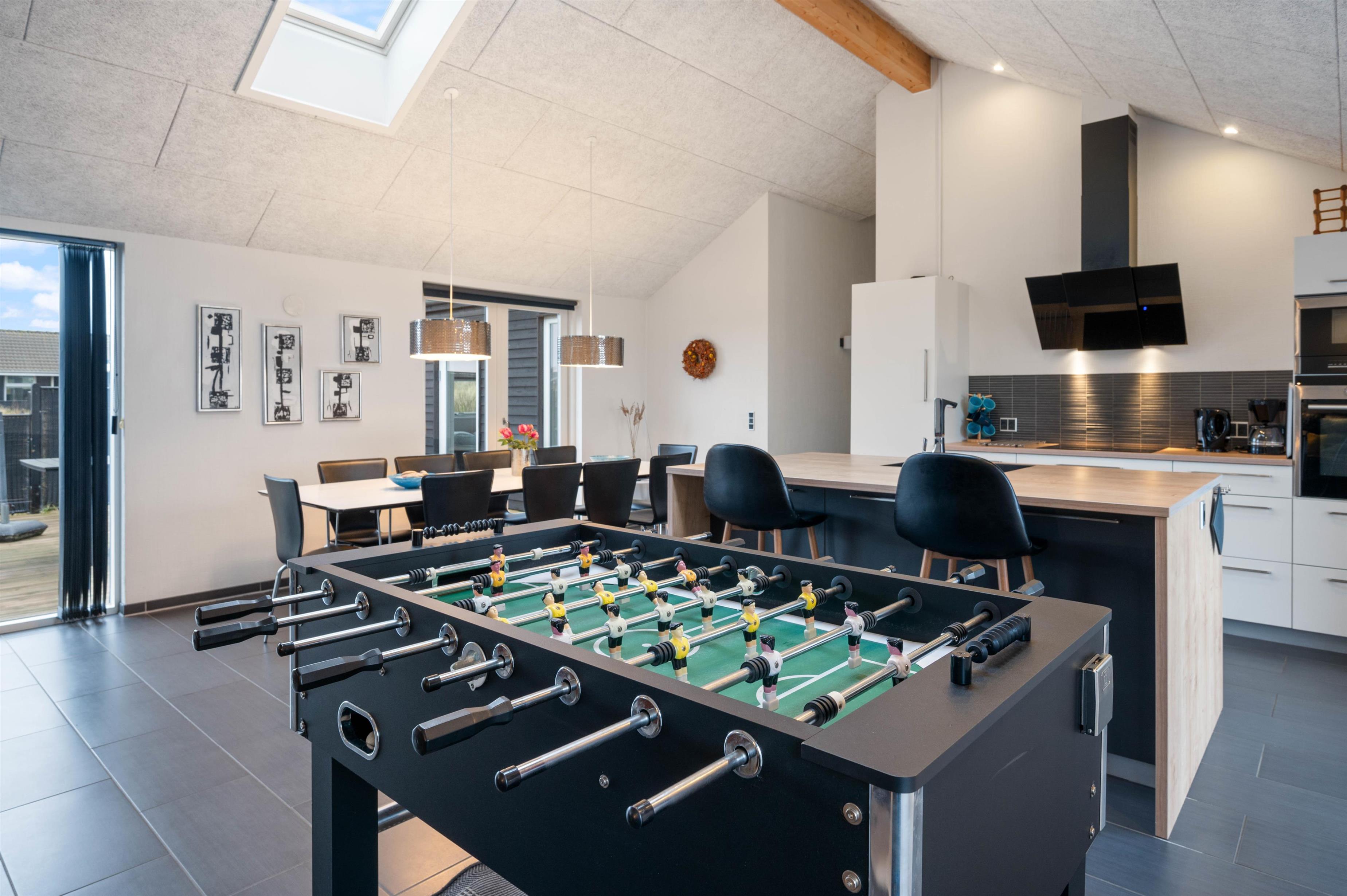 Stilfuld indretning med spabad og bordfodbold