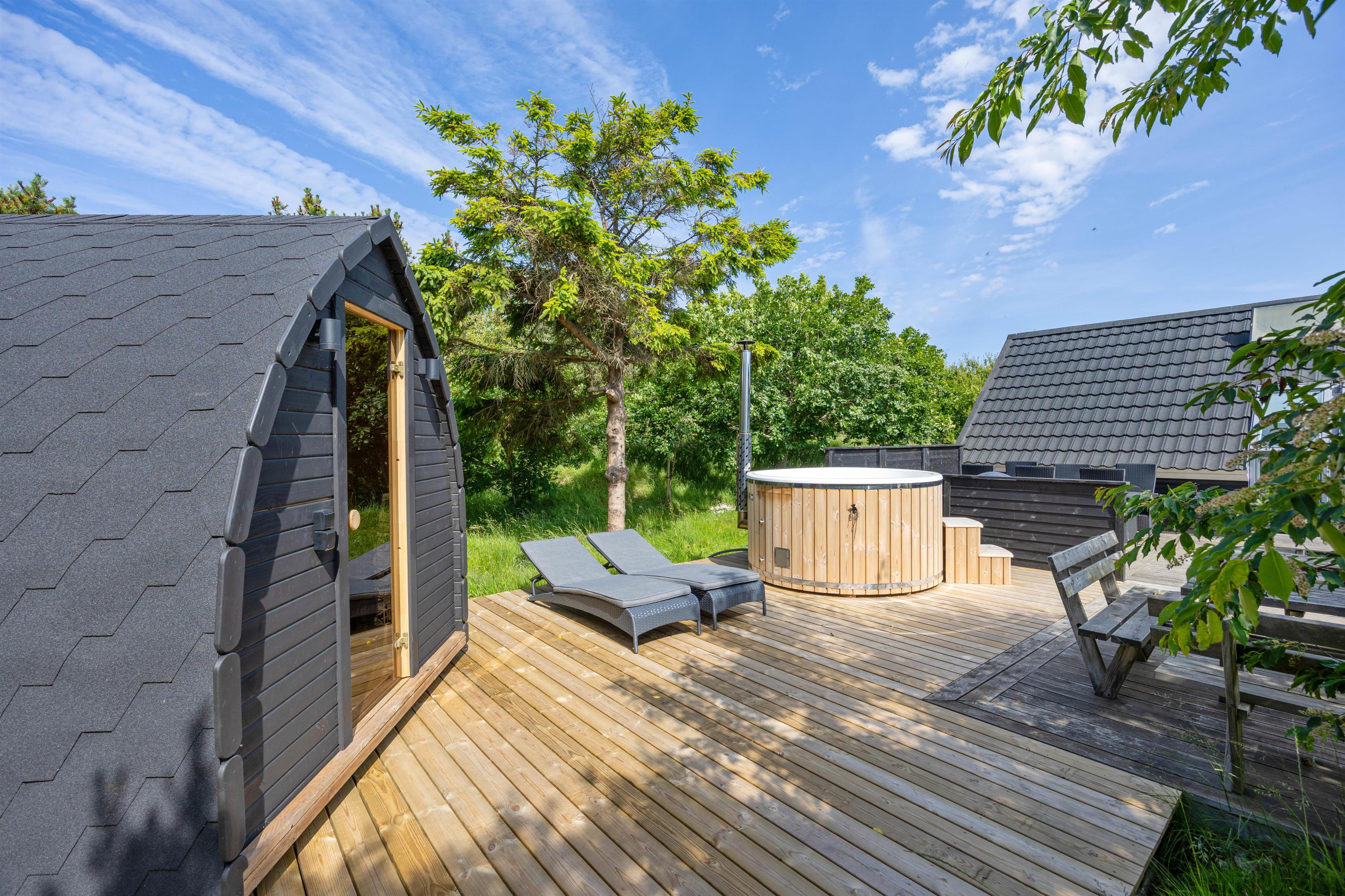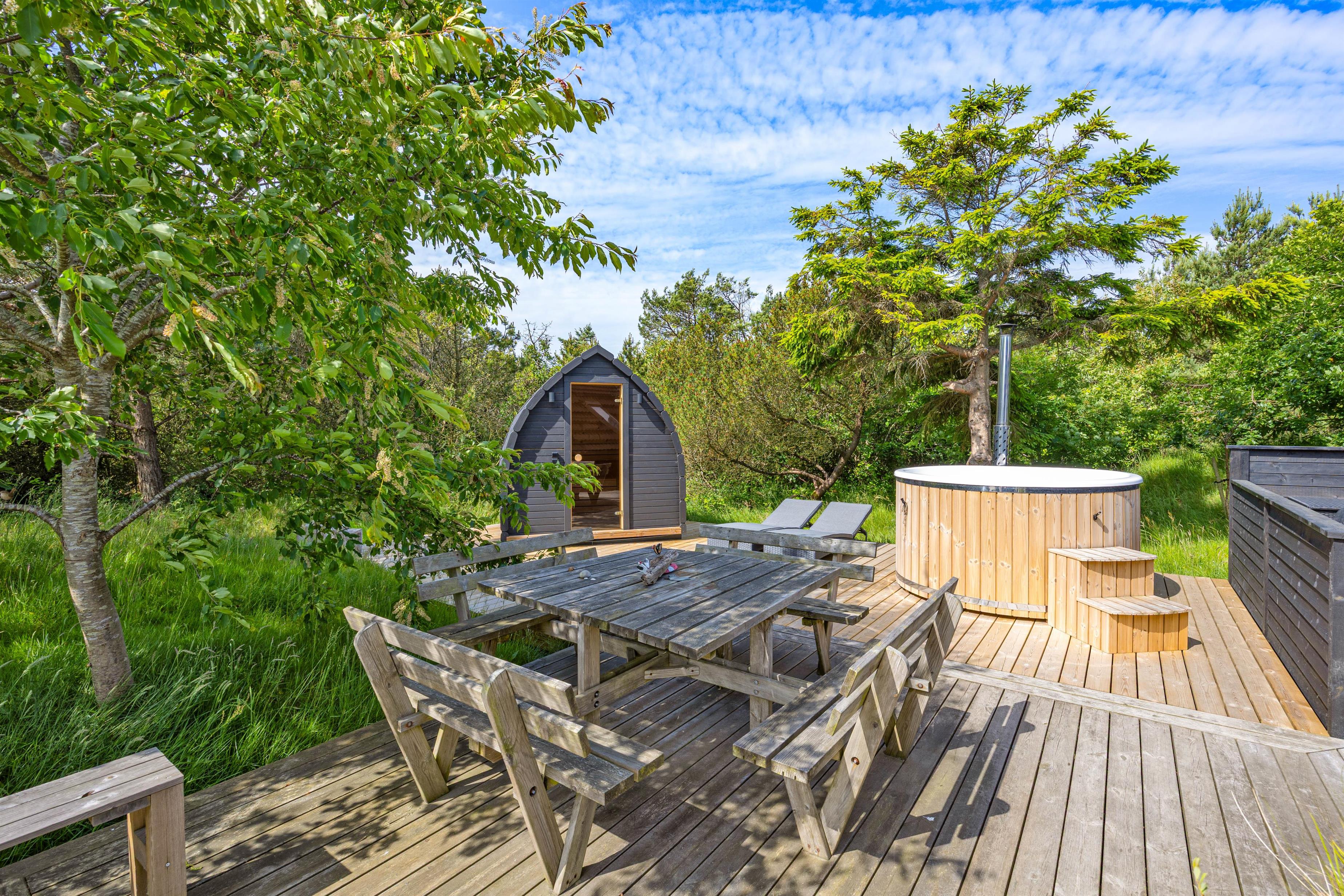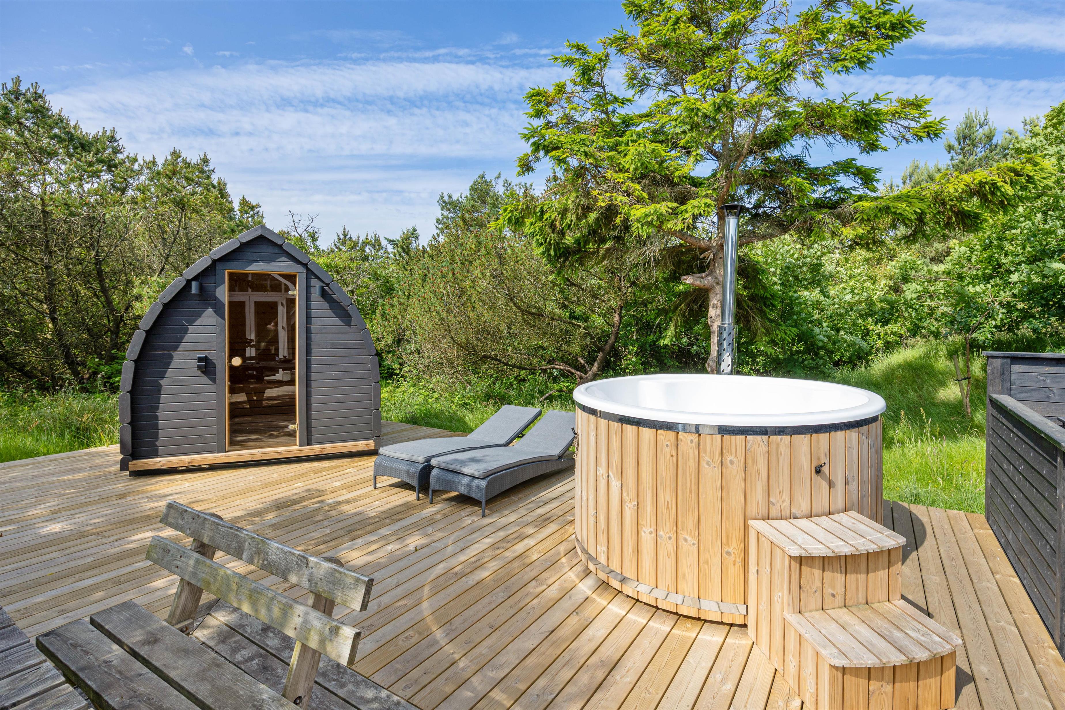 Trænger I til lidt ekstra forkælelse, kan I tage en tur i det skønne vildmarksbad, og nyde roen i udesaunaen – den perfekte afslutning på en dejlig dag.