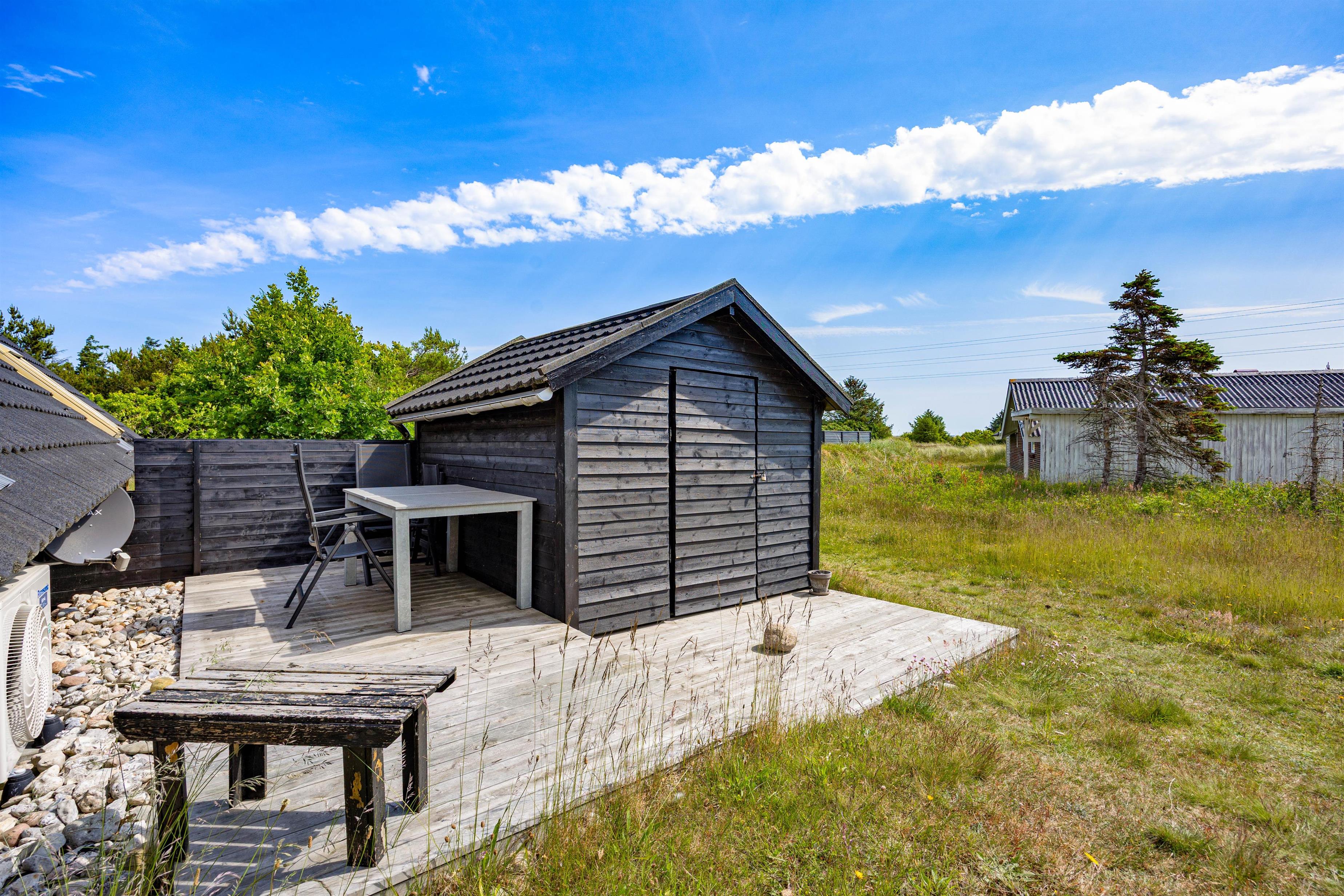 Sommerhuset er beliggende i Klegod, smukt placeret mellem Hvide Sande og Søndervig. Kun 850 meter væk ligger Vesterhavet, hvor I kan nyde en frisk gåtur sammen med hunden langs stranden.