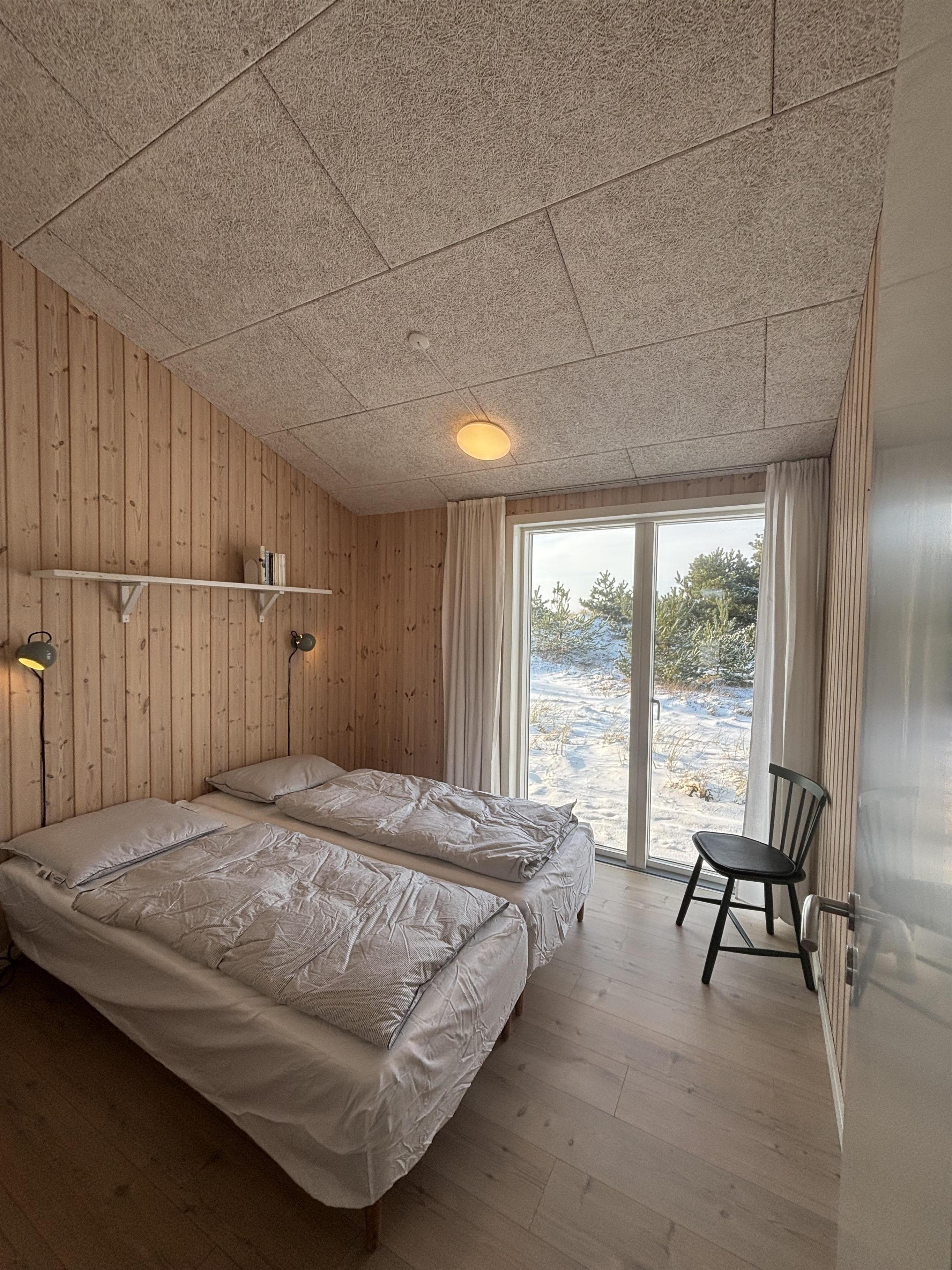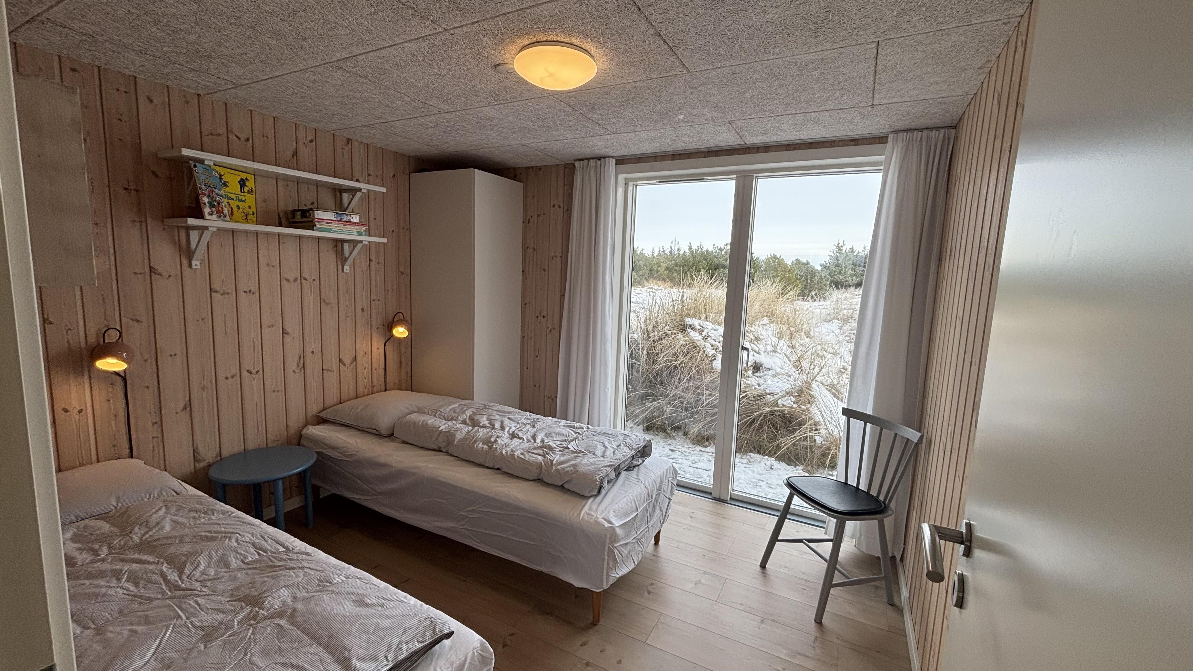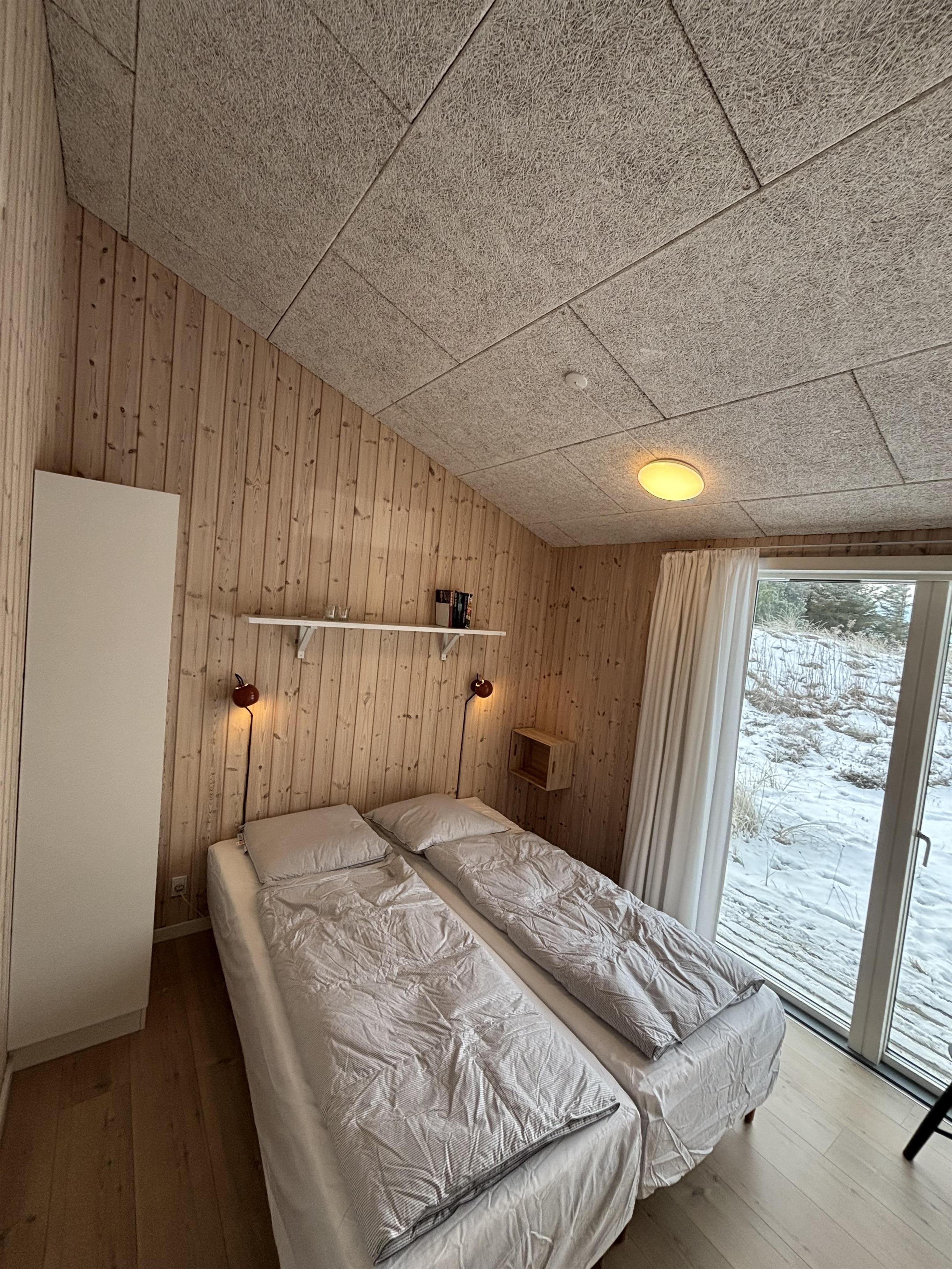 Tre soveværelser med dobbeltsenge og to badeværelser med bruser – det ene med adgang til en dejlig sauna – fuldender udstyret. Udenfor kan I nyde jeres ferie på den store terrasse, der går hele vejen rundt om huset. En del af terrassen er overdækket, så I også kan opholde jer udendørs og spise sammen, selv når vejret er omskifteligt.
