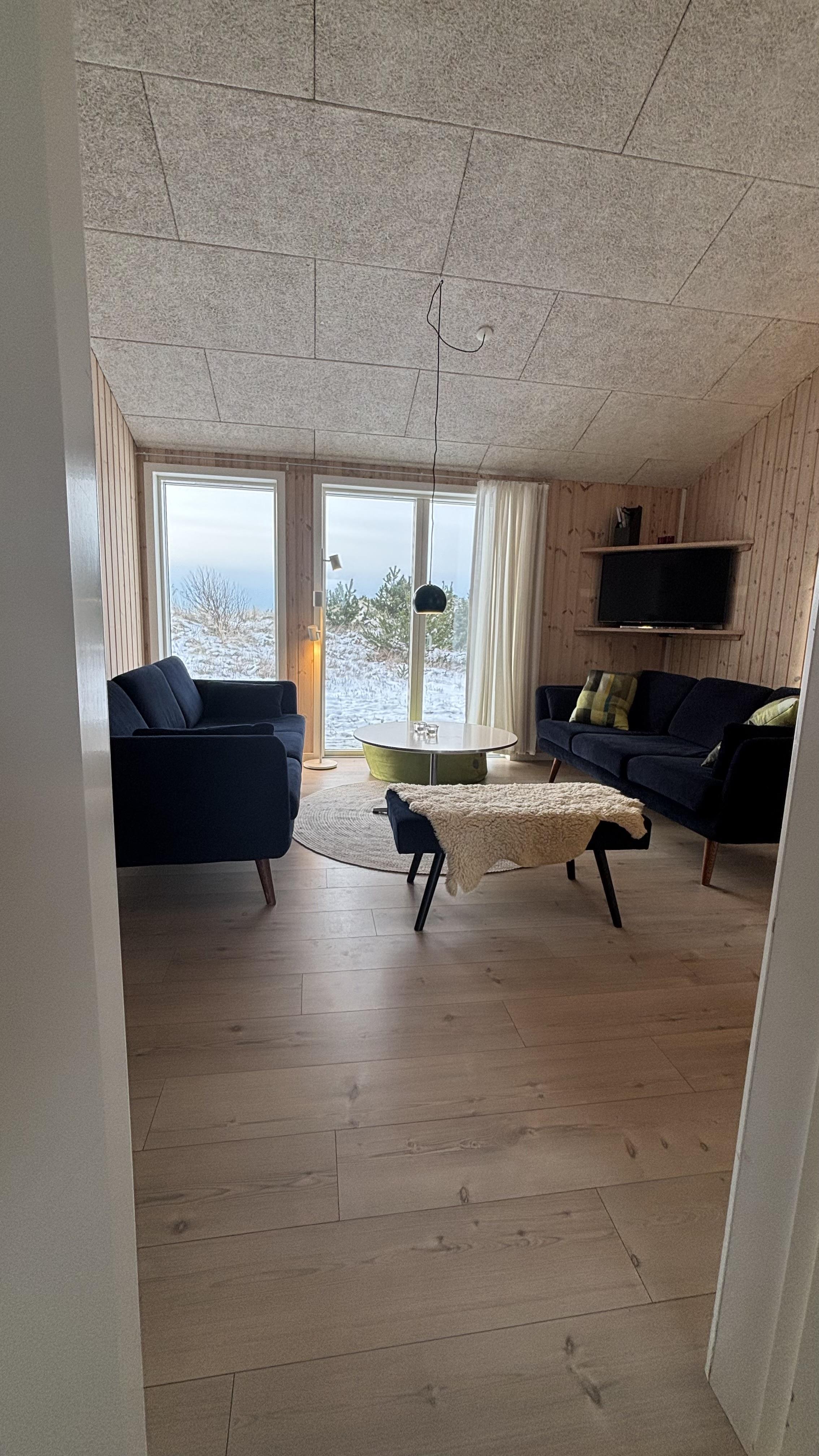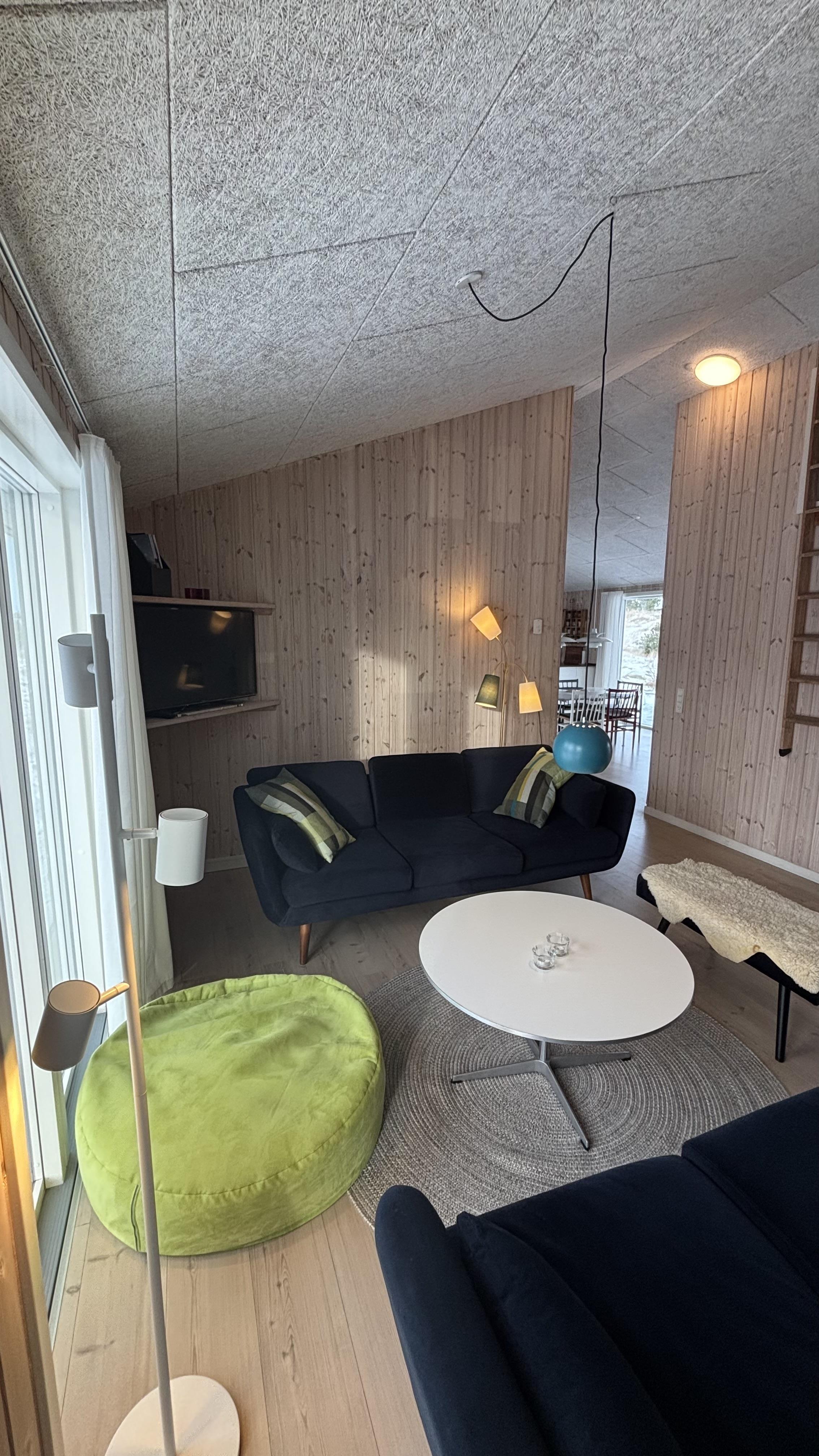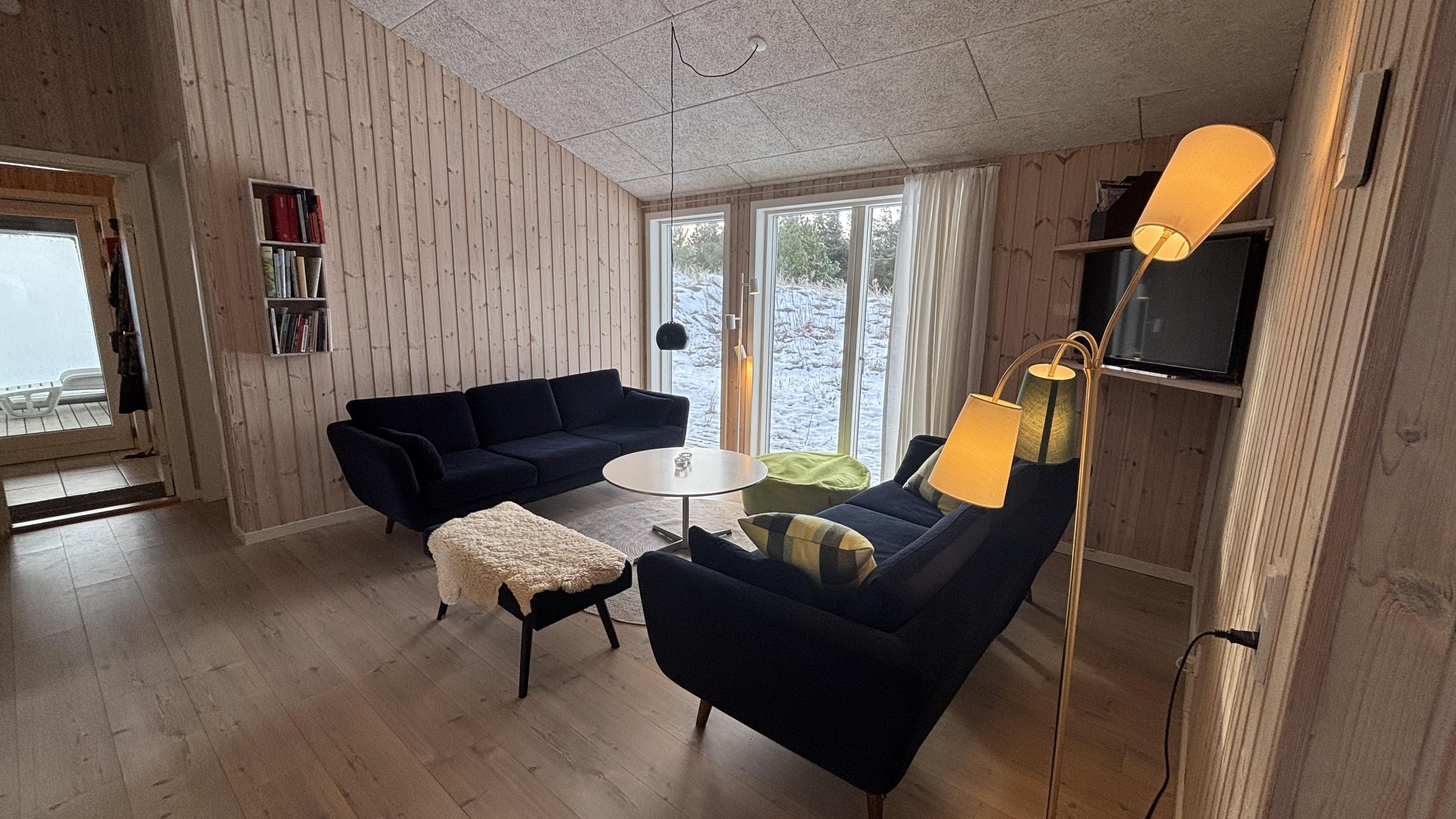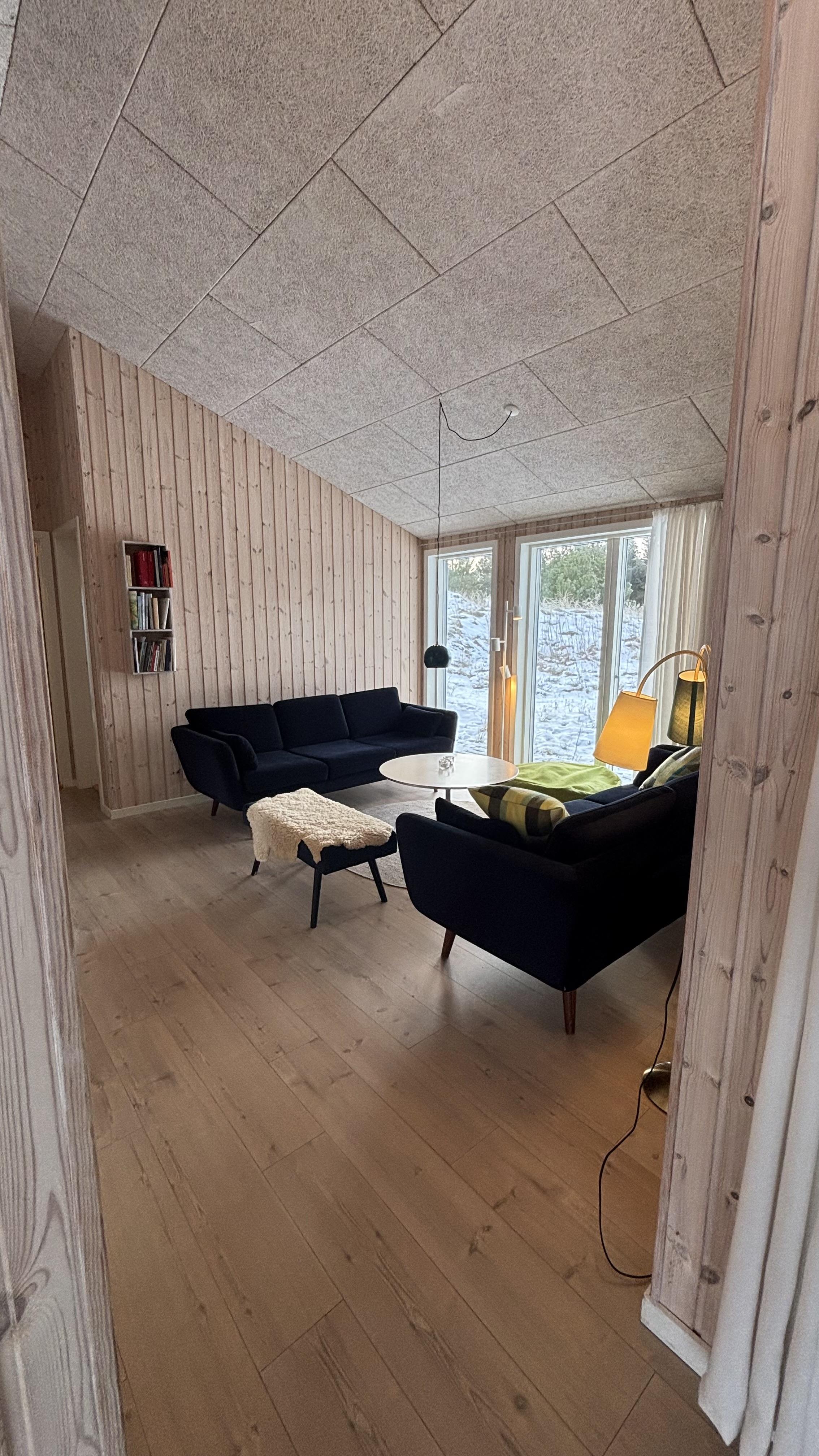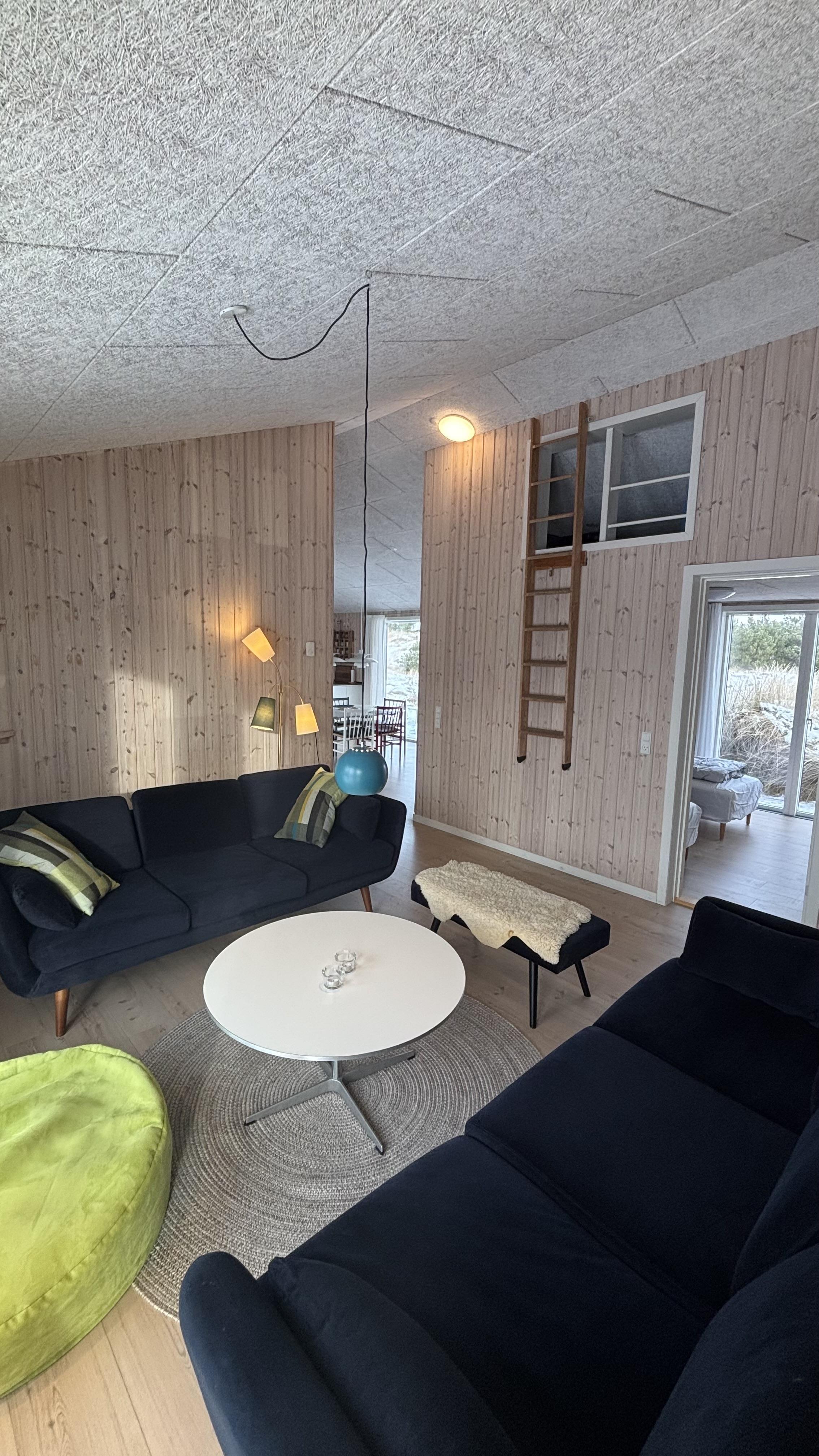 Indrettet i en charmerende, hyggelig retrostil og med smagfulde møbler kan I nyde en fantastisk tid her. De dybe, store vinduer på begge sider af feriehuset lukker meget lys ind og skaber dermed en lys og venlig atmosfære. Køkkenet er forbundet med den åbne stue, hvor en brændeovn sørger for en hyggelig stemning på kølige aftener. En energibesparende varmepumpe og gulvvarme i hele huset sørger også for en behagelig stuetemperatur.
