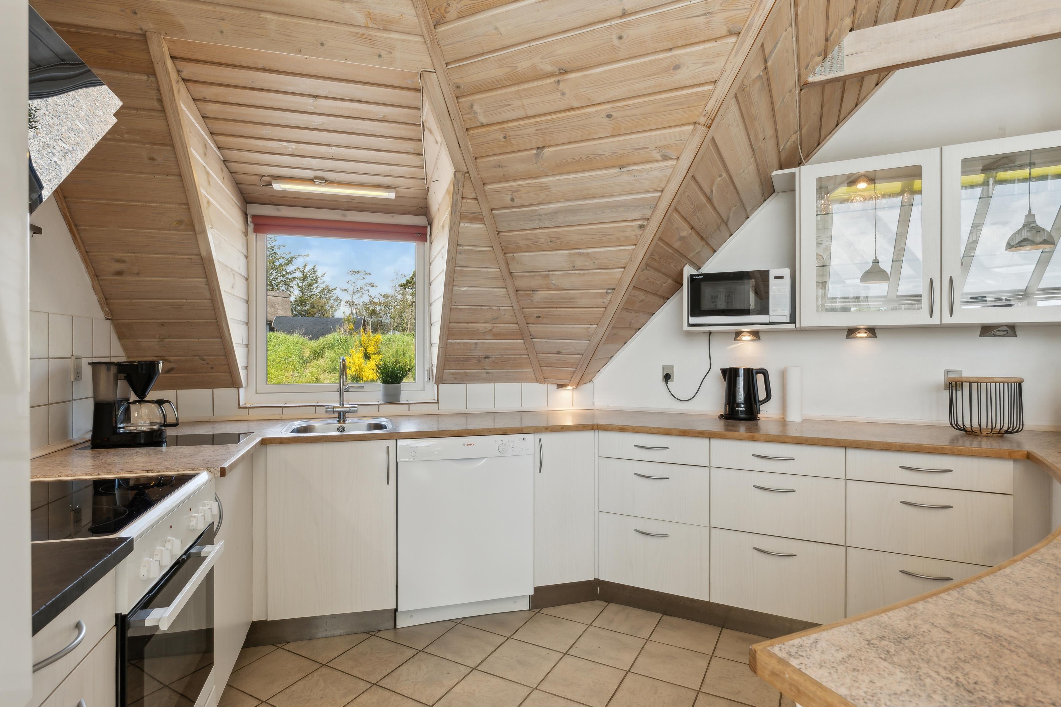 Med sine 185 m² byder huset på masser af plads, komfort og lækre faciliteter. Det store fællesrum danner rammen om ferien med åbent køkken, spiseplads og stue i ét. Her kan I samles til hyggelige måltider, spilaftener eller ren afslapning foran brændeovnen. På varme dage lokker terrassen, hvor I kan nyde grillmad og sol, mens børnene leger i haven med gynger og sandkasse.