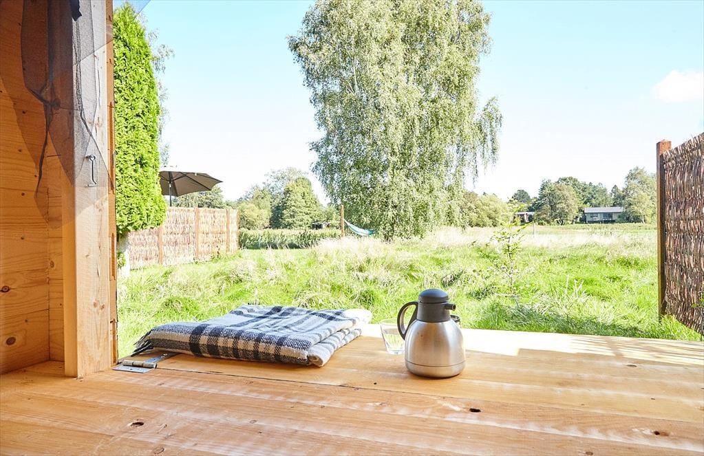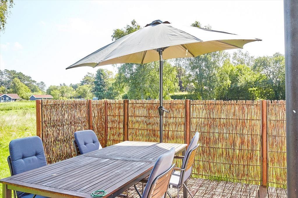 Huset indeholder en dejlig stue med afslappet stemning, Fra stuen er der udgang til det dejlige terrasseområde, hvor solen kan nydes fra morgen til aften. Åbent køkken bl.a. med opvaskemaskine, her er der mulighed for at I kan hjælpes med at tilberede en god frokost. Der tilhører et dejligt master bedroom samt badeværelse med brus. I annekset er der værelse med dobbeltseng og køje. Hvis du foretrækker at sove med kig til stjernerne så kan den særdeles hyggelige shelter, varmt anbefales.