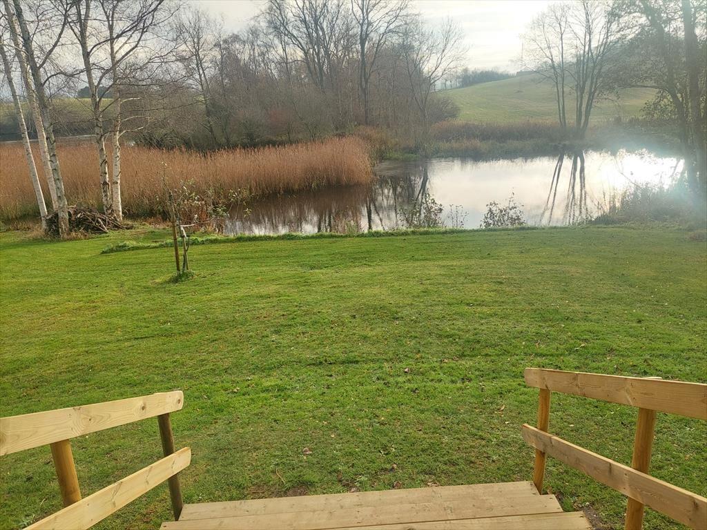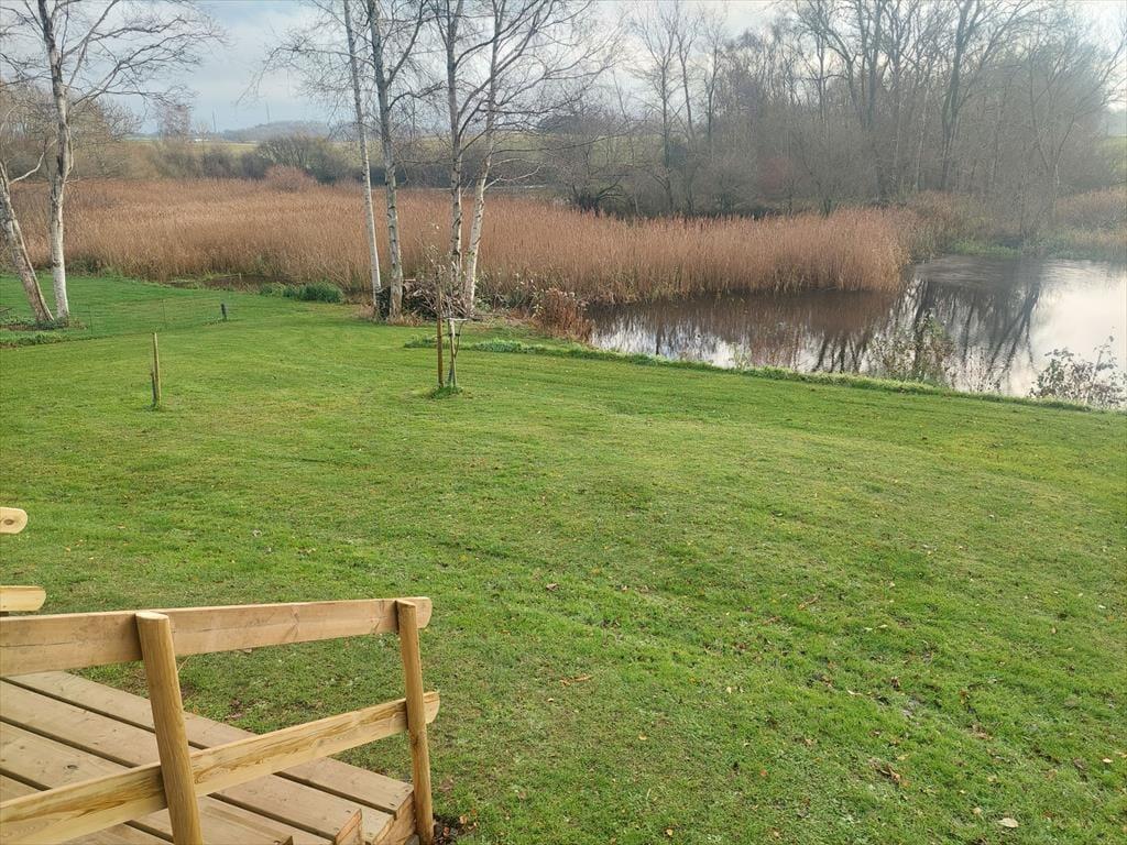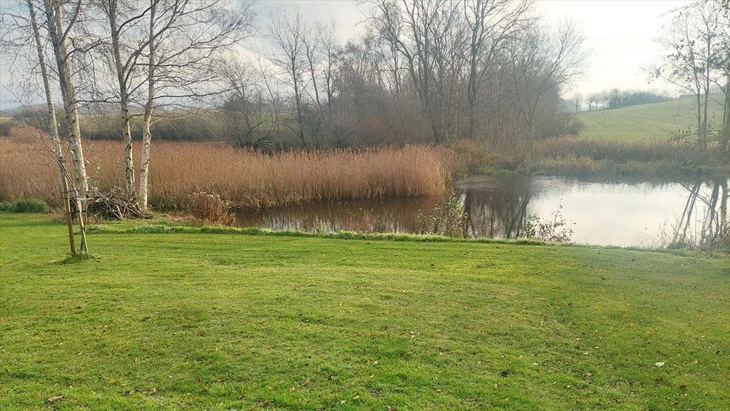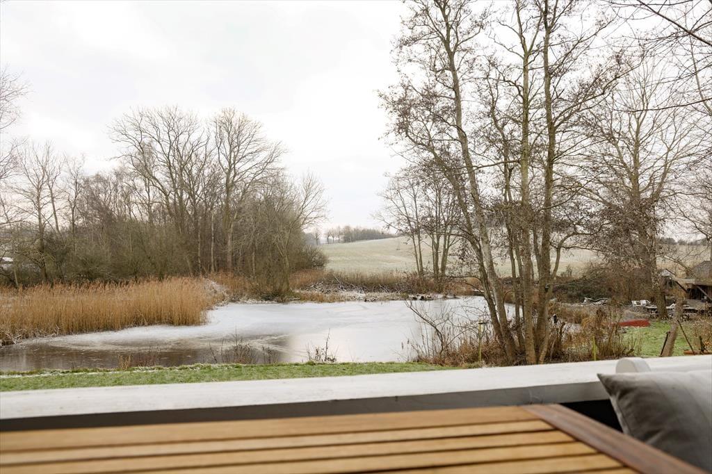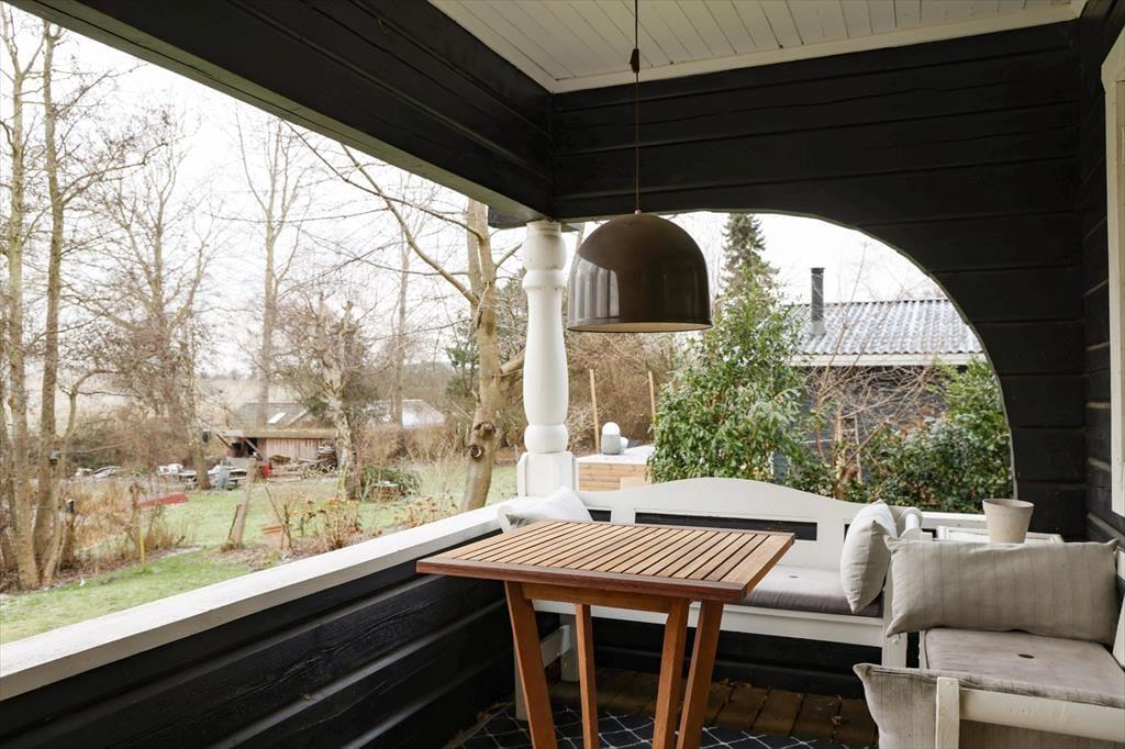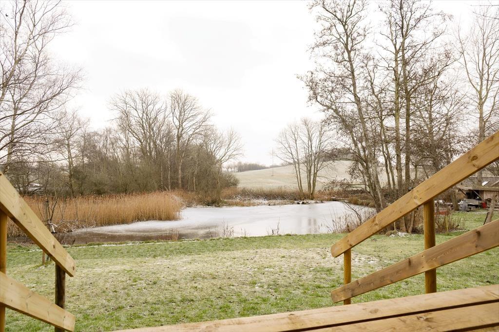 Fra den overdækkede terrasse, kan du nyde udsigten mod søen og over markerne. Her er det også perfekt at sidde med et lille glas og bare nyde stilheden og stemningen en af de lune sommeraftener. Den skrånende grund, med det rige dyreliv er også perfekt til dig, der vil prøve at fange en gedde i søen eller bare nyde solen fra morgen til aften.