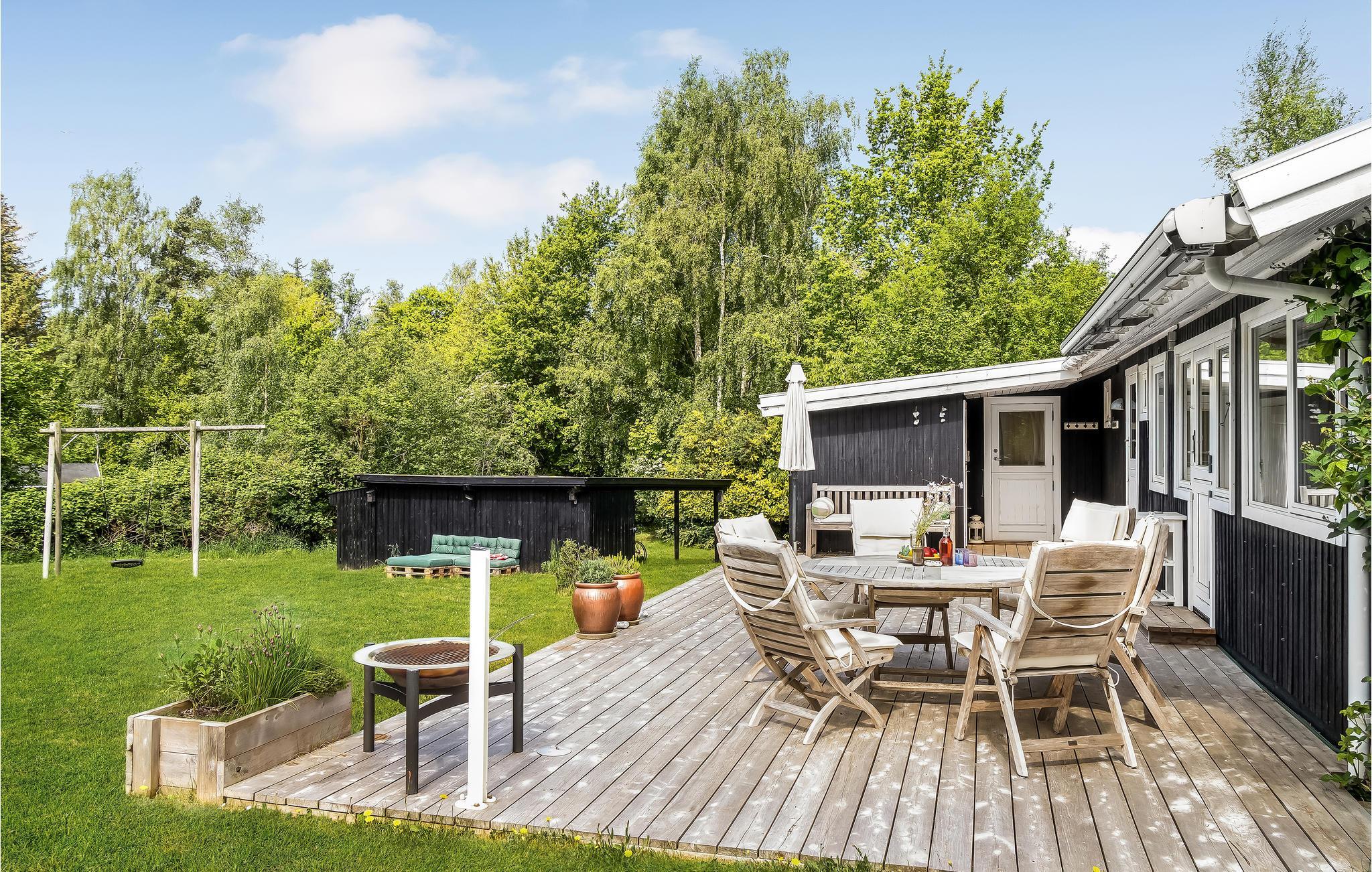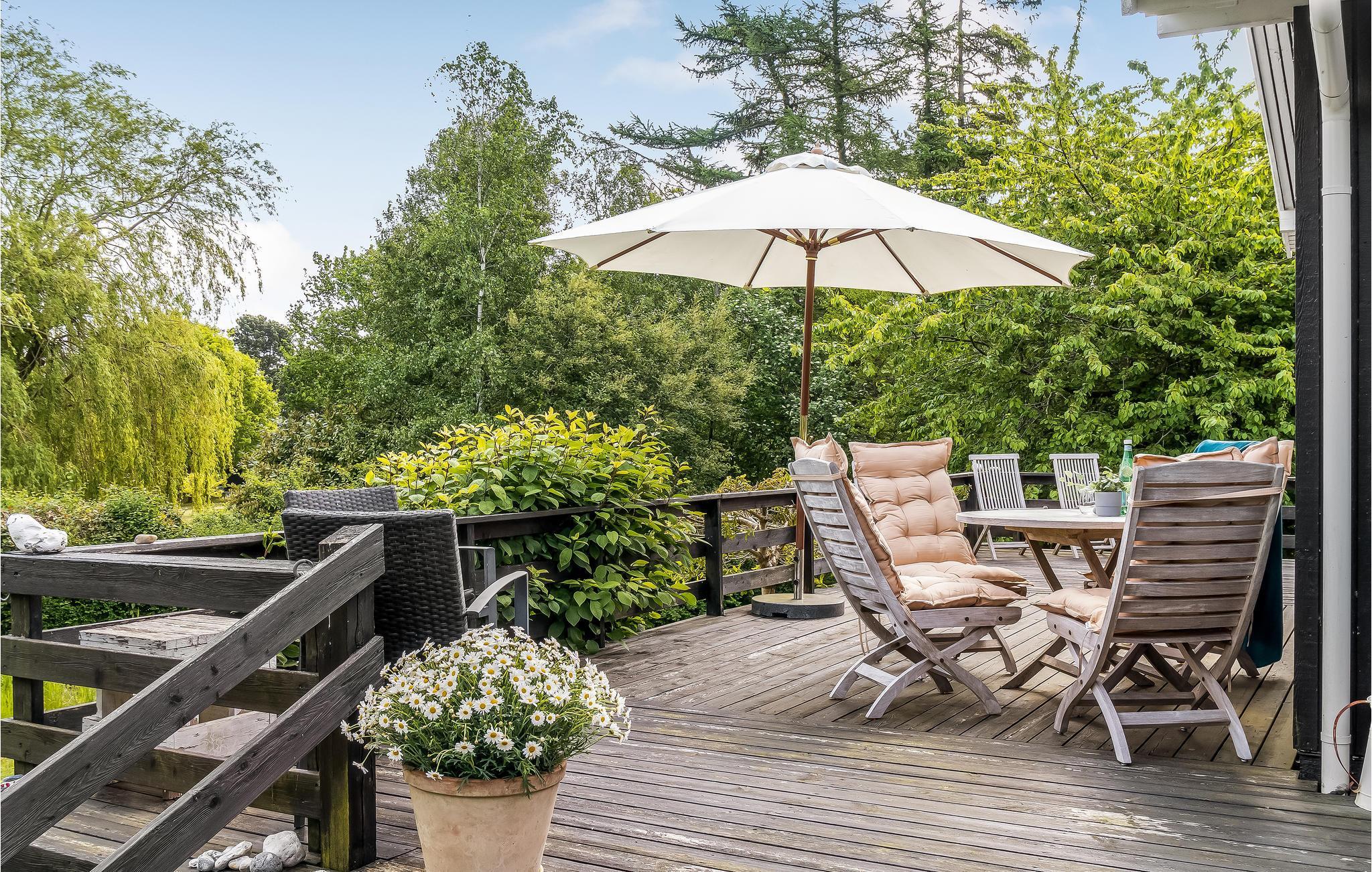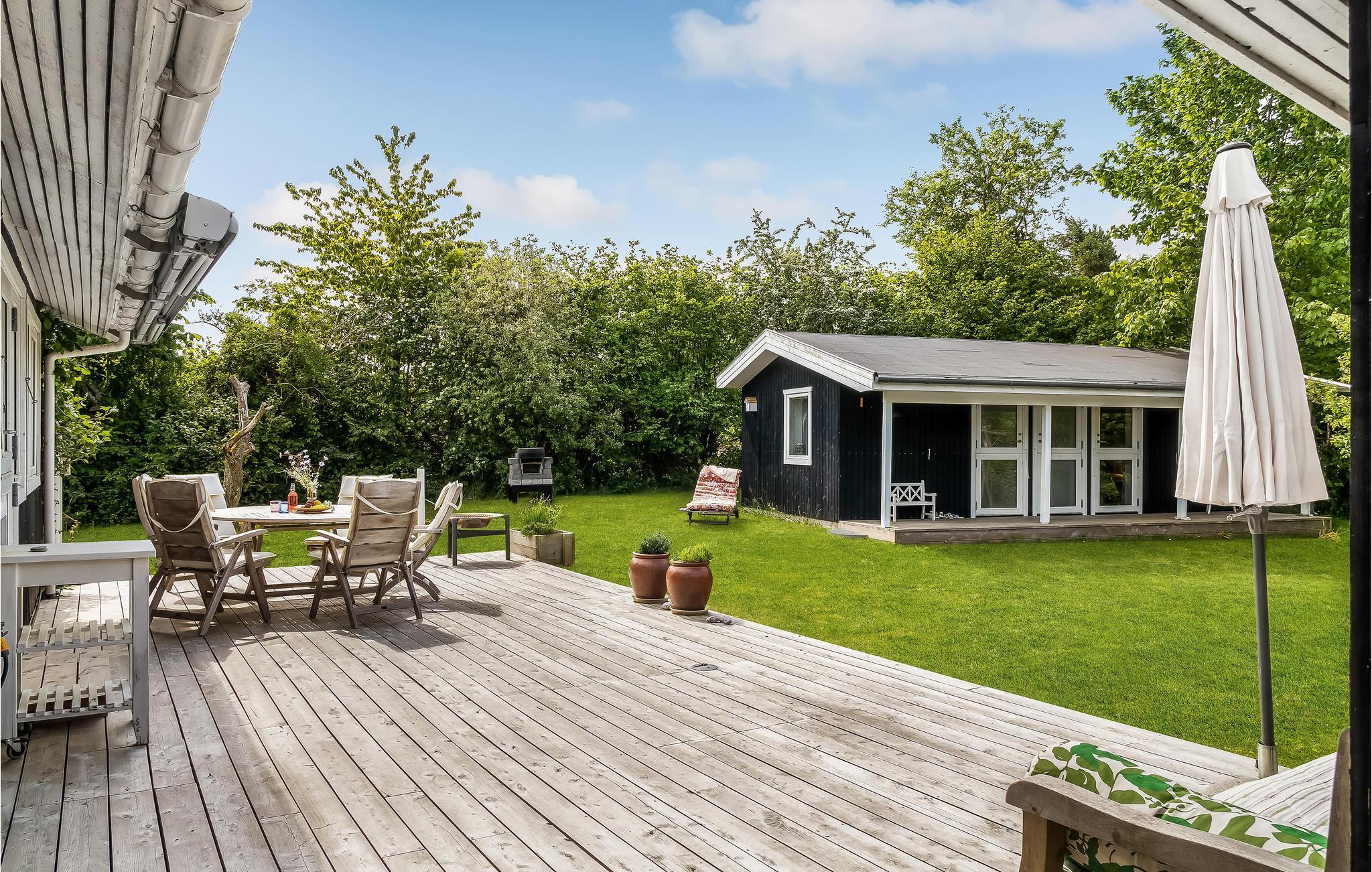 Hyggeligt feriehus ved Klint i Nordsjælland med to terrasser og nærhed til strand og natur.